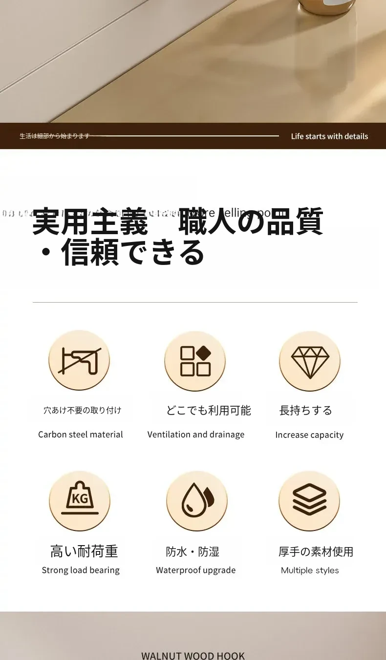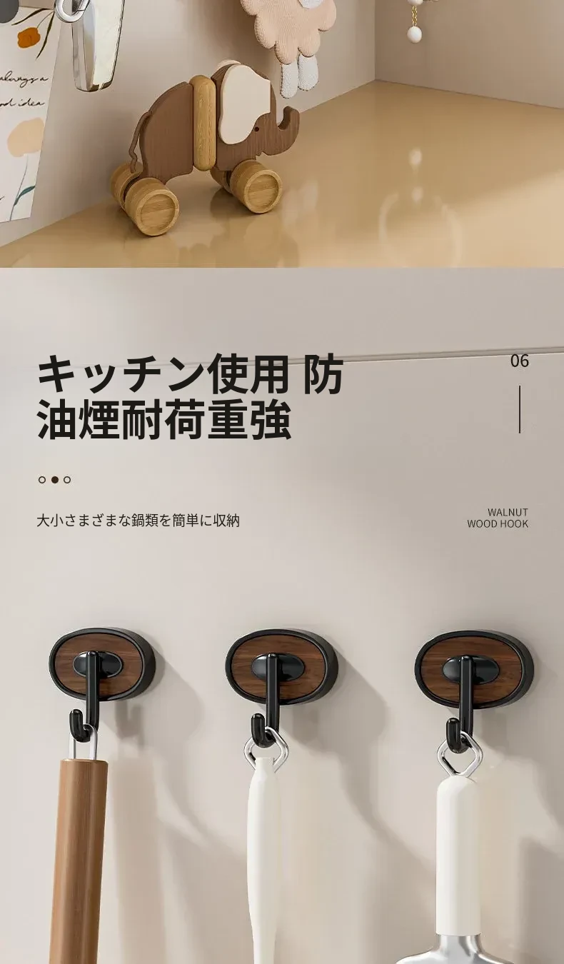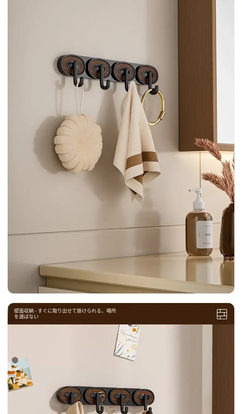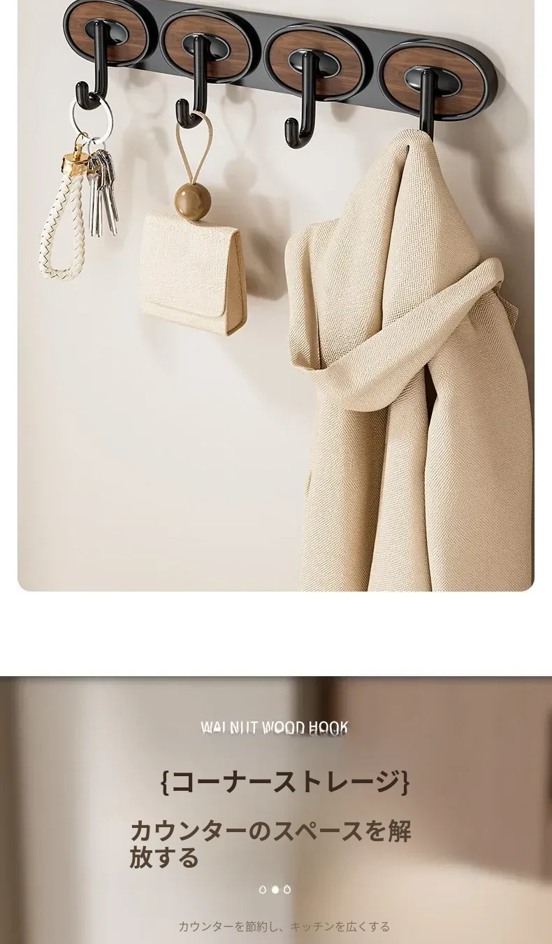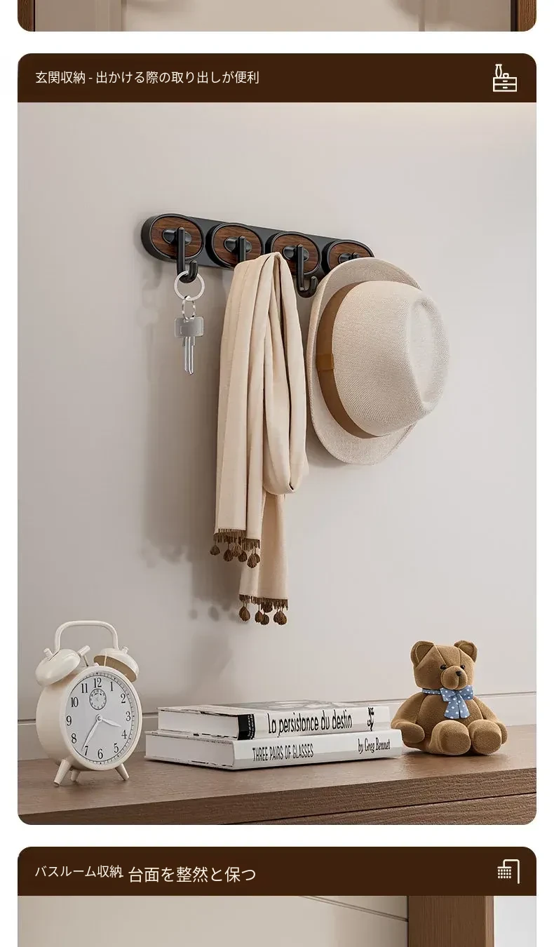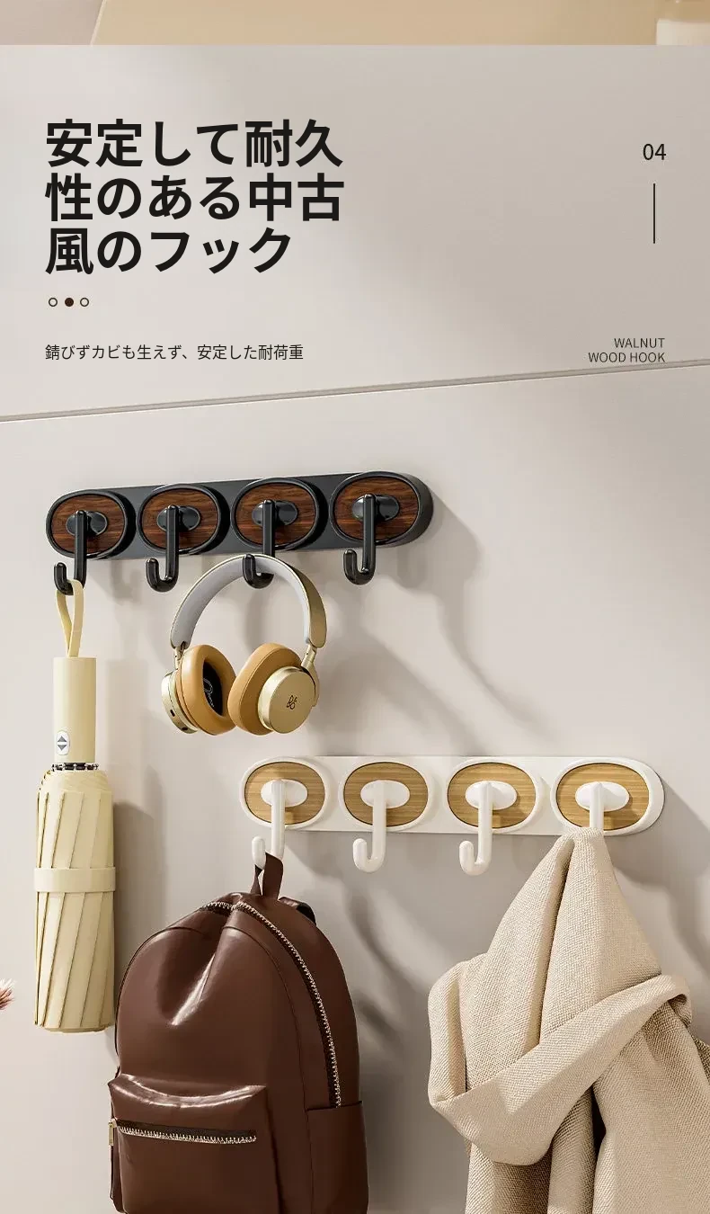 ウォールナット木目-黒色シングルフック