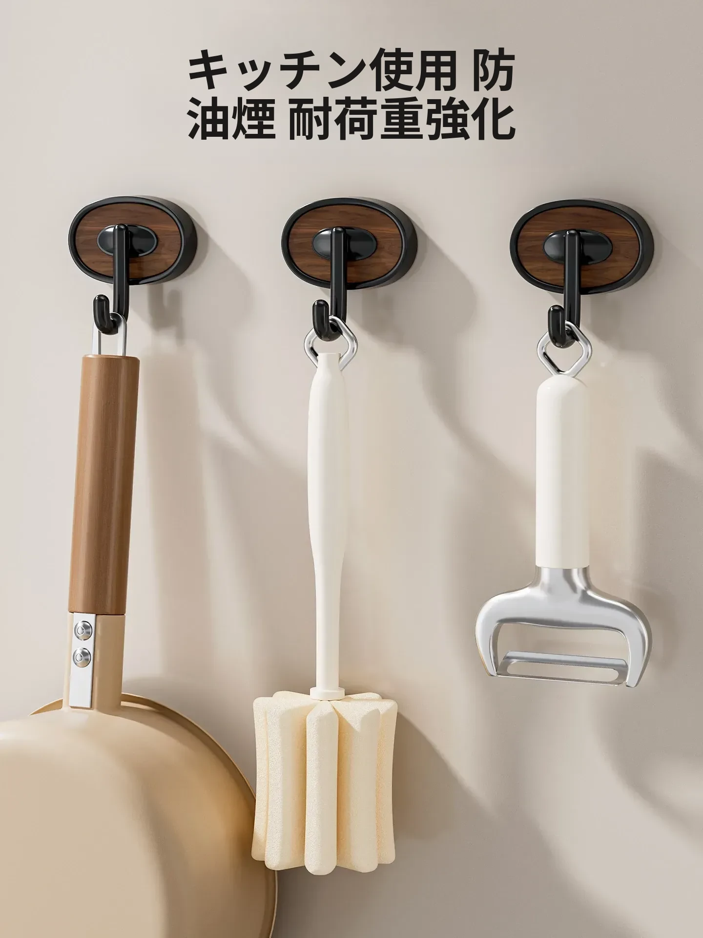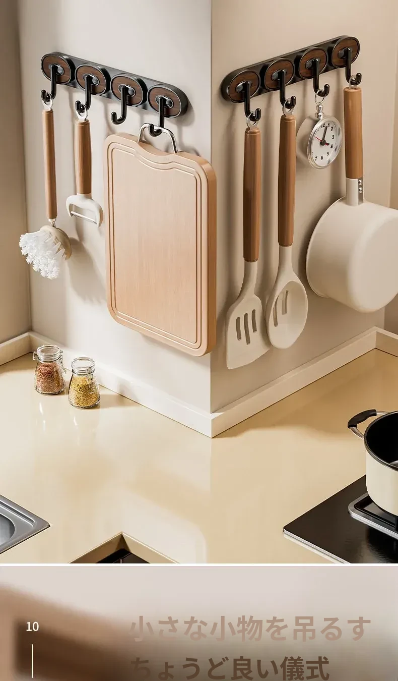 キッチン用フック、穴を開けずに簡単取り付け!強力耐荷重、スプーンやシャベルも安心収納できる多機能フックバー。キッチンをスッキリ整理整頓!