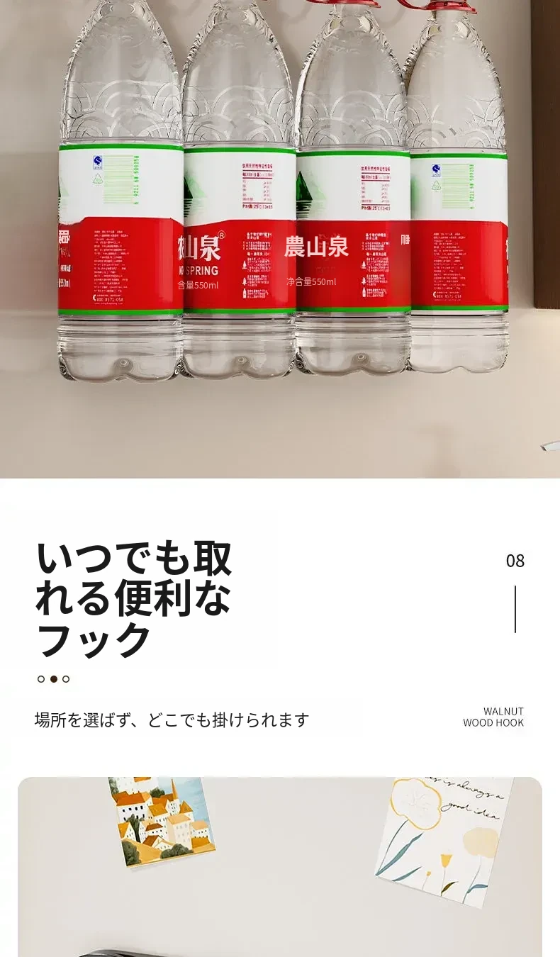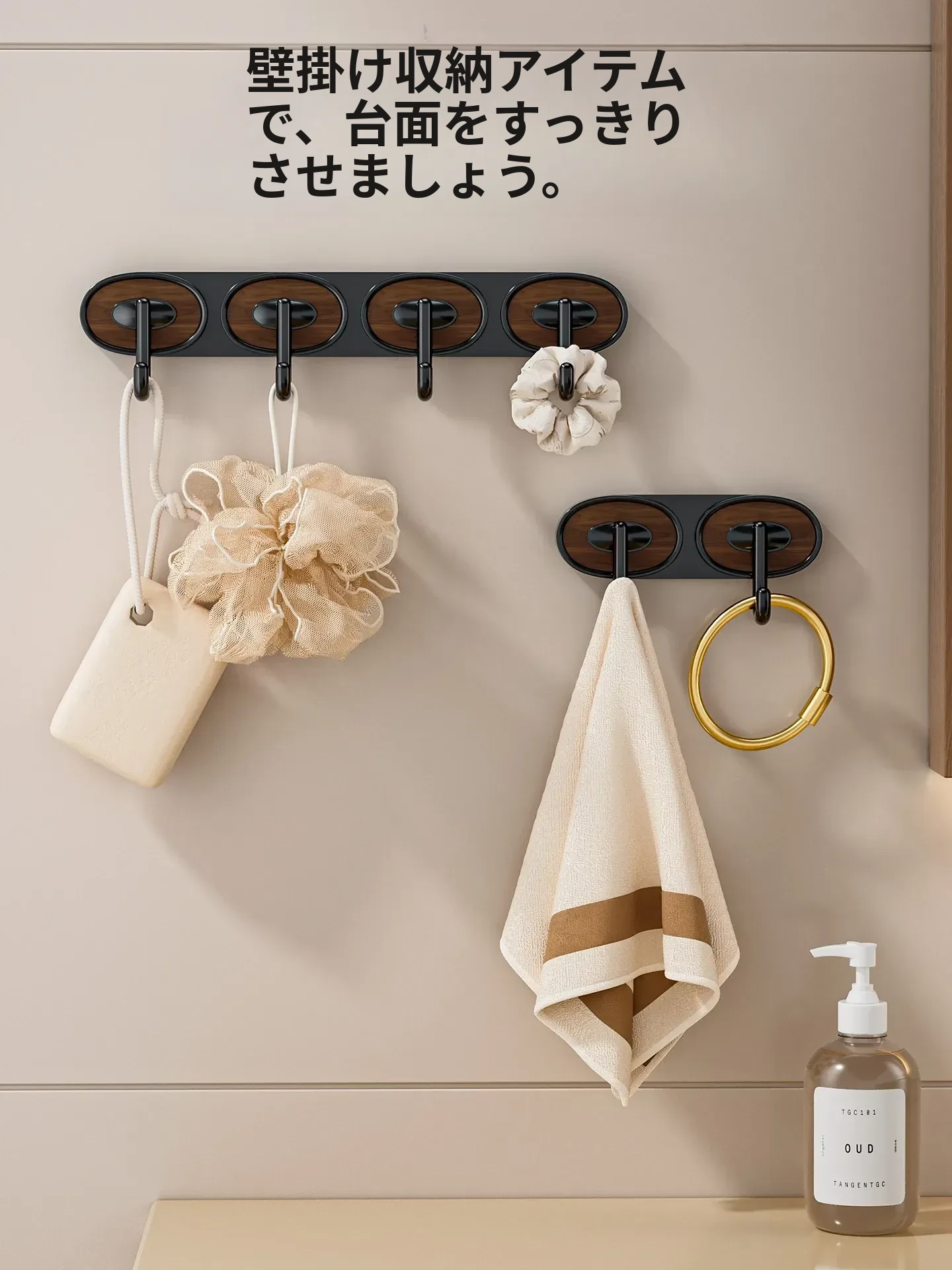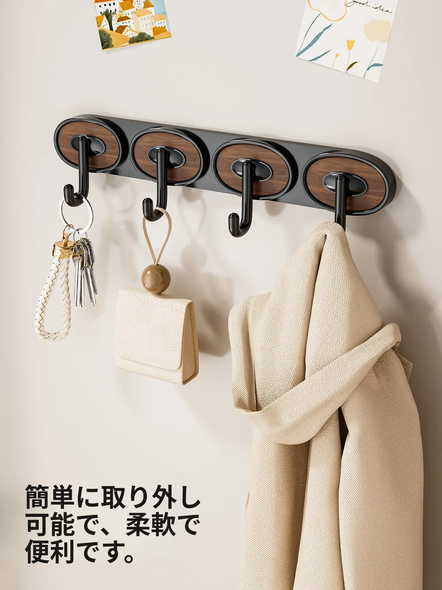 ウォールナット木目-黒色ダブルフック
