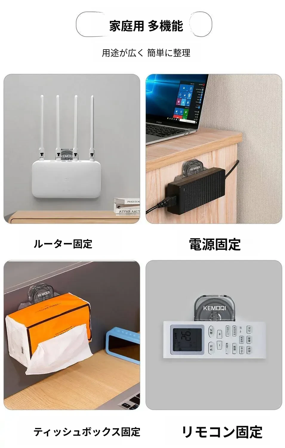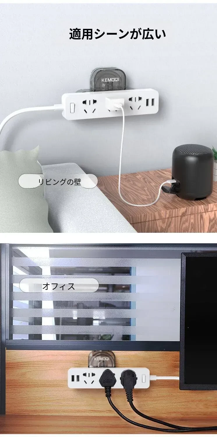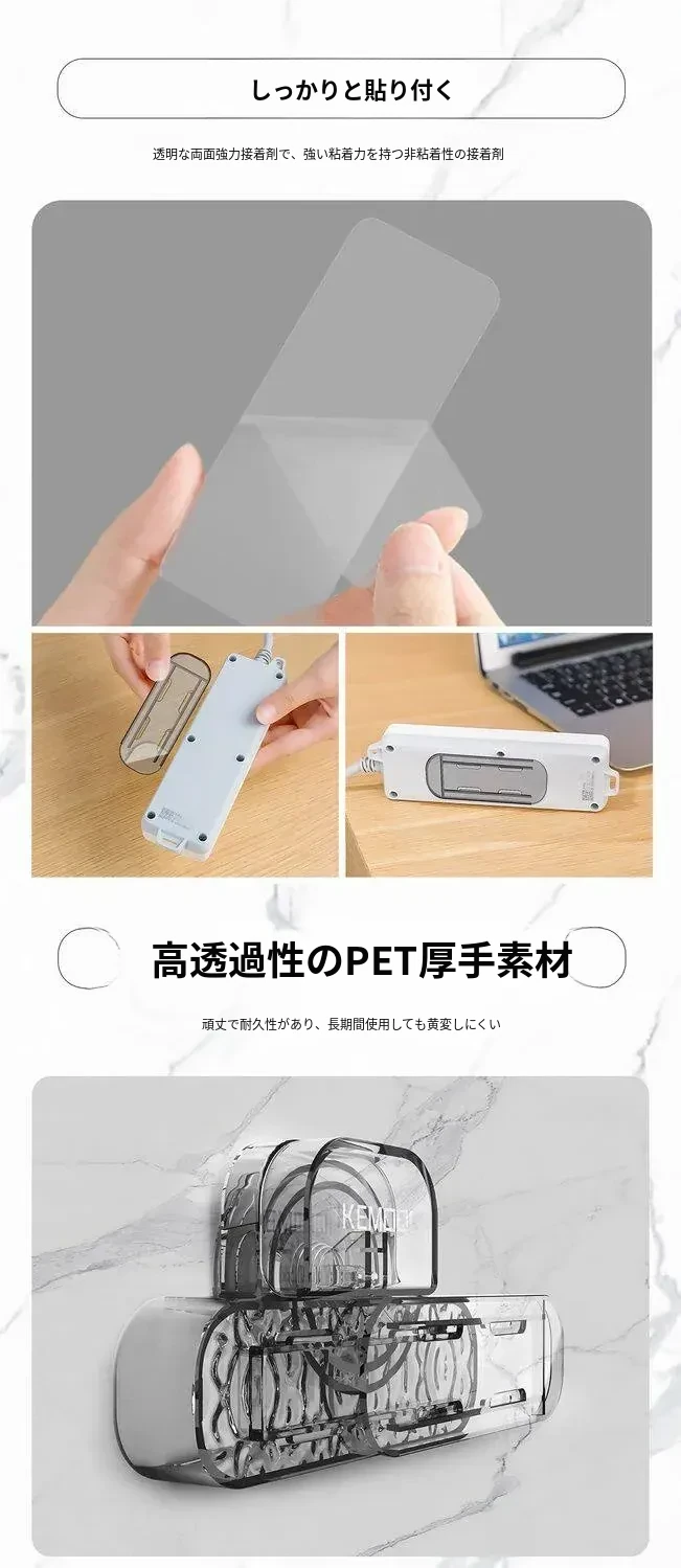 壁掛け用コンセント固定器 - 吸盤式で無痕、穴あけ不要!家中どこでも簡単取り付け、すっきりとした配線整理が可能な便利グッズ!