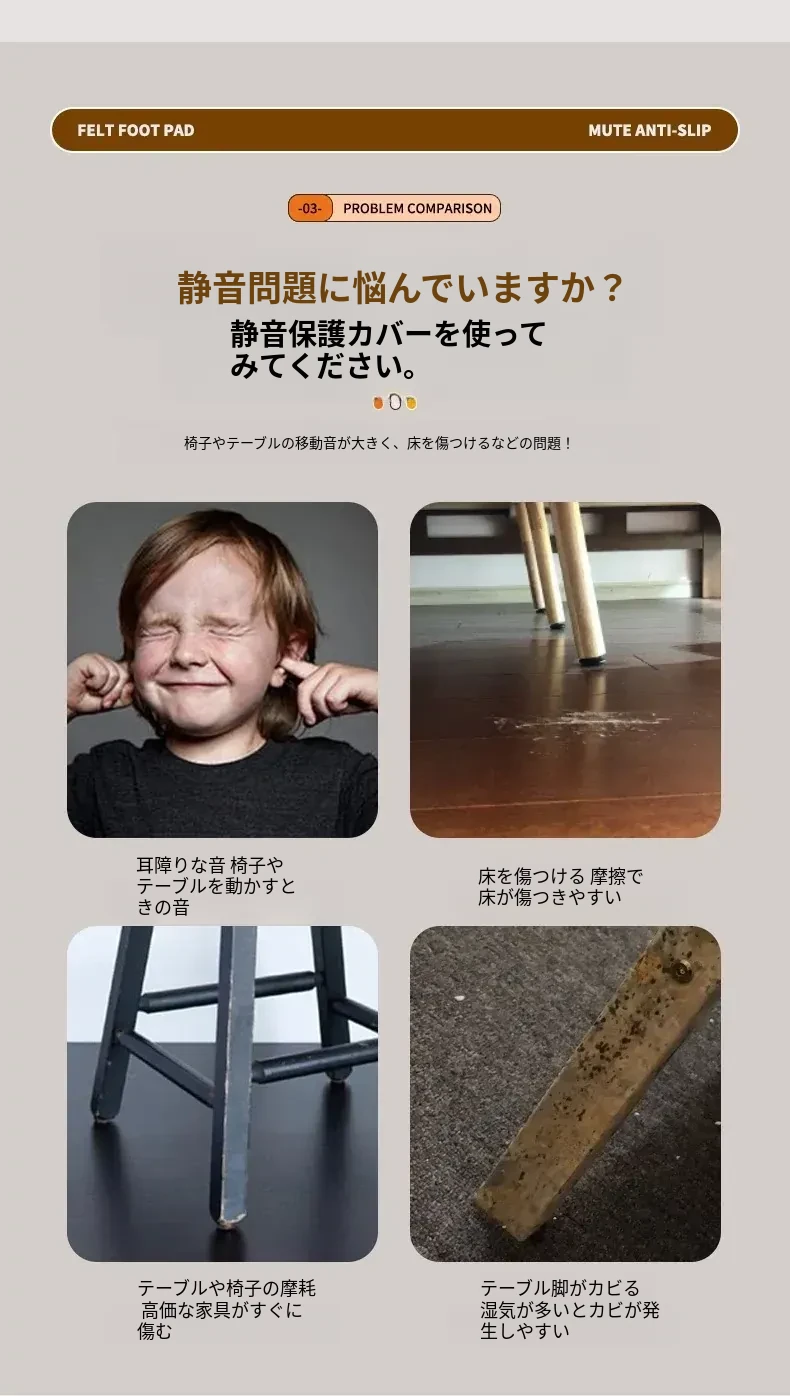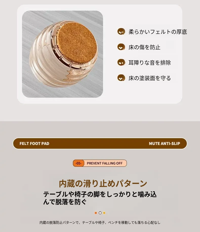 滑り止め音静かな保護マット - 椅子や家具の足を守るフェルト製デスク脚マット、耐磨耗性で長持ち!お部屋の美しさを保ちながら、床を傷から守ります。