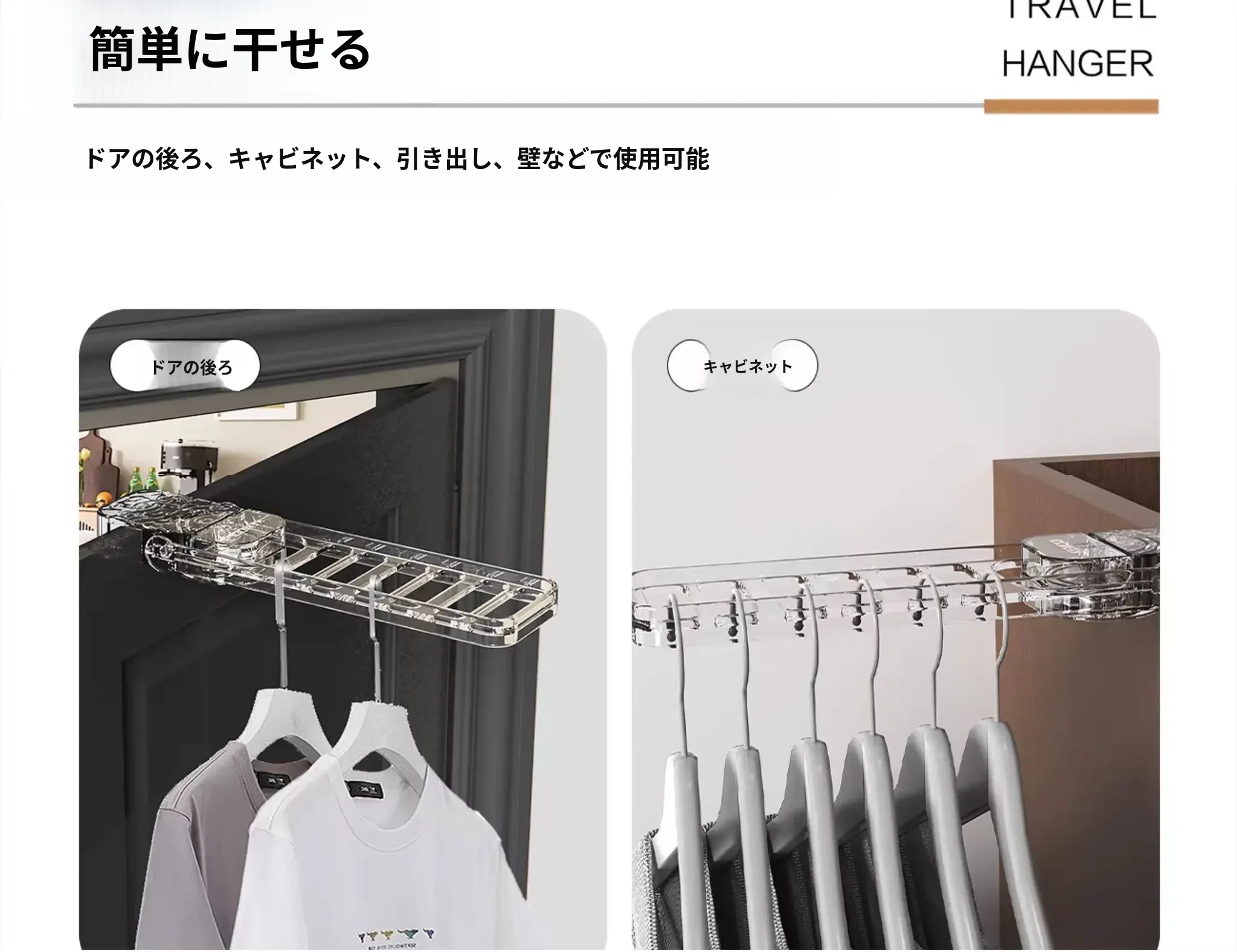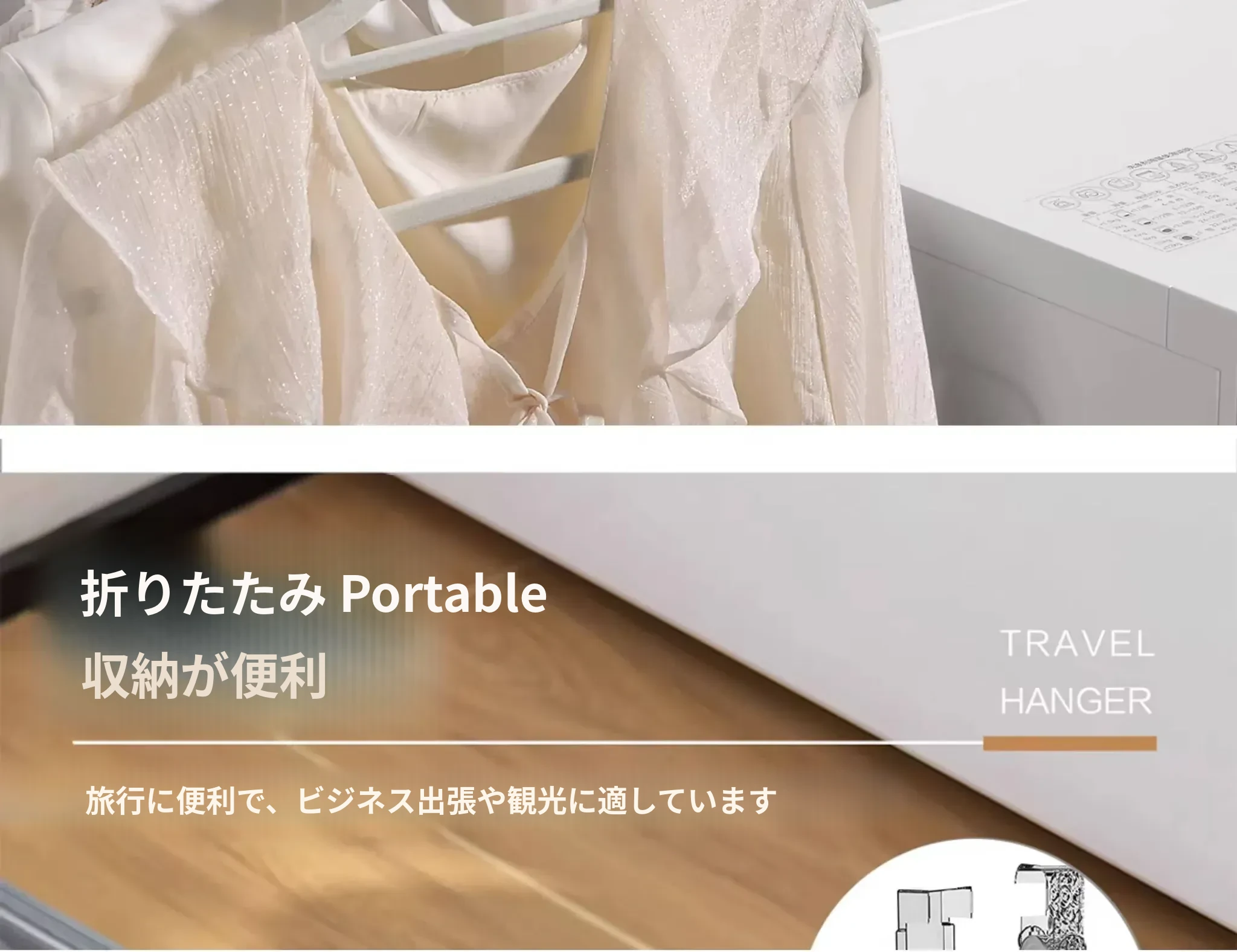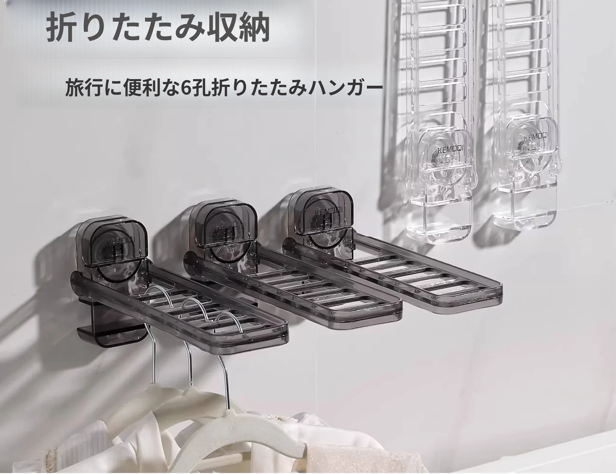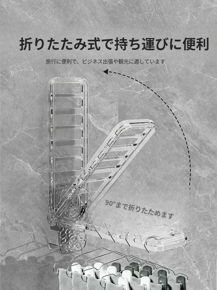 折りたたみ式衣類ハンガー 携帯旅行用 ホテル用 強力吸盤型 穴あけ不要の収納 移動可能なバルコニーの必需品!