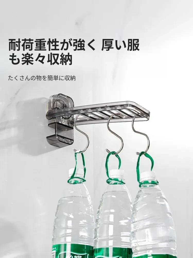 【透灰色】6孔ハンガー/強力吸盤/折りたたみ収納/多用途