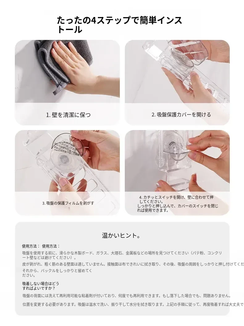 強力吸盤✅耐荷重5kg/移動可能/水洗い可/繰り返し使用可