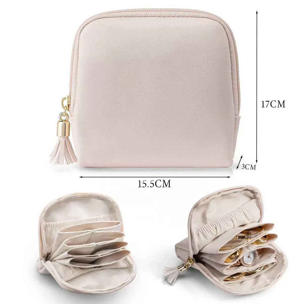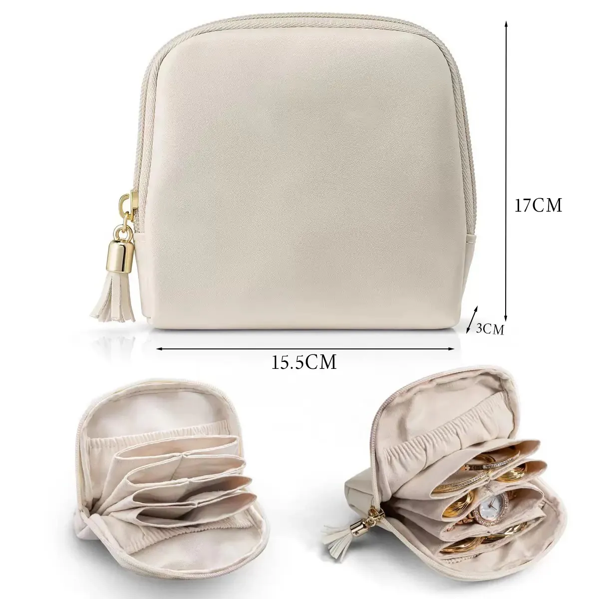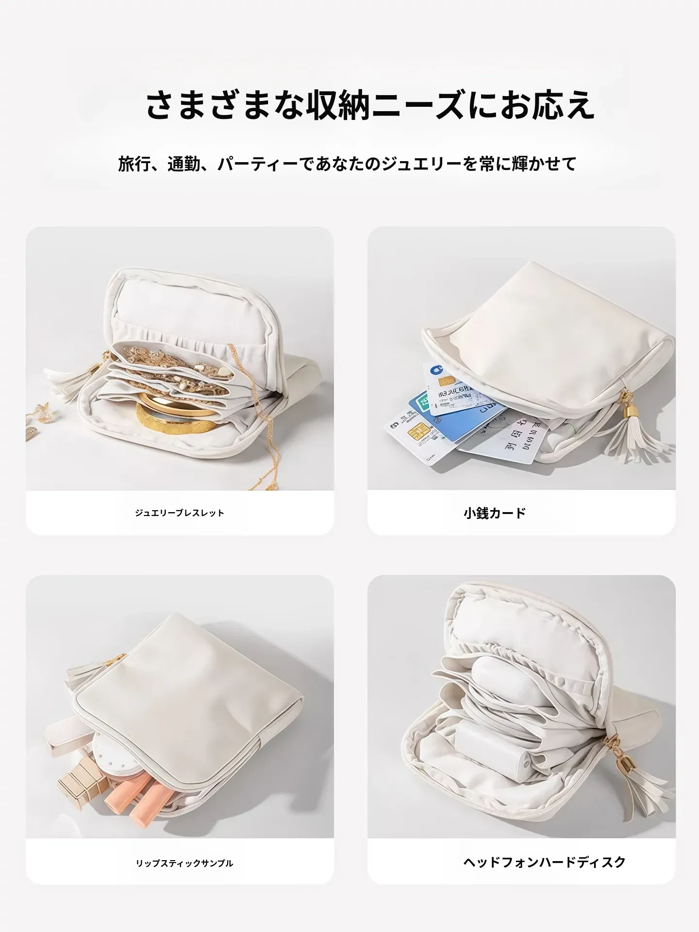 ゴールドジュエリー収納ポーチ - 持ち運びに便利なジュエリー袋!ネックレス、イヤリング、指輪をしっかり守る収納マスター。大切なアクセサリーを美しく整理し、いつでもスタイリッシュに!