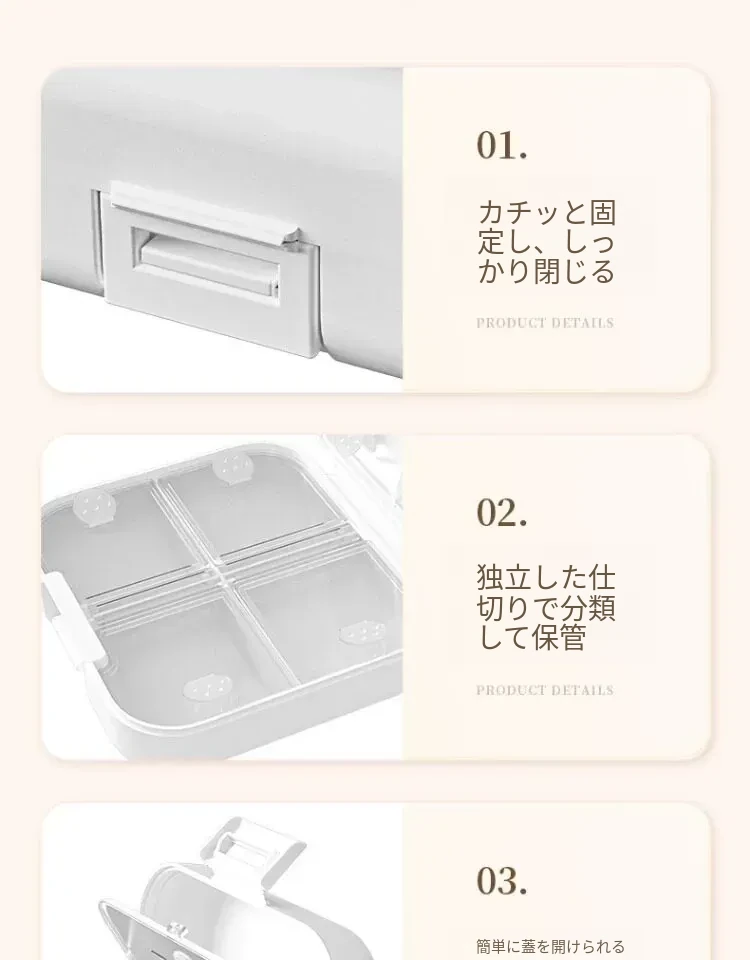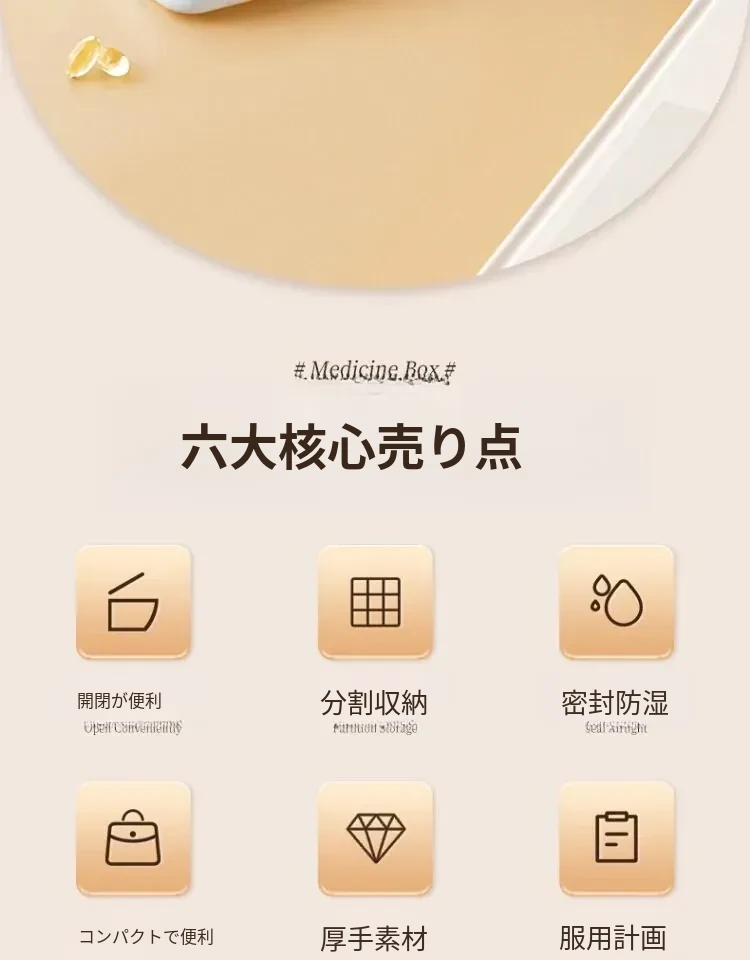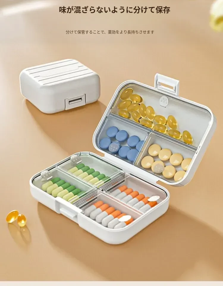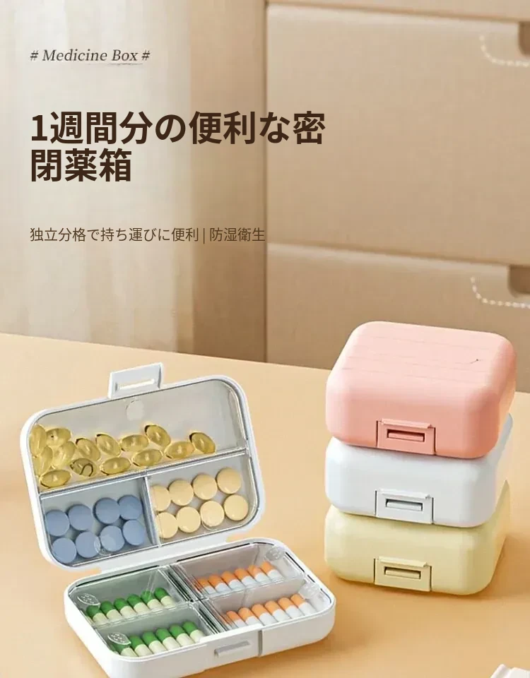 携帯用薬剤分配ボックス - 7日間分の密閉式薬箱、日々の食事に合わせた便利な薬の収納!旅行や外出時に最適、毎日の健康管理をサポートします。