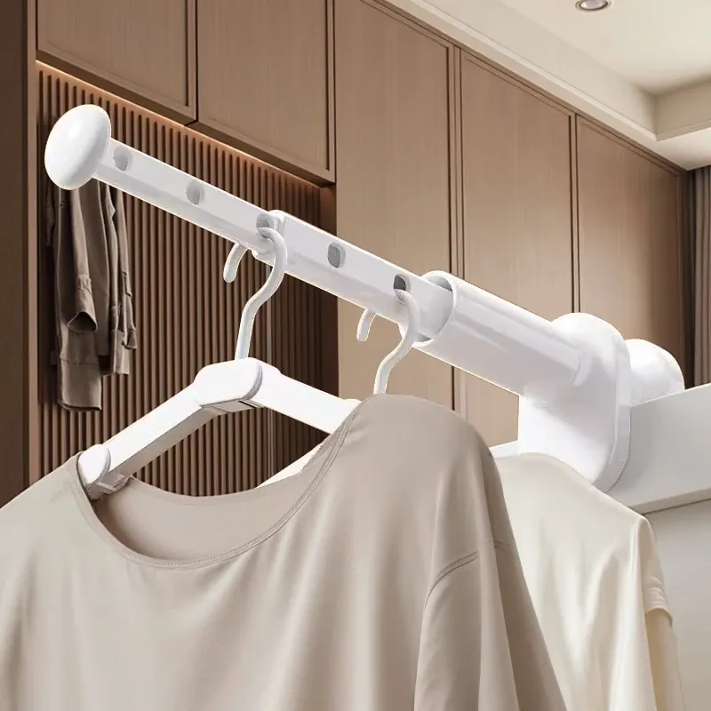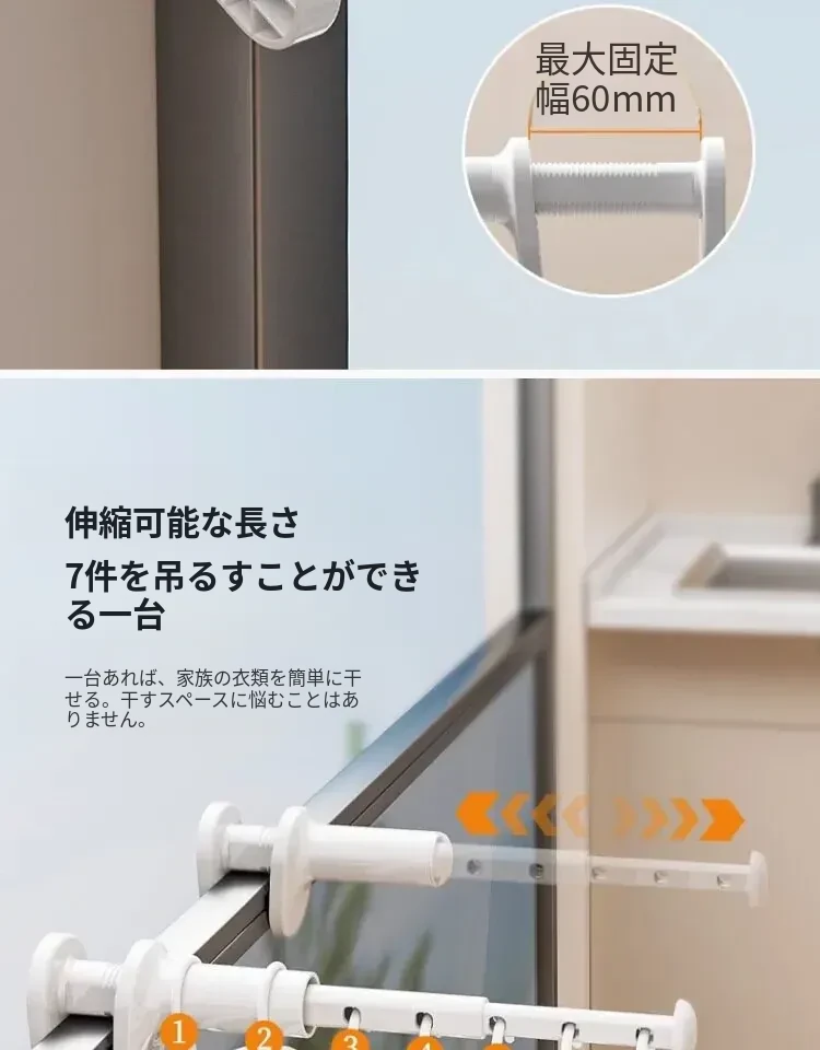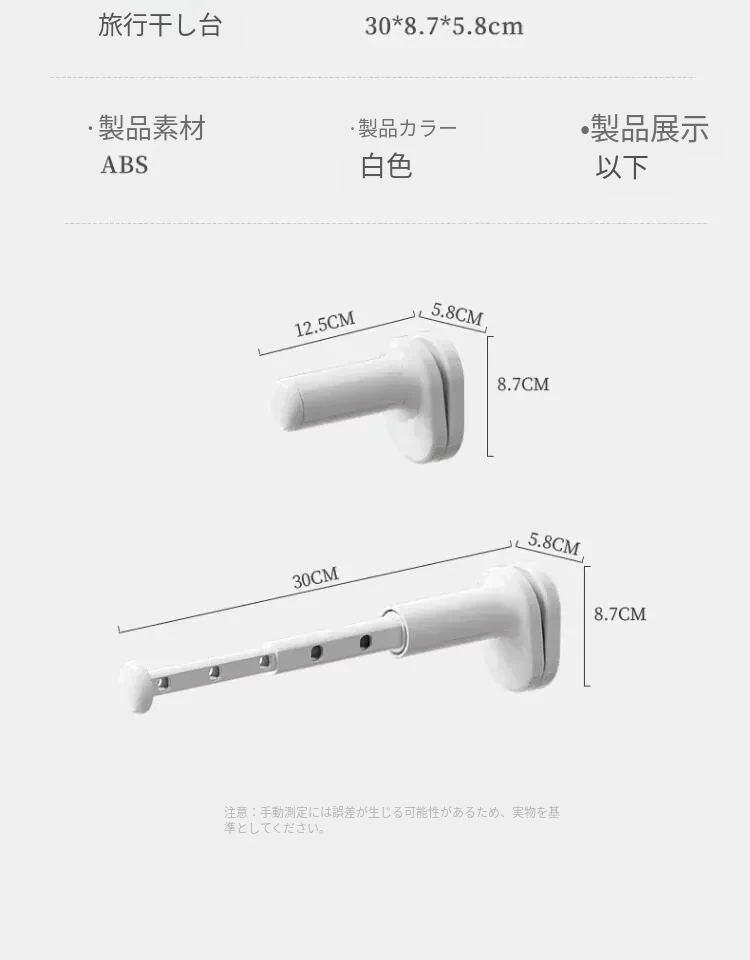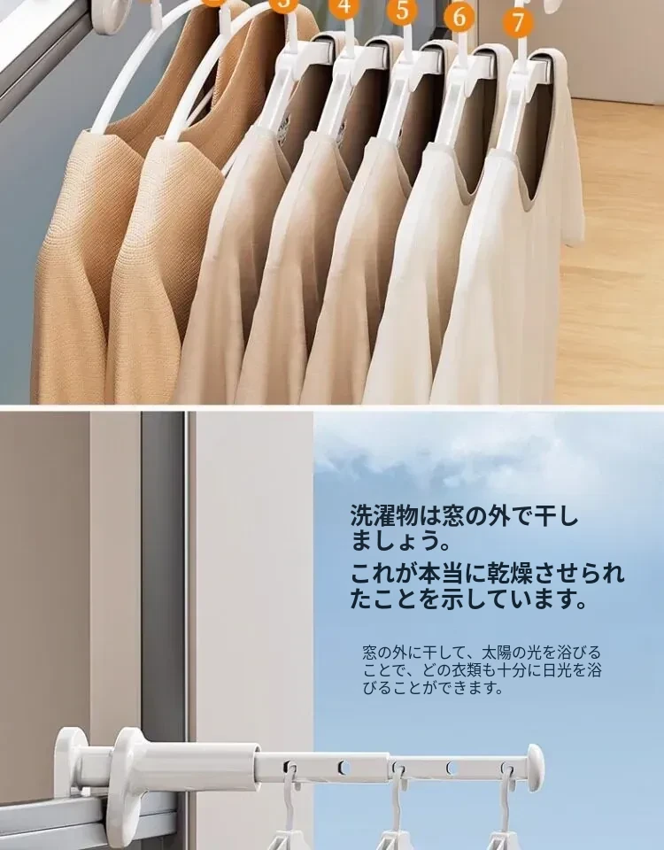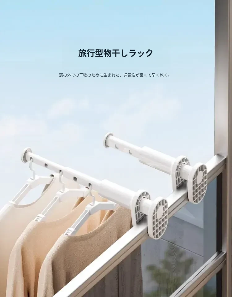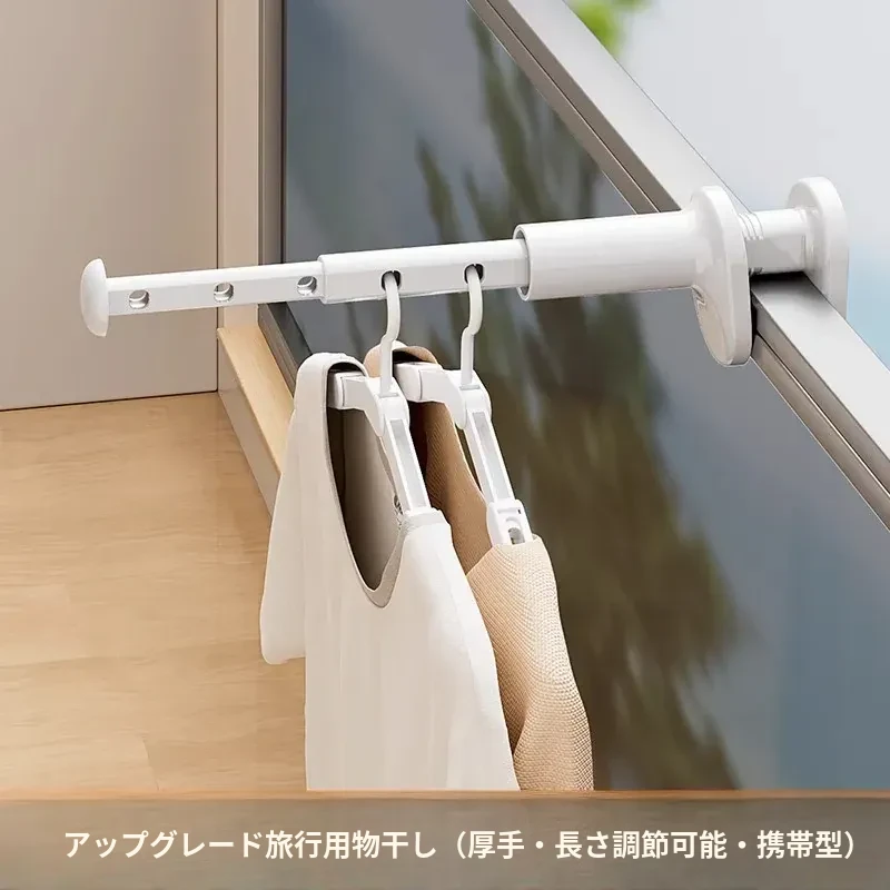 旅行に最適!コンパクト折りたたみ衣類ハンガー - 出張やホテルでの使用に便利!穴を開けずに簡単に取り付け可能、伸縮式で洗濯物をしっかり乾かす!