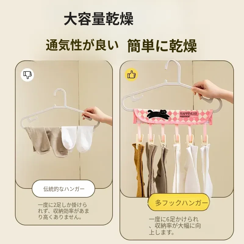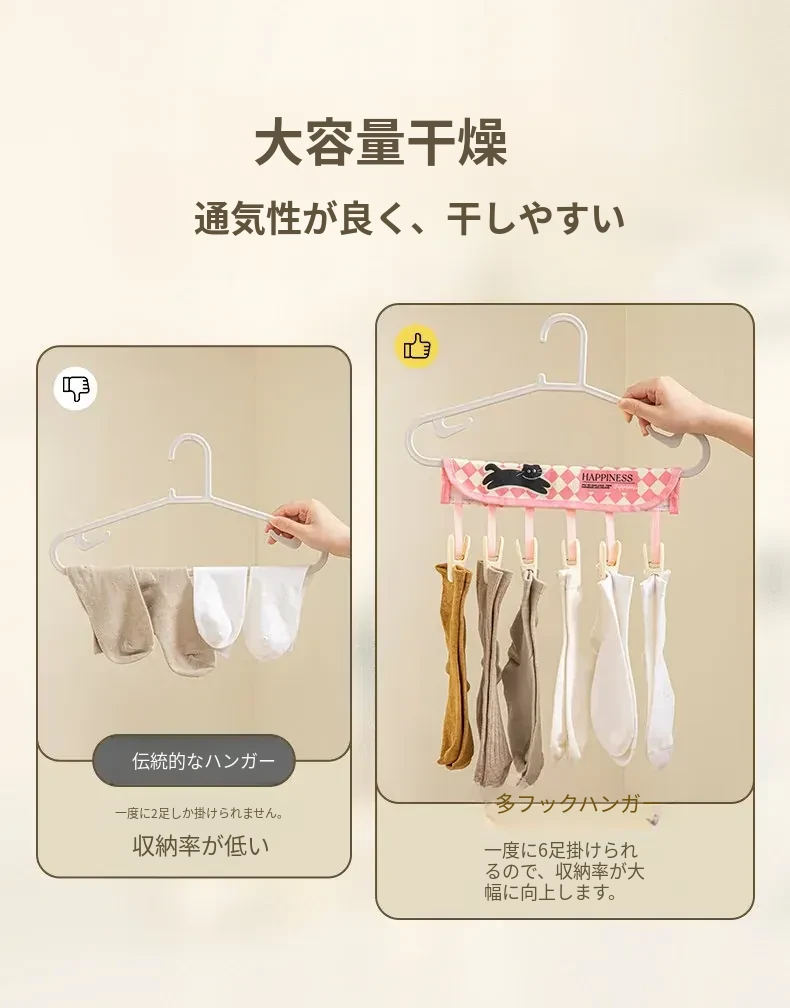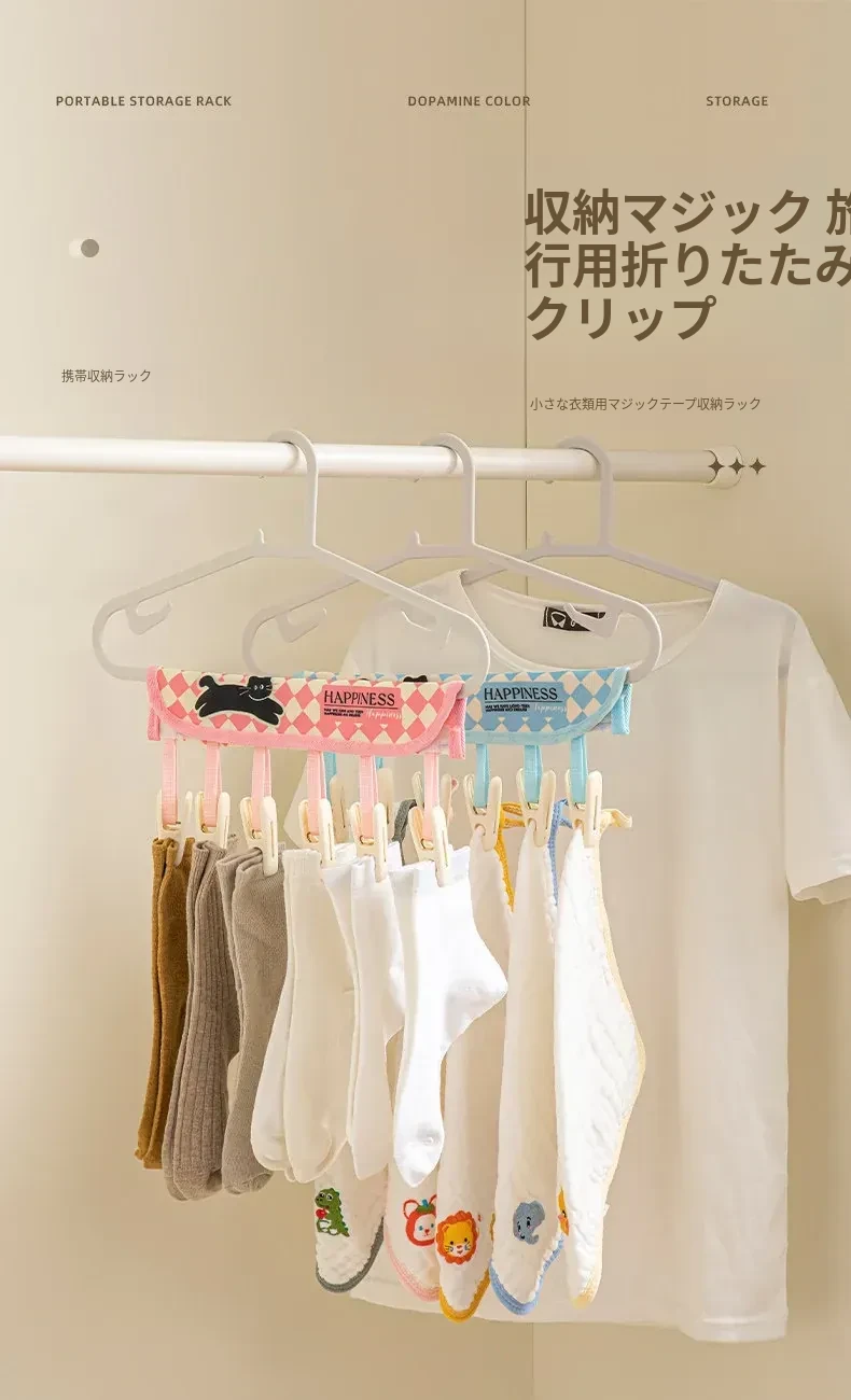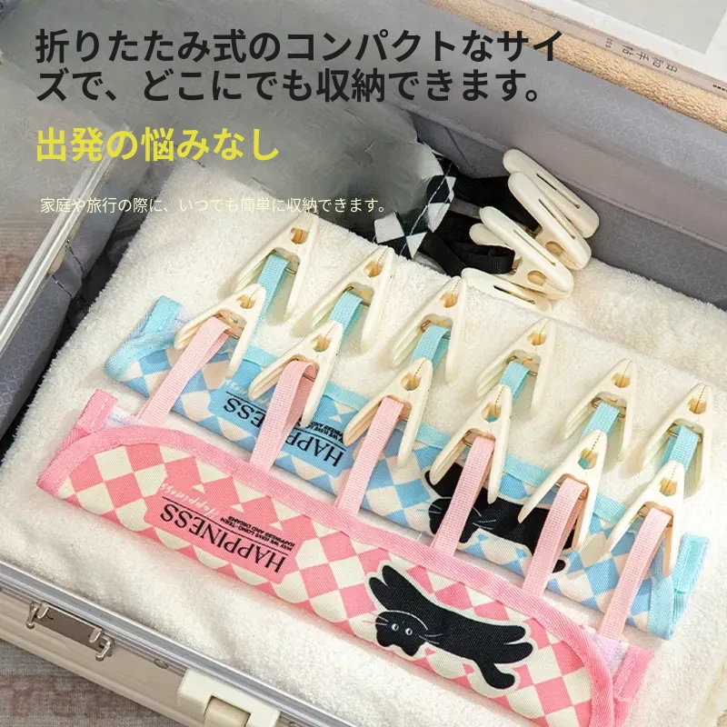 旅行用折りたたみハンガー - コンパクトで便利なホテルや出張に最適!布製の衣類をしっかりサポート、洗濯物もすぐ乾く!ミニサイズの靴下や下着クリップ付きで、スマートな旅行を実現!