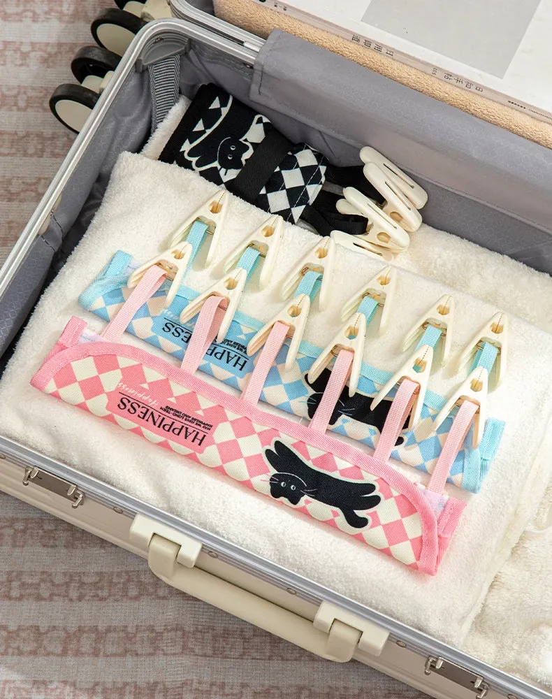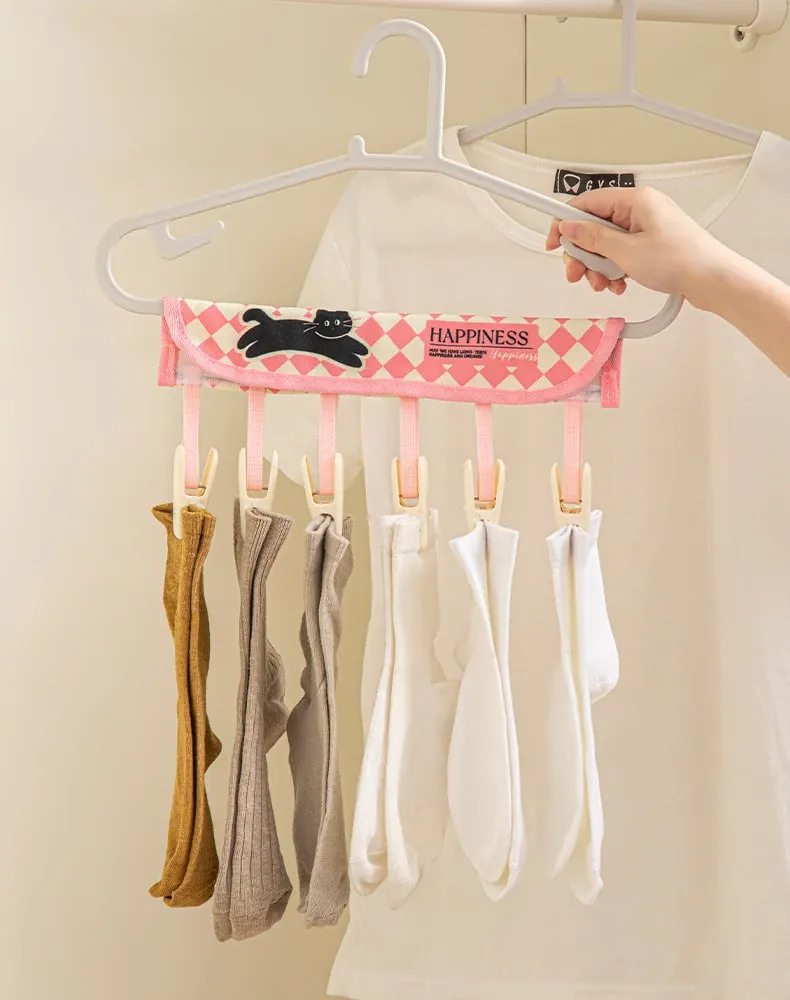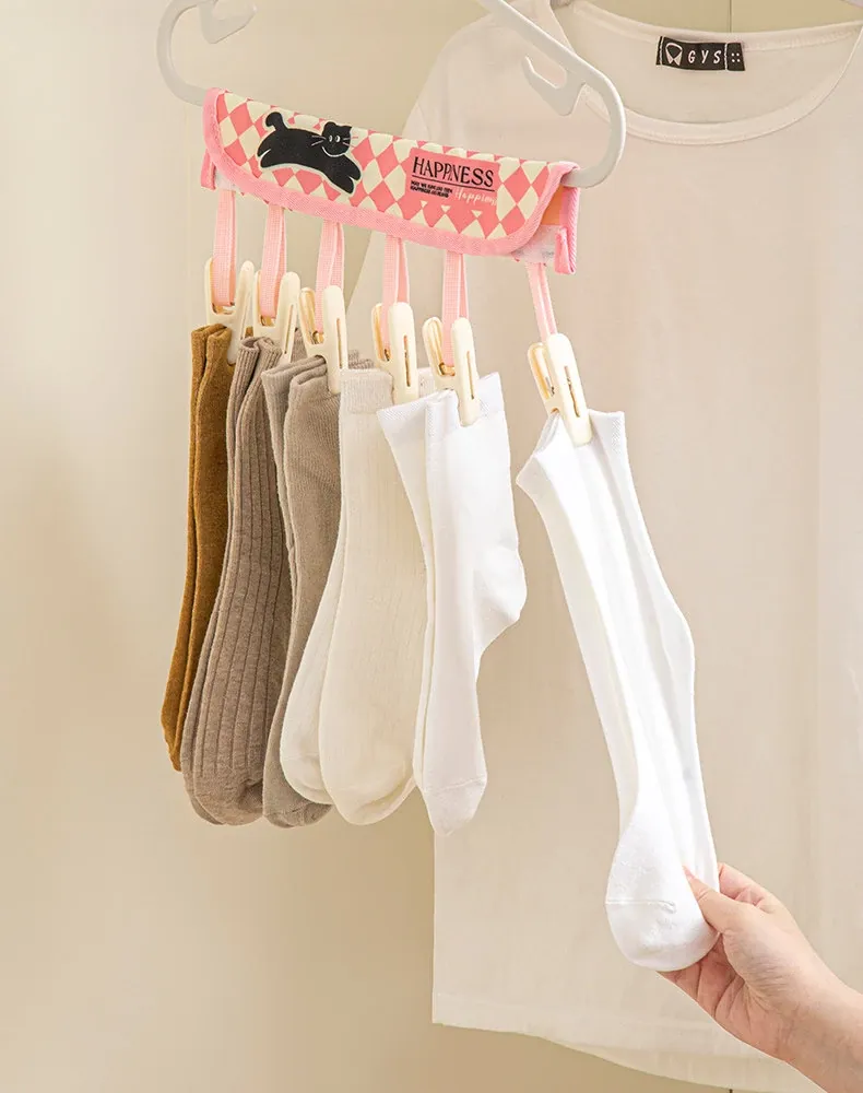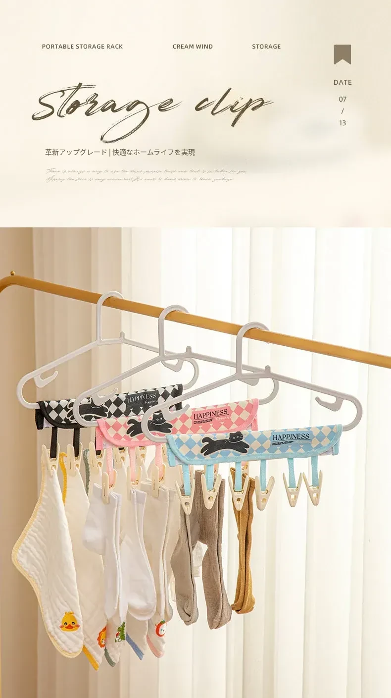 旅行用折りたたみハンガー - コンパクトで便利なホテルや出張に最適!布製の衣類をしっかりサポート、洗濯物もすぐ乾く!ミニサイズの靴下や下着クリップ付きで、スマートな旅行を実現!
