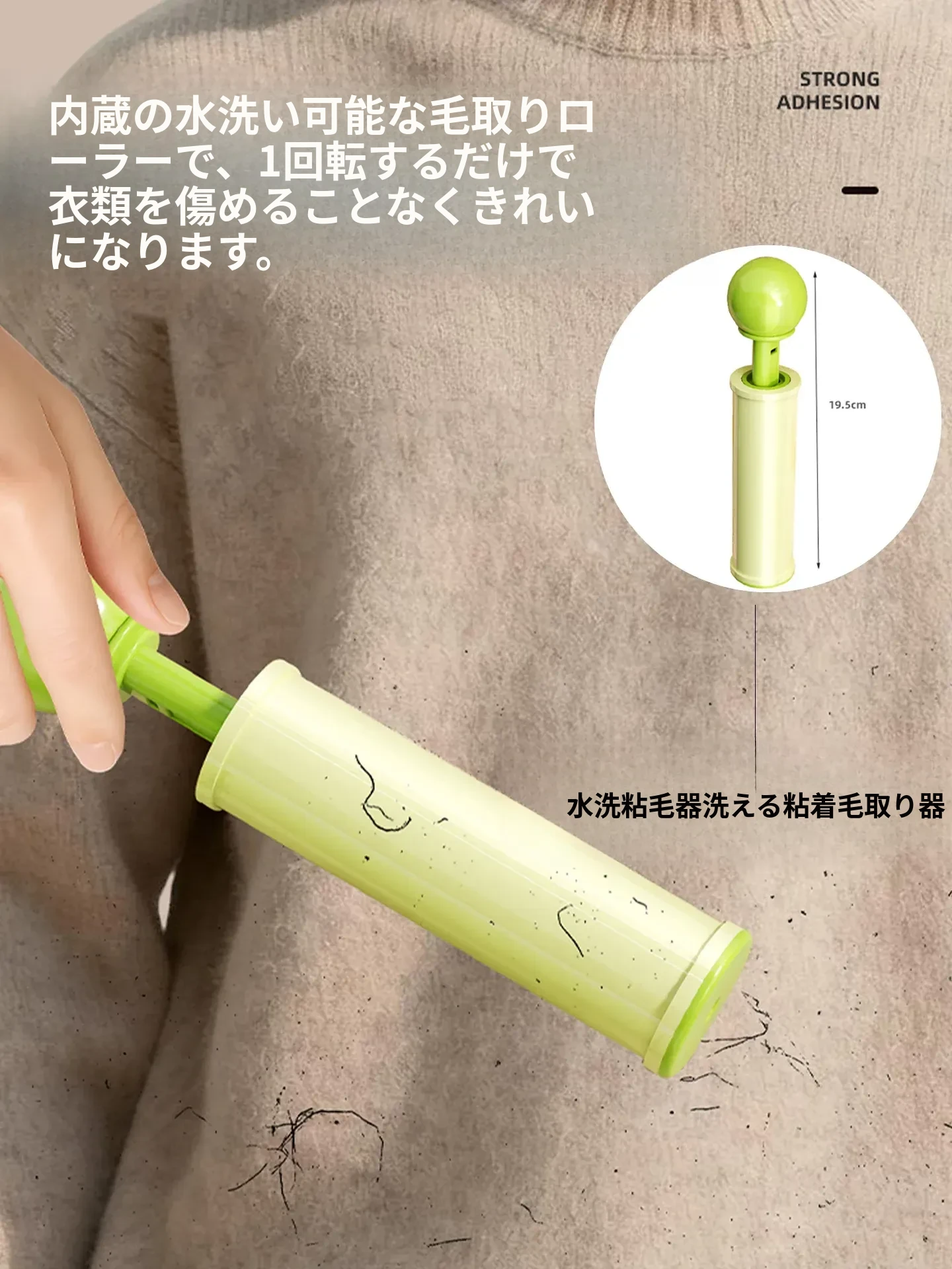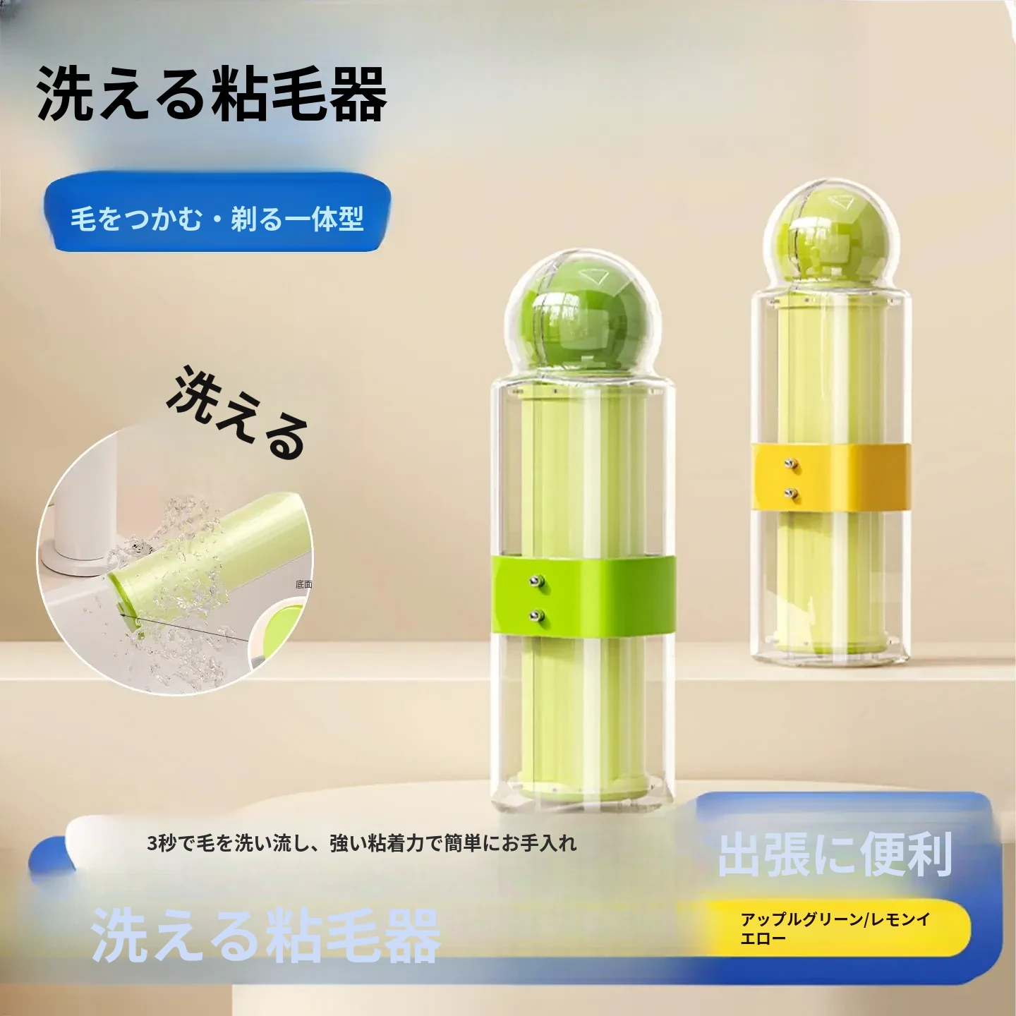 洗える毛取りローラー - 旅行に便利!衣類を傷めずに毛やピリングを簡単に除去。持ち運びにも最適なクリーニングツールで、いつでもどこでも清潔な服を保ちましょう!