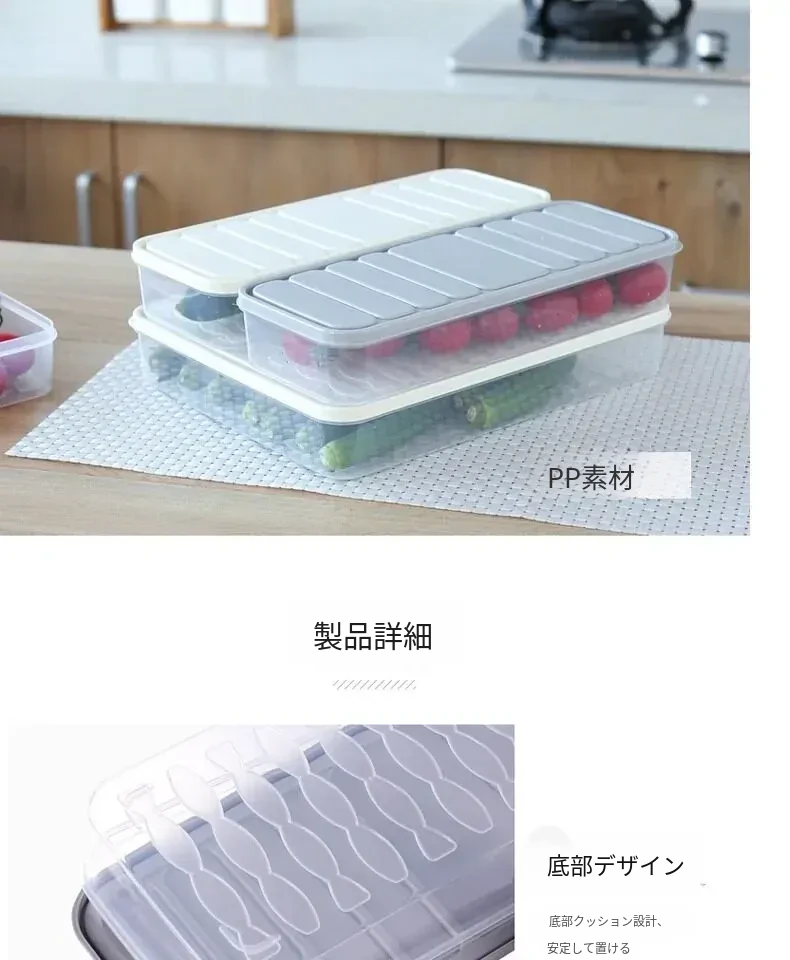 冷凍餃子専用!密封保存できる長方形プラスチック容器 - 食品の鮮度をキープ!便利な蓋付き収納ボックスで、冷蔵庫もスッキリ。あなたの食生活をより快適に!
