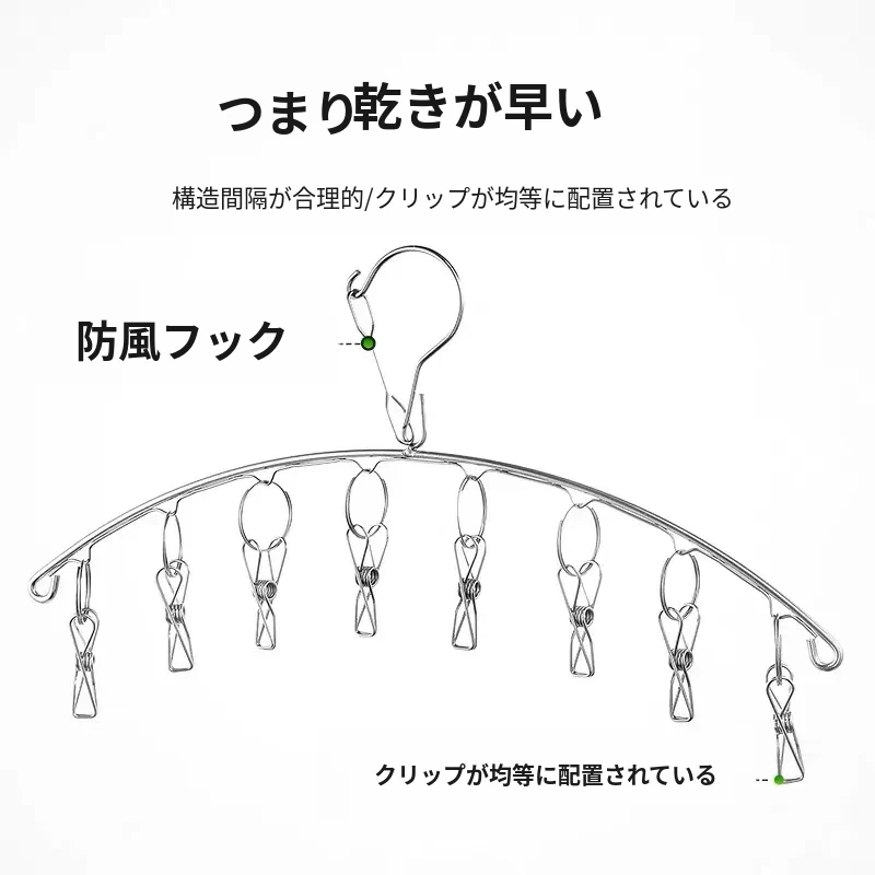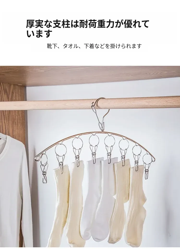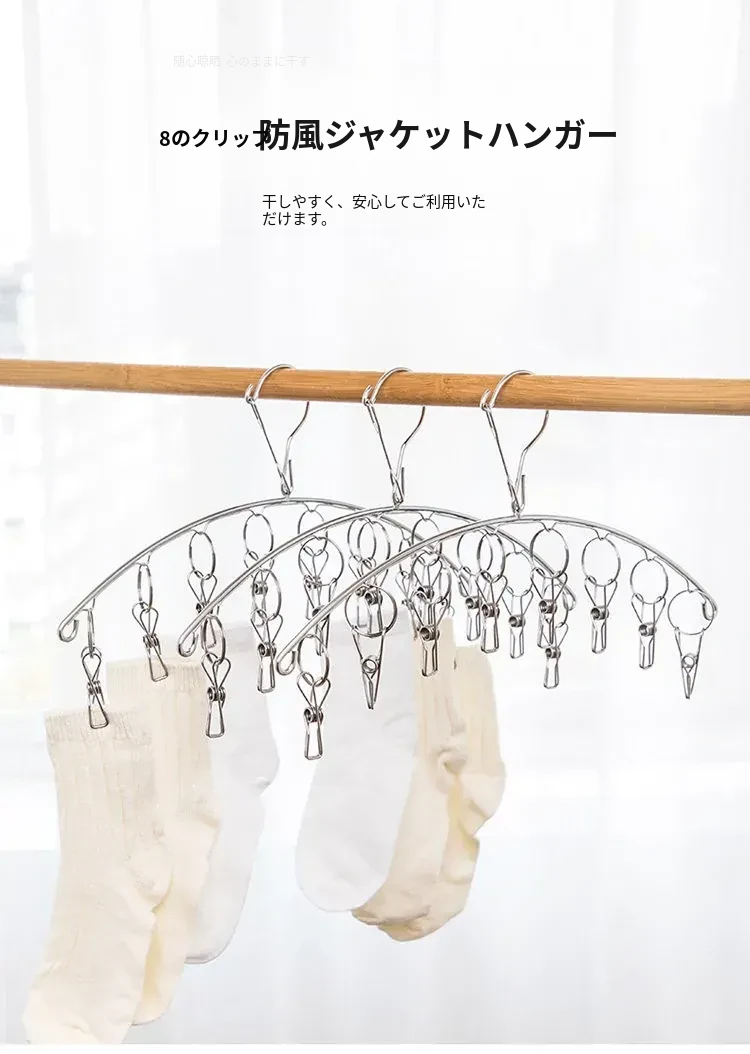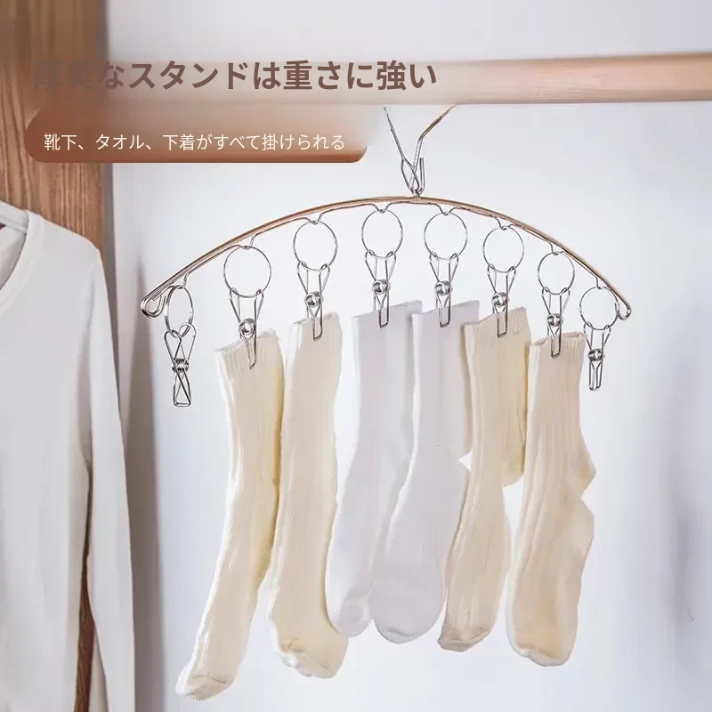 ステンレス製靴下干しクリップハンガー - 宿舎向け!多機能クリップで靴下をしっかり固定、風にも強い!家庭用に最適、洗濯物をスマートに干す新習慣!