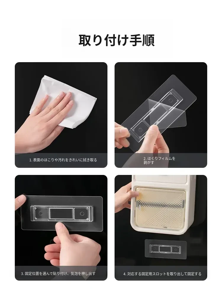 強力粘着!穴を開けずに取り付けられるティッシュボックス用アクセサリー - 使いやすい箸置き、歯ブラシホルダー、収納ラック、跡が残らない両面テープ付き!おしゃれで便利な生活をサポートします。