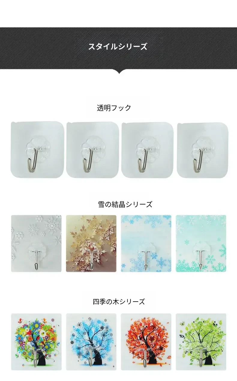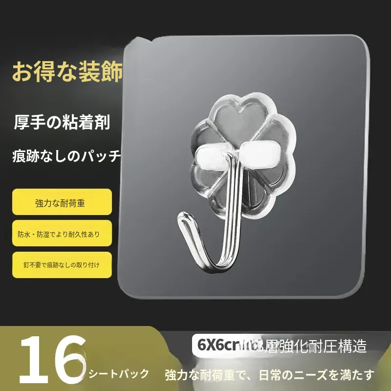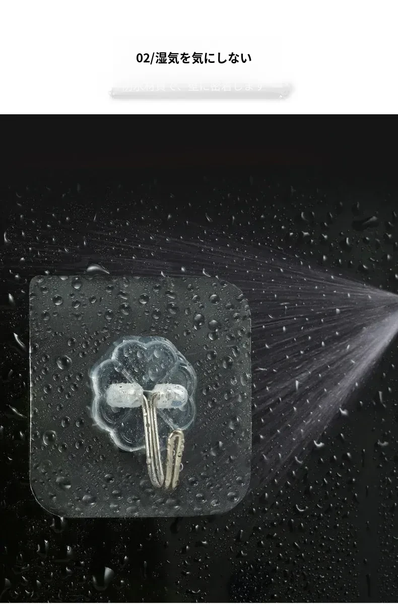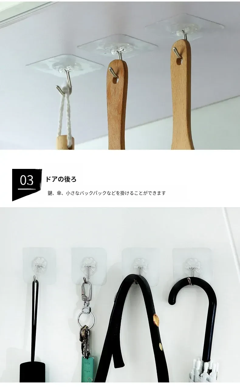 ノンネイル・無痕フック - 強力粘着・透明でおしゃれな壁掛けフック!キッチンやお部屋に最適、創造的な防水粘着フックで衣類もスッキリ収納!