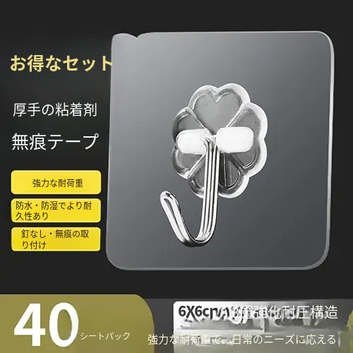 厚手強力粘着透明フック(40個入り)