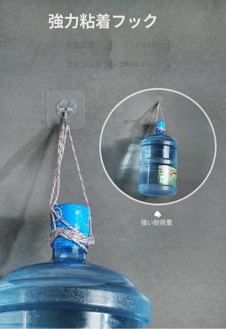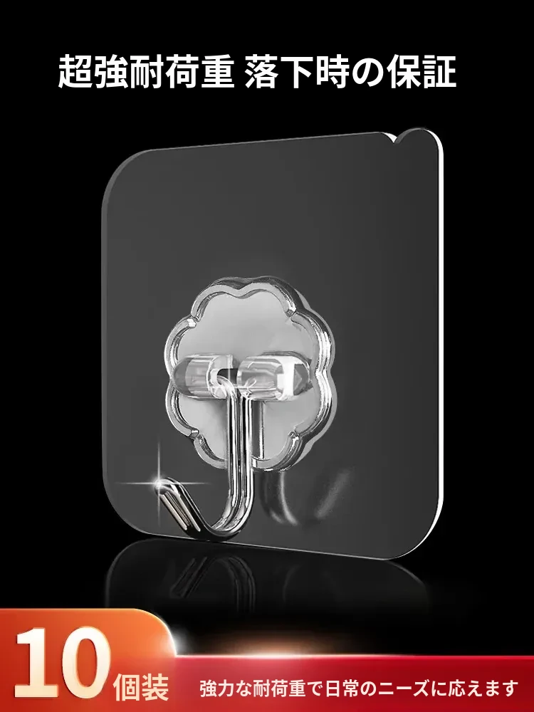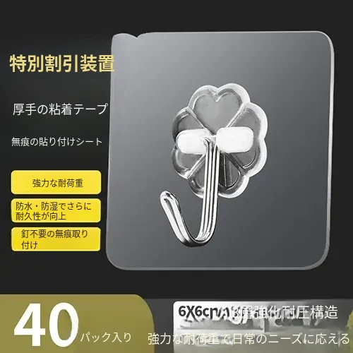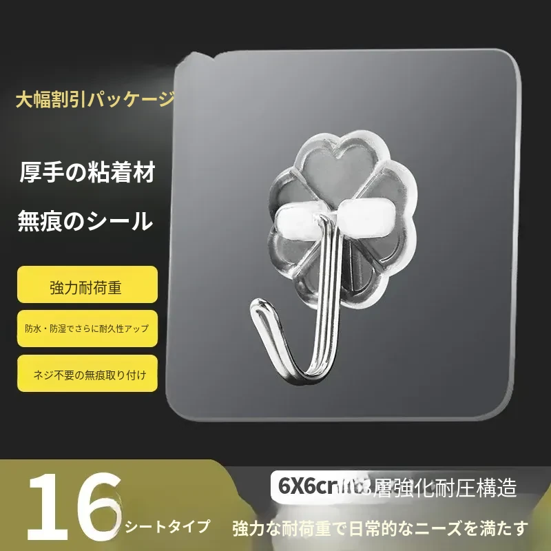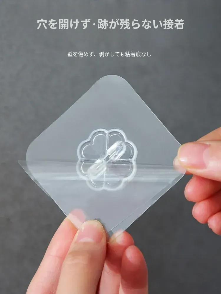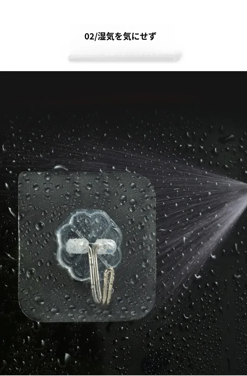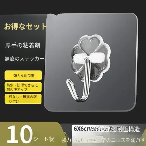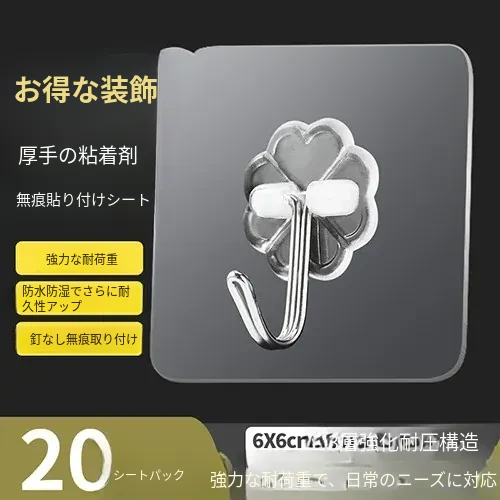 強力粘着透明フック!壁に傷をつけず、衣類やキッチン用品をおしゃれに収納。防水デザインで、どんな場所でも安心して使えます。あなたの生活を便利に彩る、夢の無痕フック!
