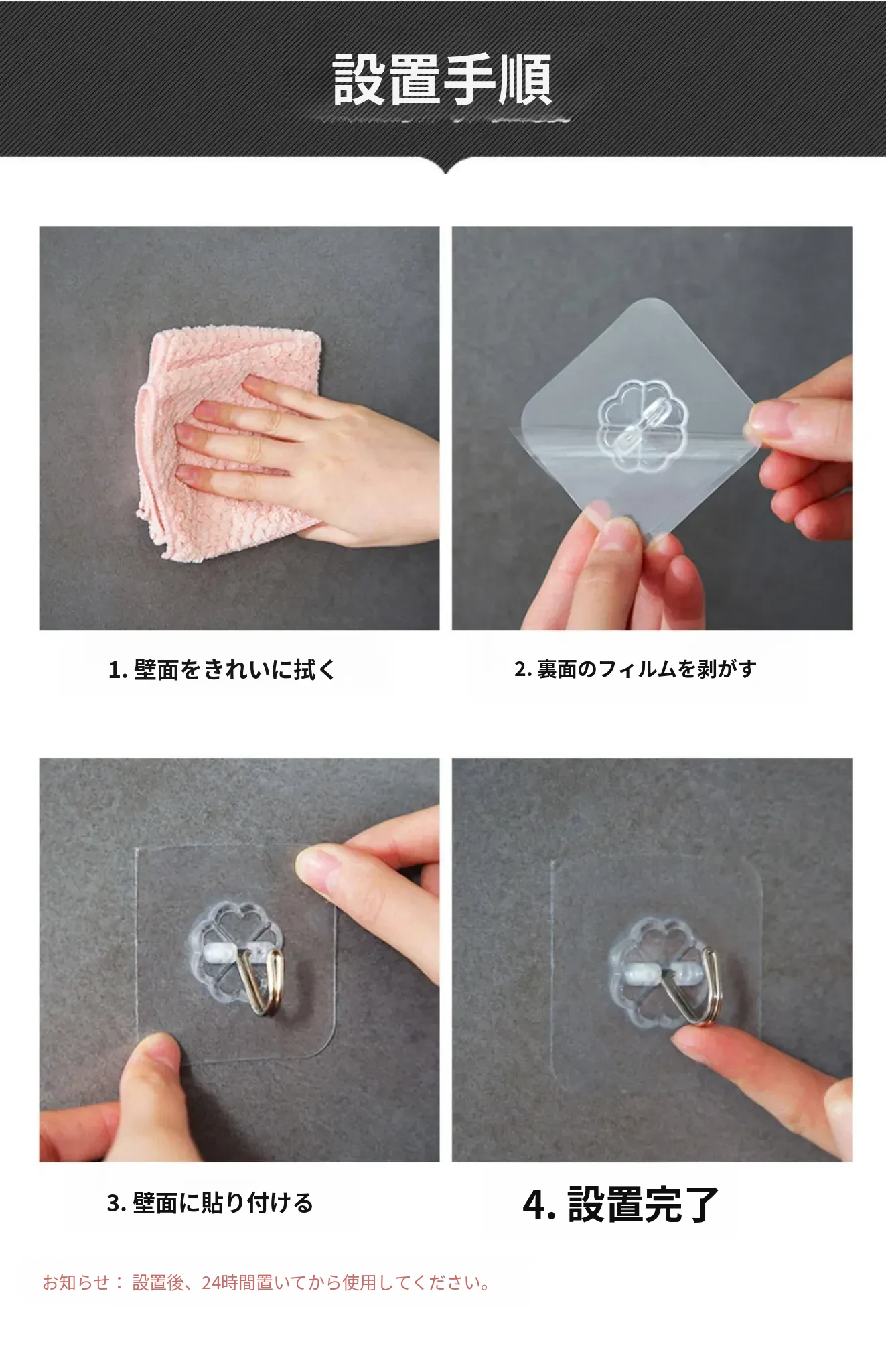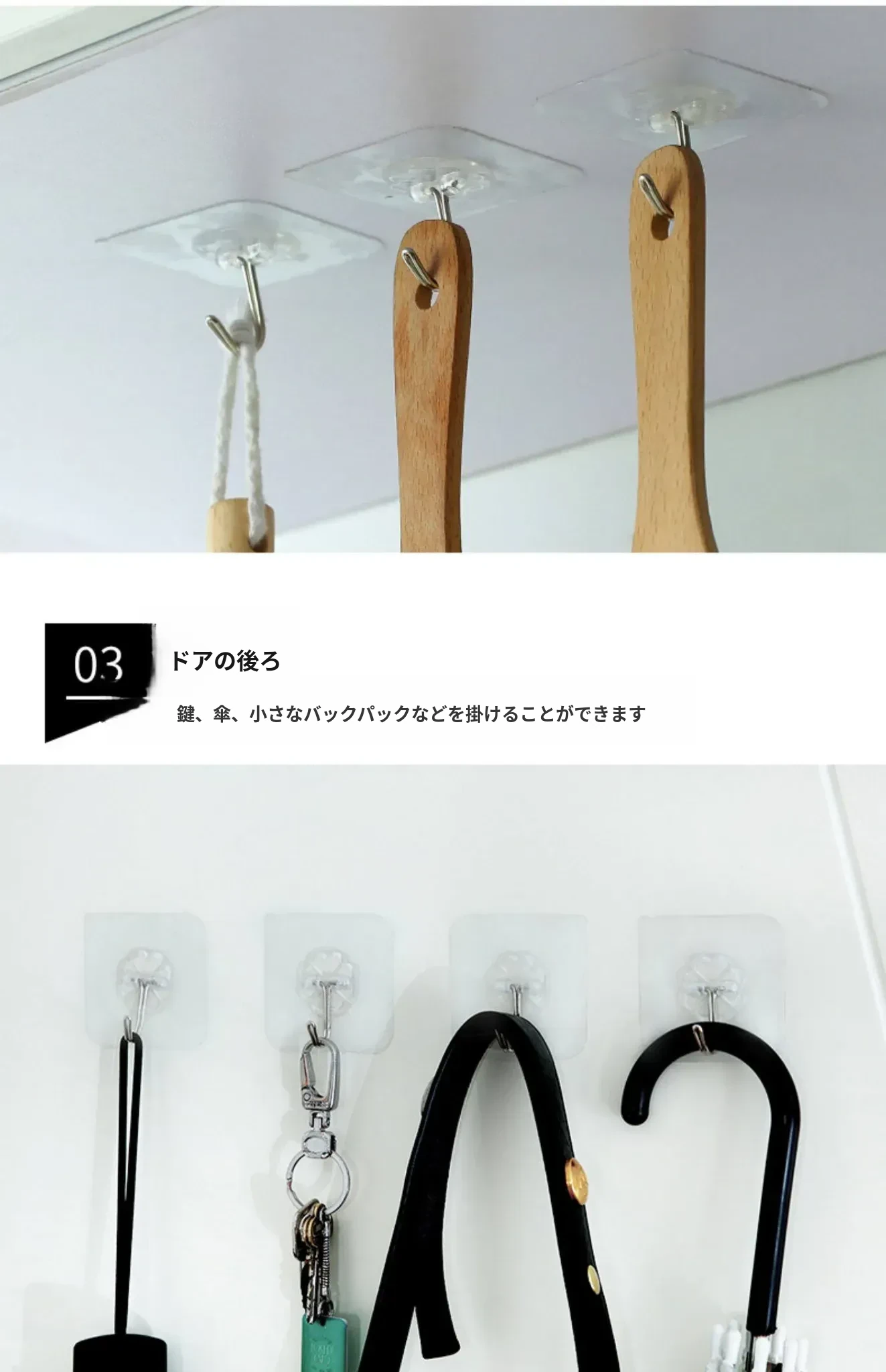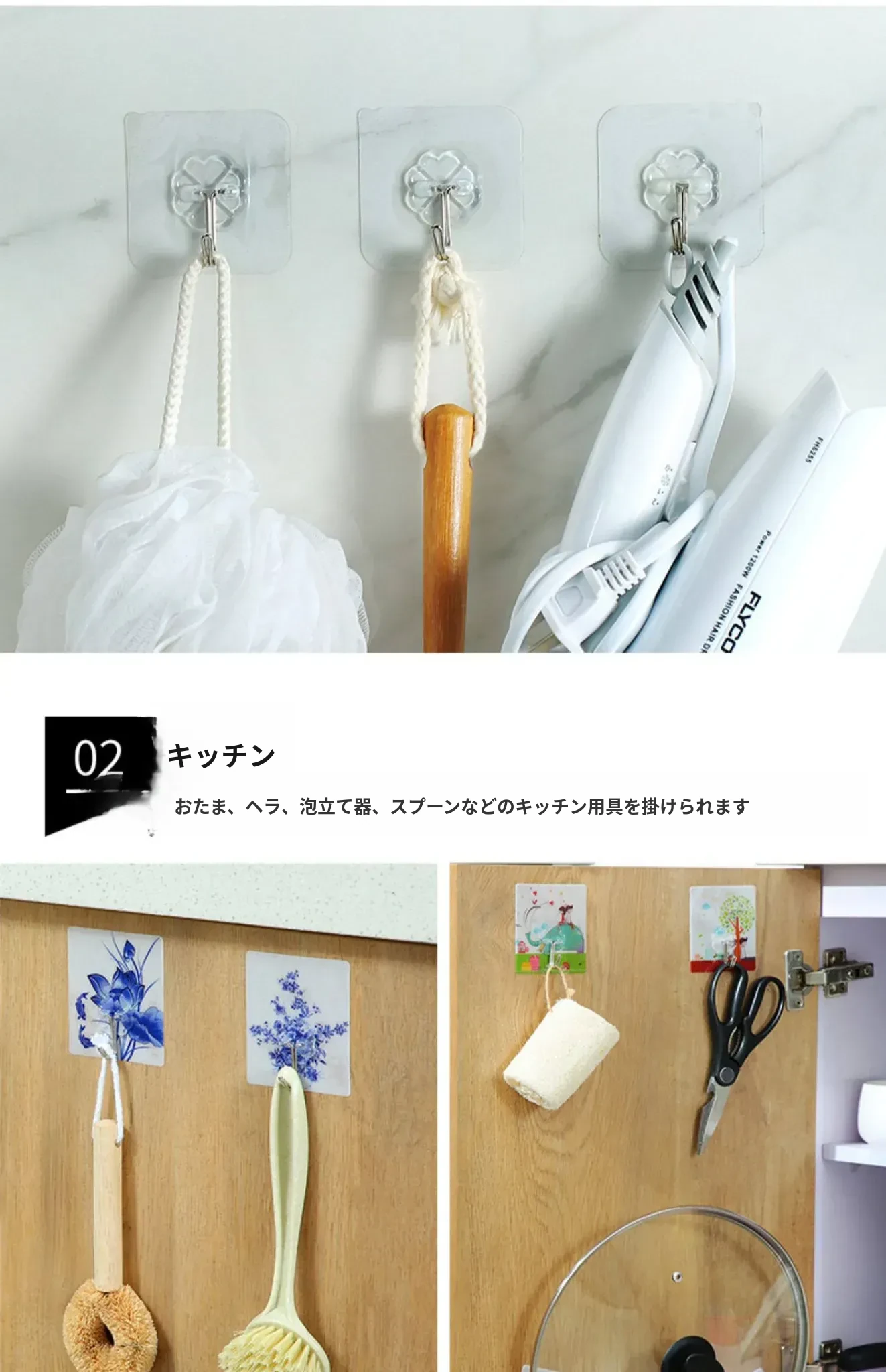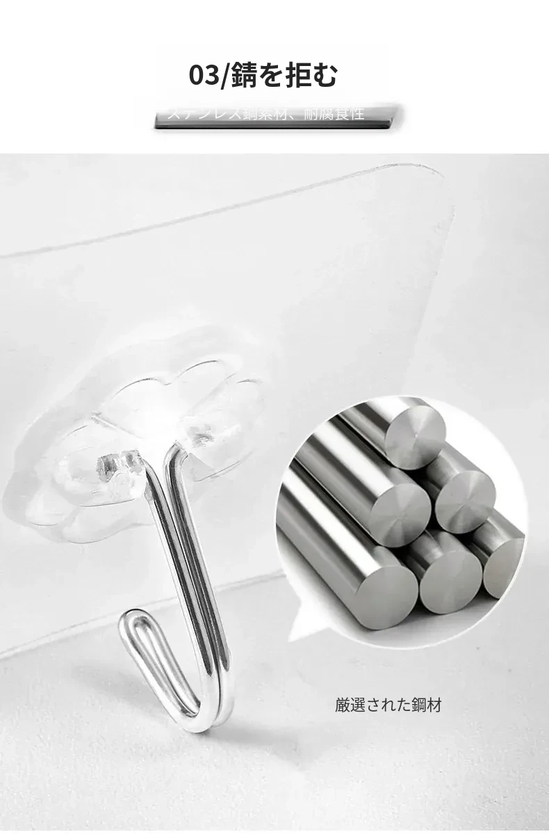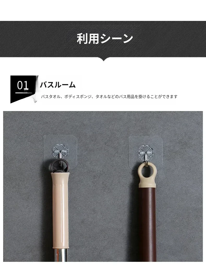 強力粘着透明フック!壁に傷をつけず、衣類やキッチン用品をおしゃれに収納。防水デザインで、どんな場所でも安心して使えます。あなたの生活を便利に彩る、夢の無痕フック!