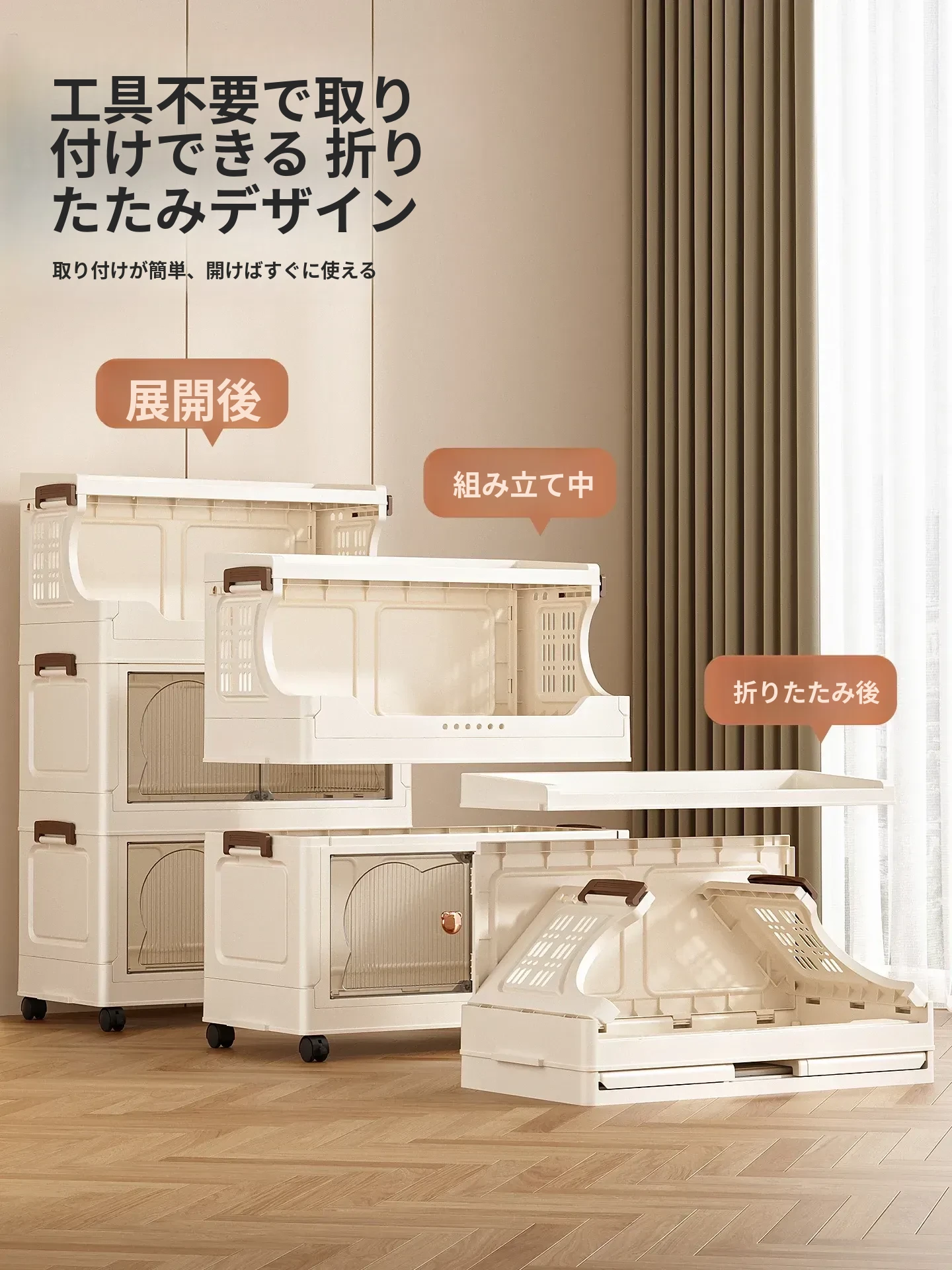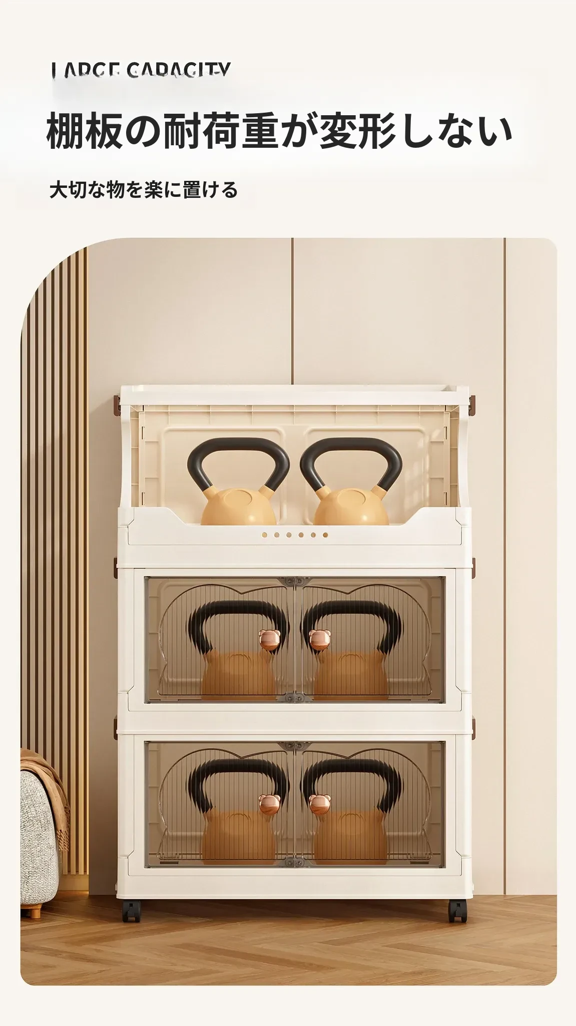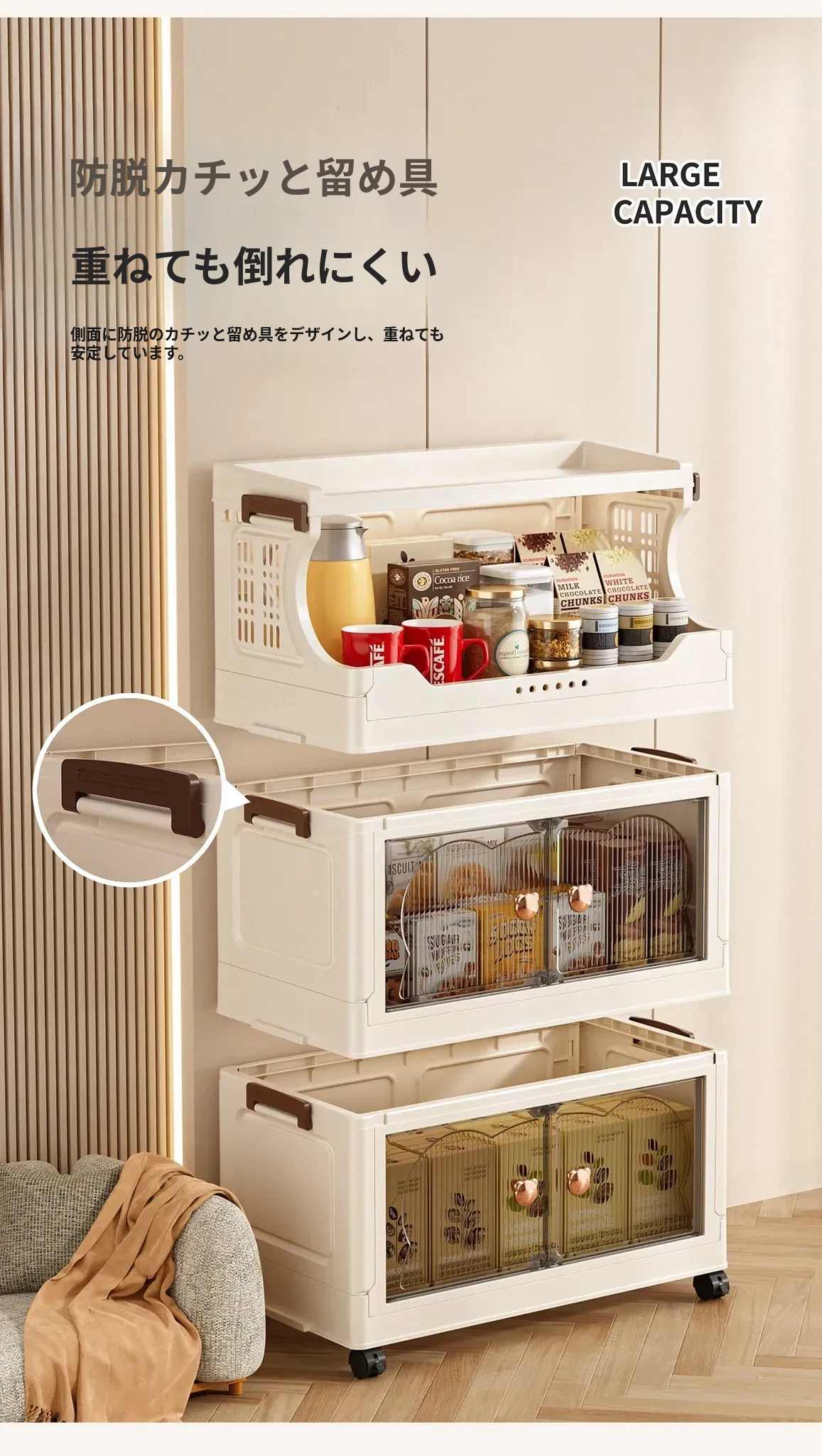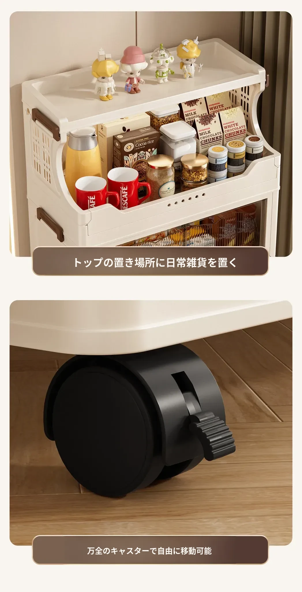 高見え!大容量のおしゃれ収納棚 - おもちゃや雑貨もすっきり整理できる折りたたみ式小型キャスター付きラック!リビングにぴったりのアイテムです。