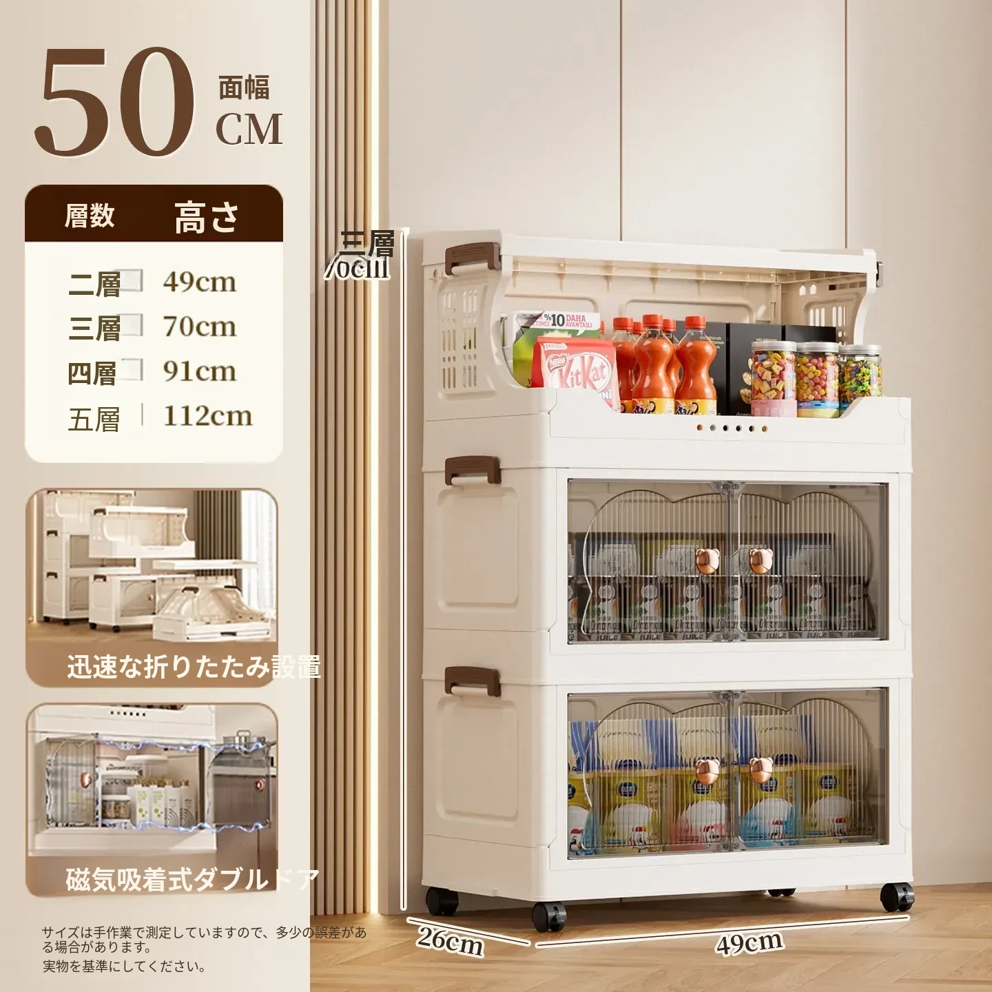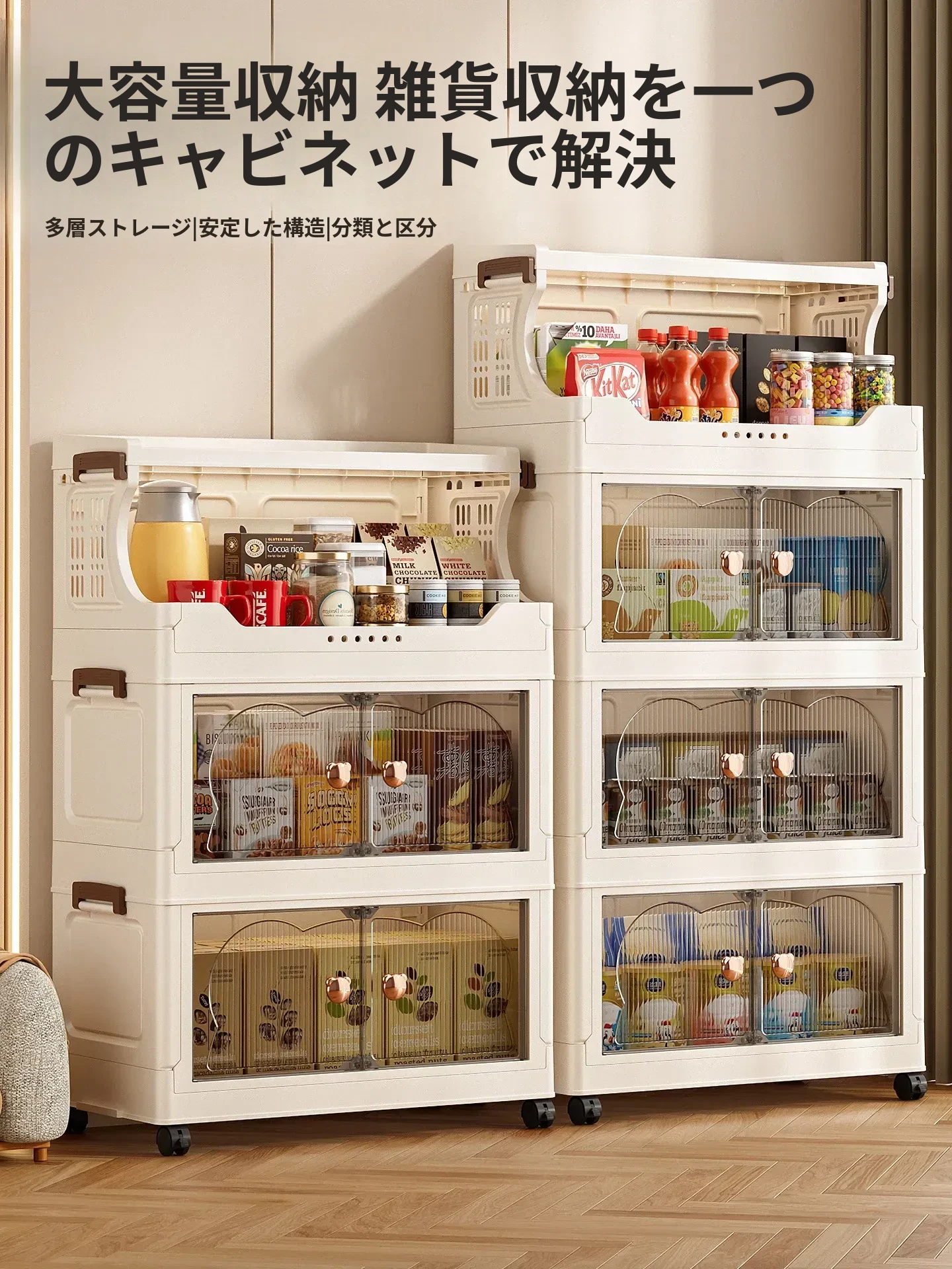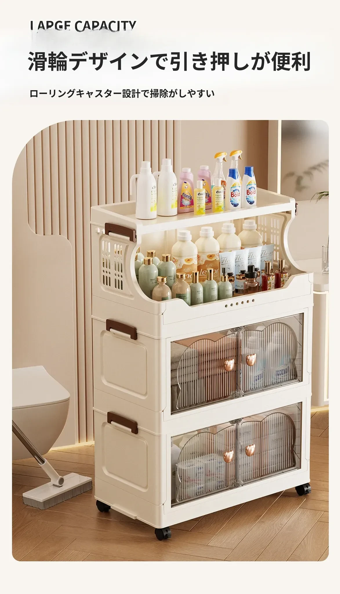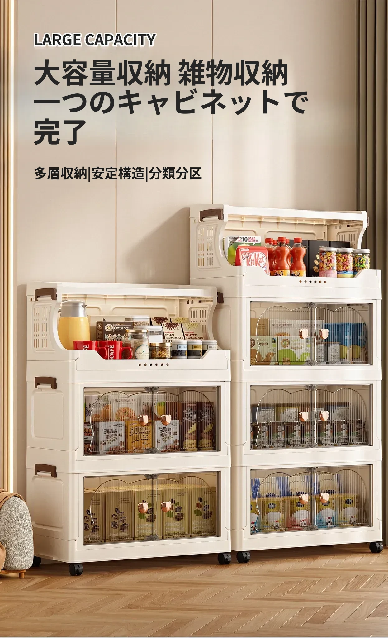 高見え!大容量のおしゃれ収納棚 - おもちゃや雑貨もすっきり整理できる折りたたみ式小型キャスター付きラック!リビングにぴったりのアイテムです。