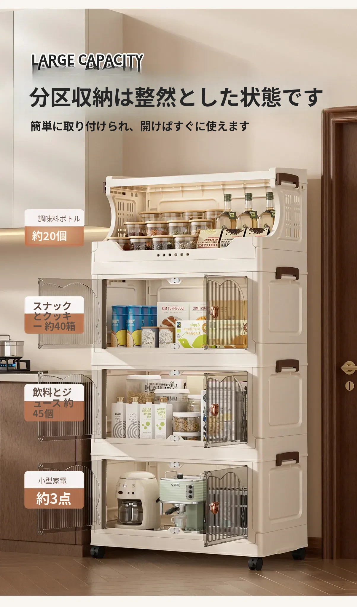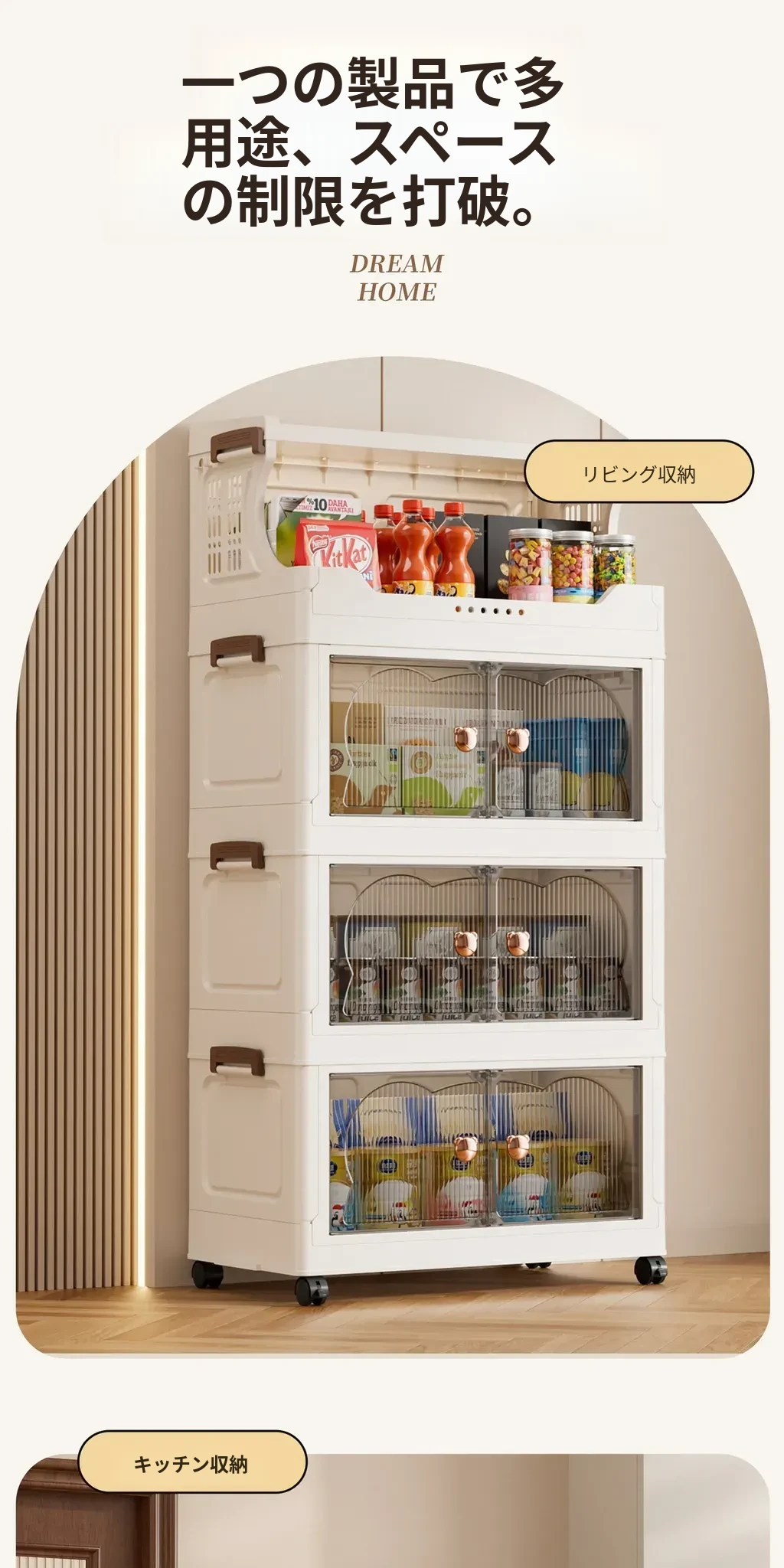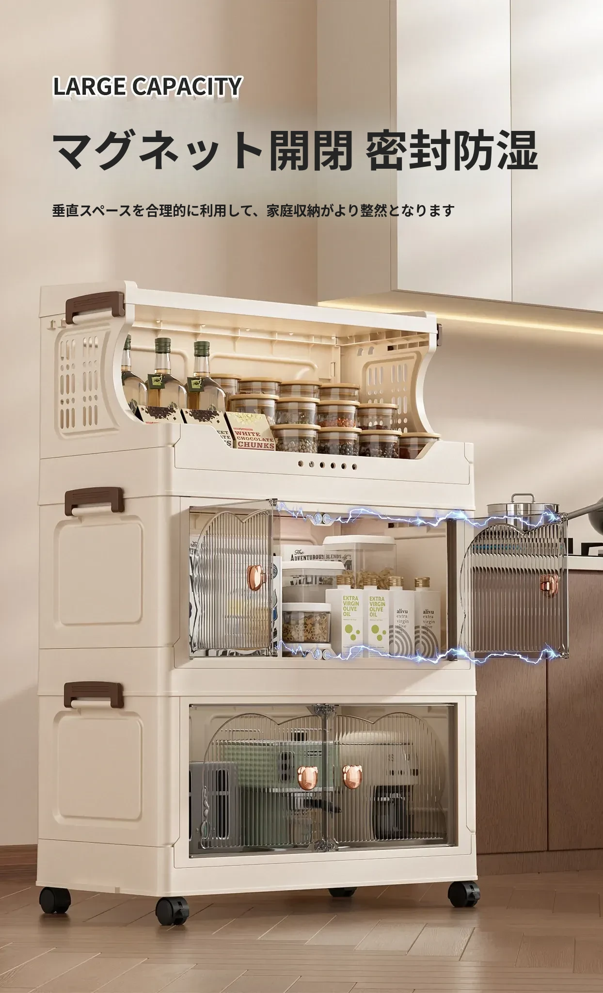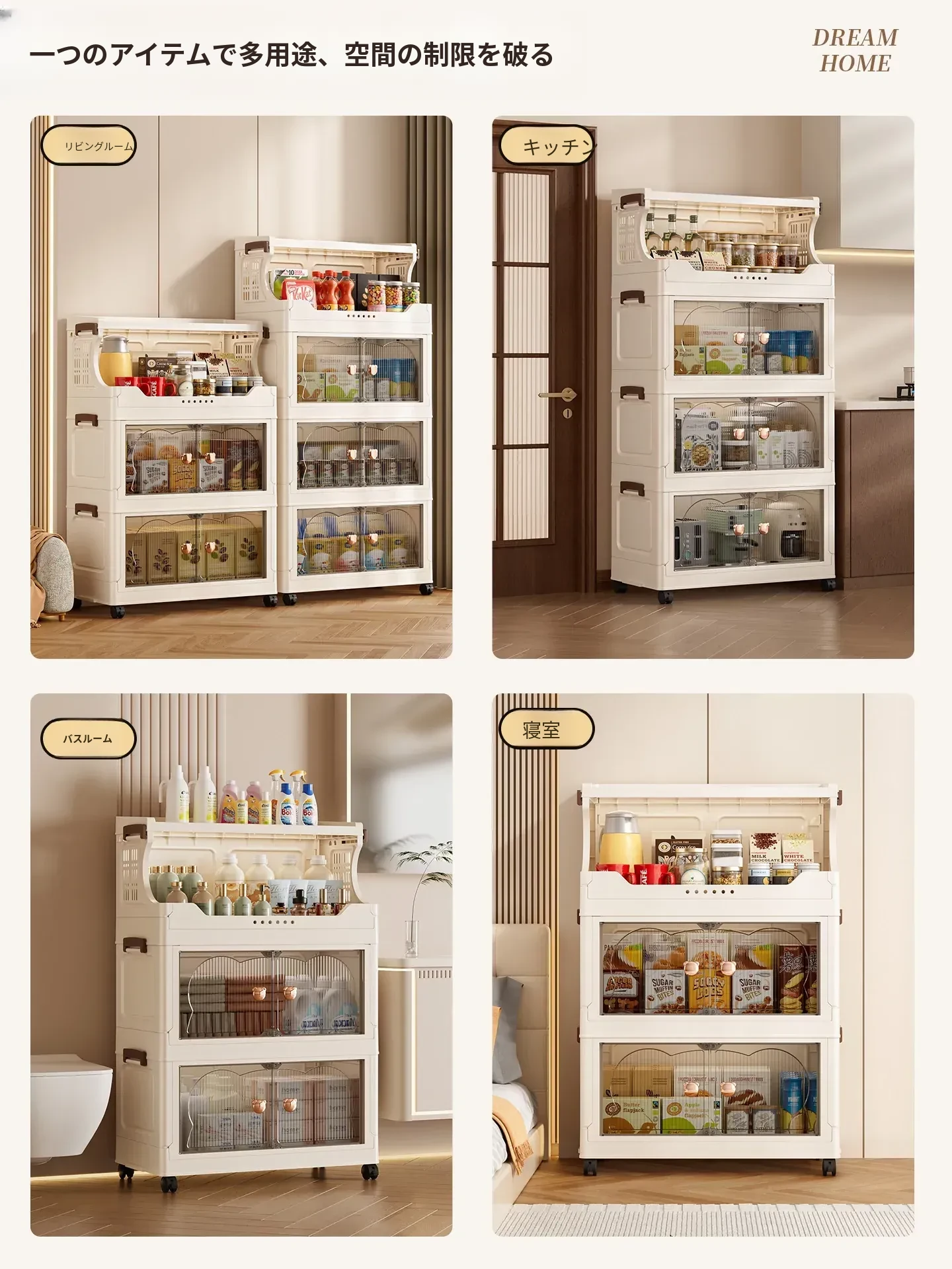 高見え!大容量のおしゃれ収納棚 - おもちゃや雑貨もすっきり整理できる折りたたみ式小型キャスター付きラック!リビングにぴったりのアイテムです。