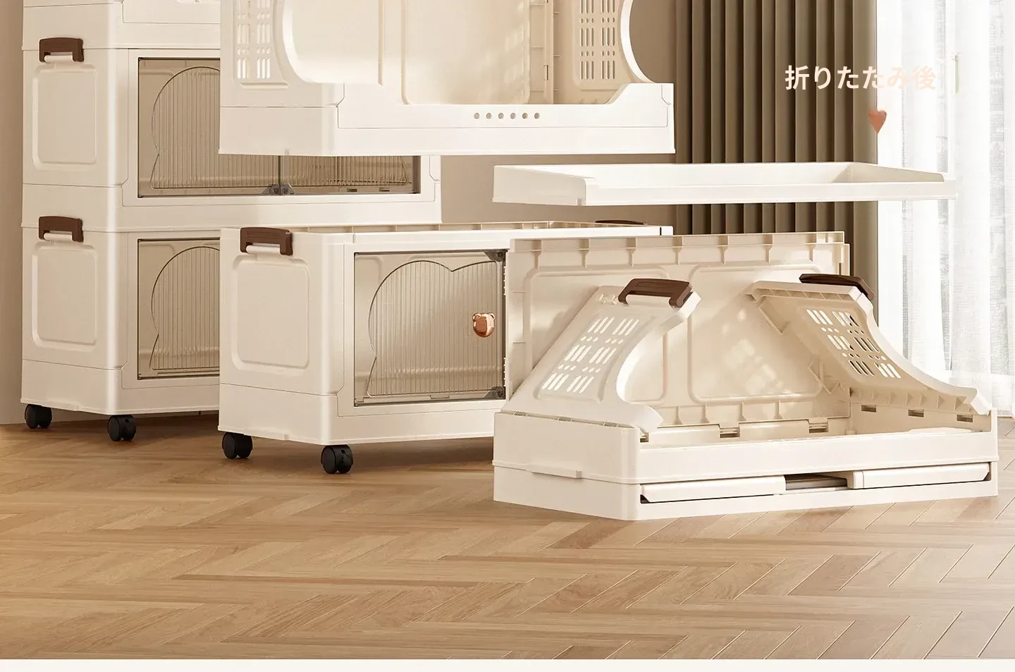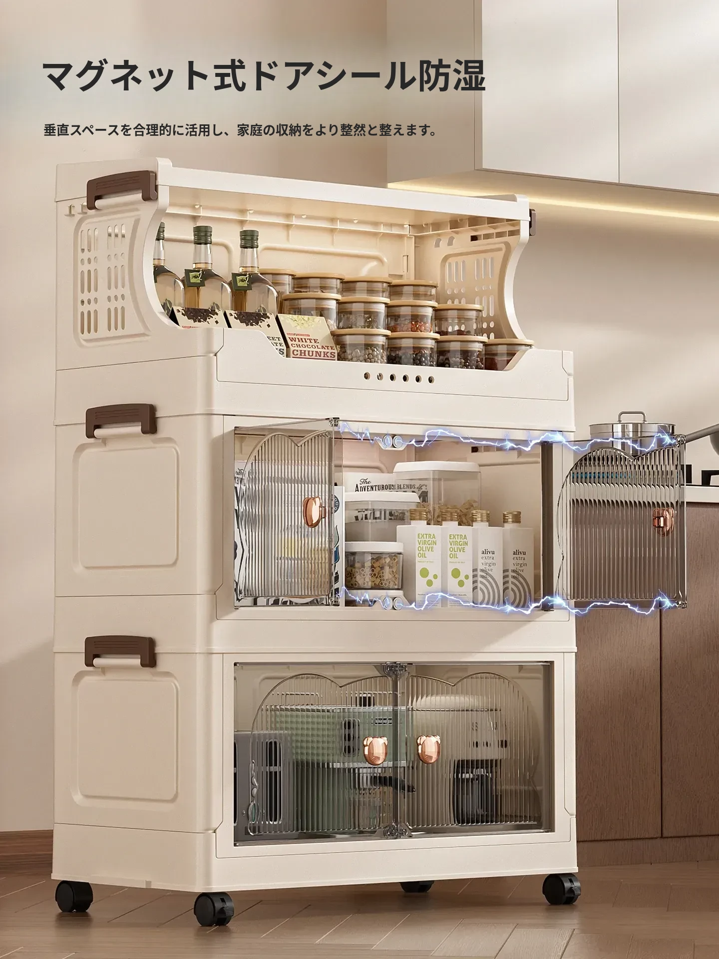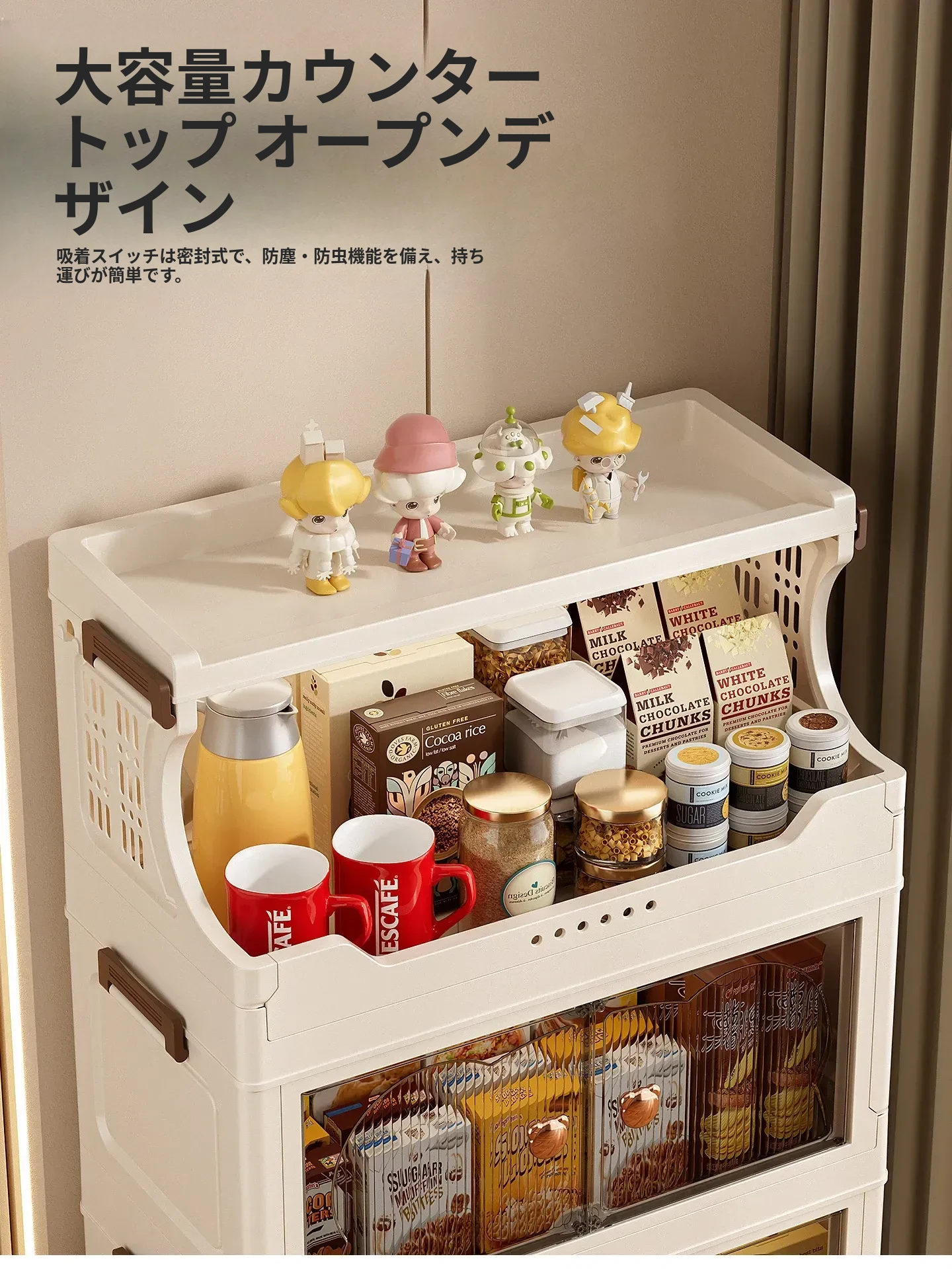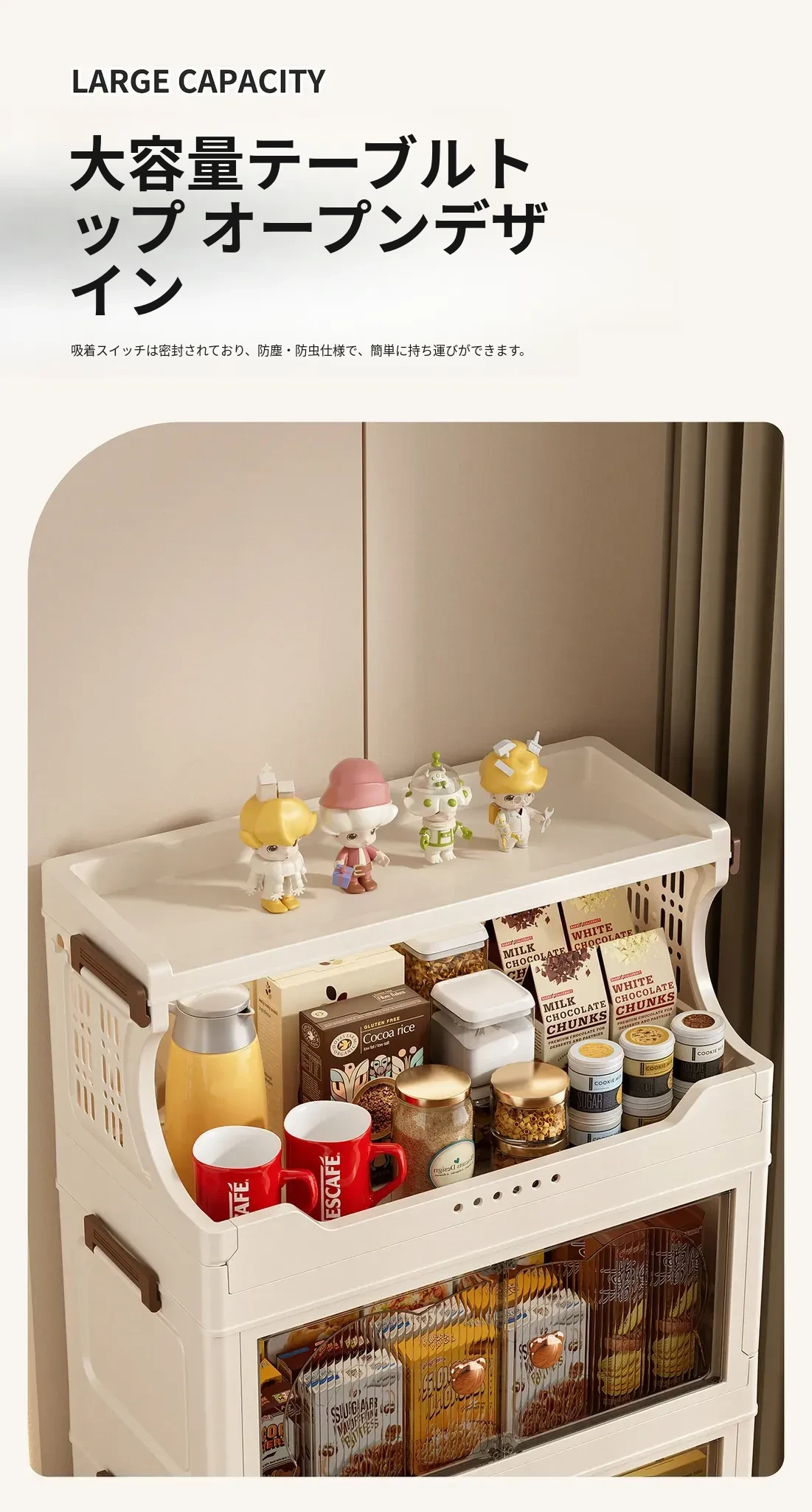 高見え!大容量のおしゃれ収納棚 - おもちゃや雑貨もすっきり整理できる折りたたみ式小型キャスター付きラック!リビングにぴったりのアイテムです。