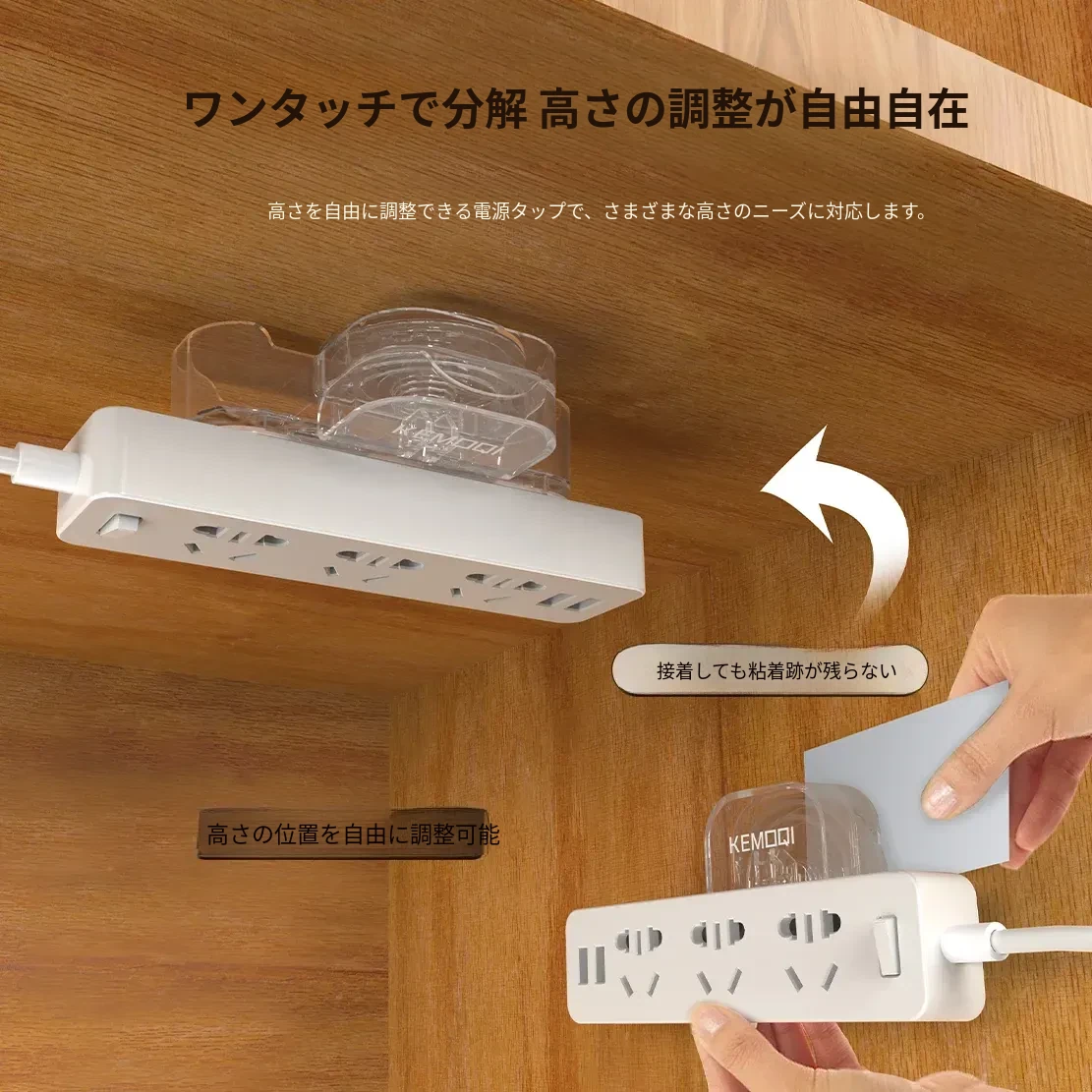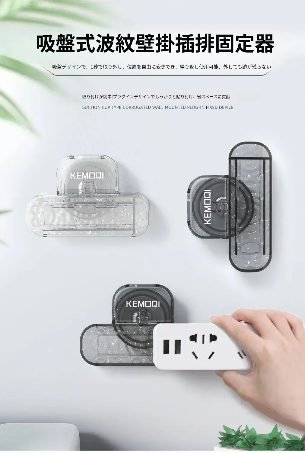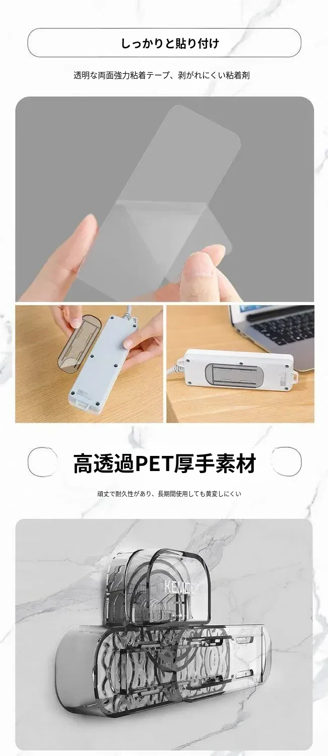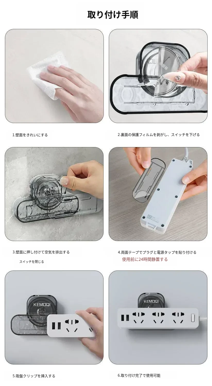 壁掛け吸盤式電源タップ固定器 - 壁面に貼り付けるだけで簡単収納!穴あけ不要、スッキリ整理できるコンセント収納ラック。お部屋をスッキリさせる必需品!