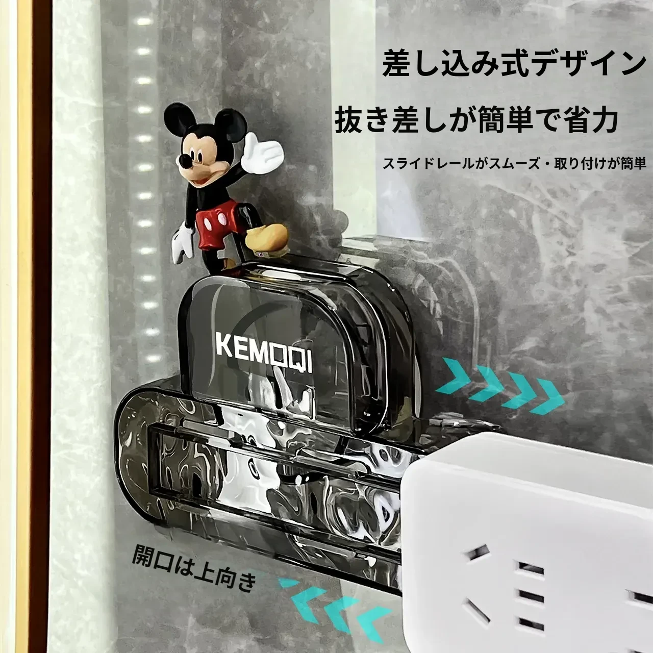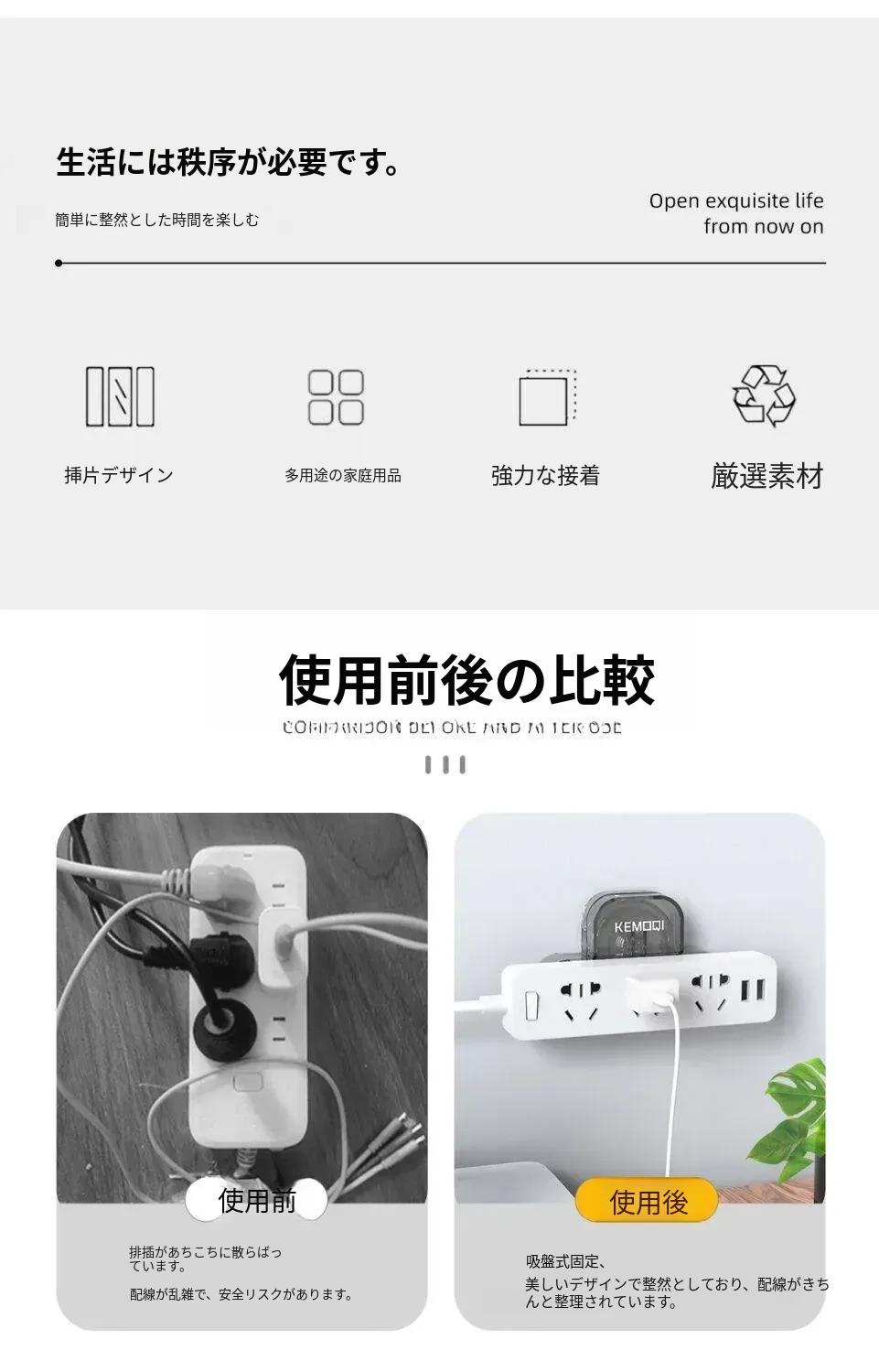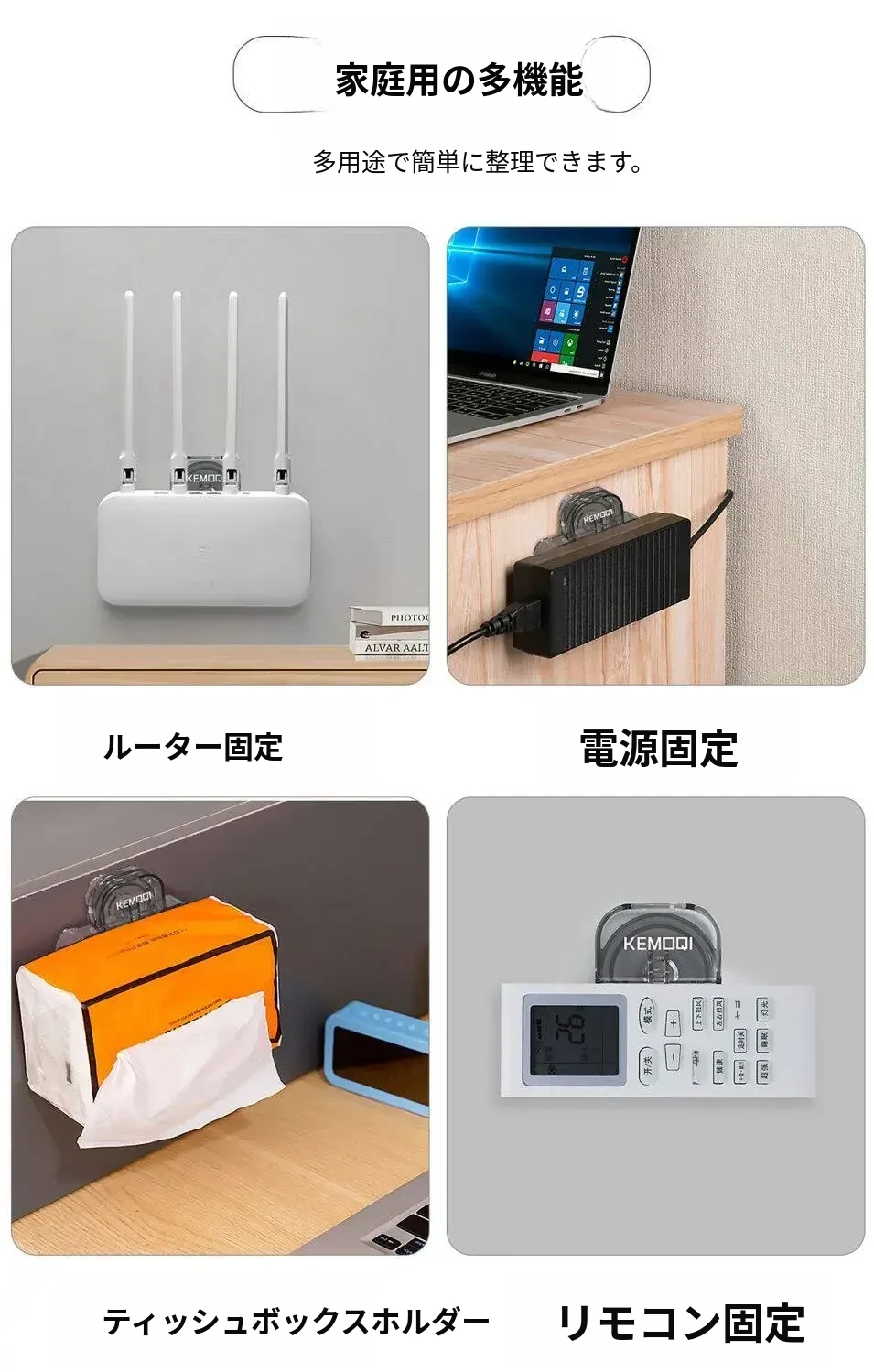 壁掛け吸盤式電源タップ固定器 - 壁面に貼り付けるだけで簡単収納!穴あけ不要、スッキリ整理できるコンセント収納ラック。お部屋をスッキリさせる必需品!