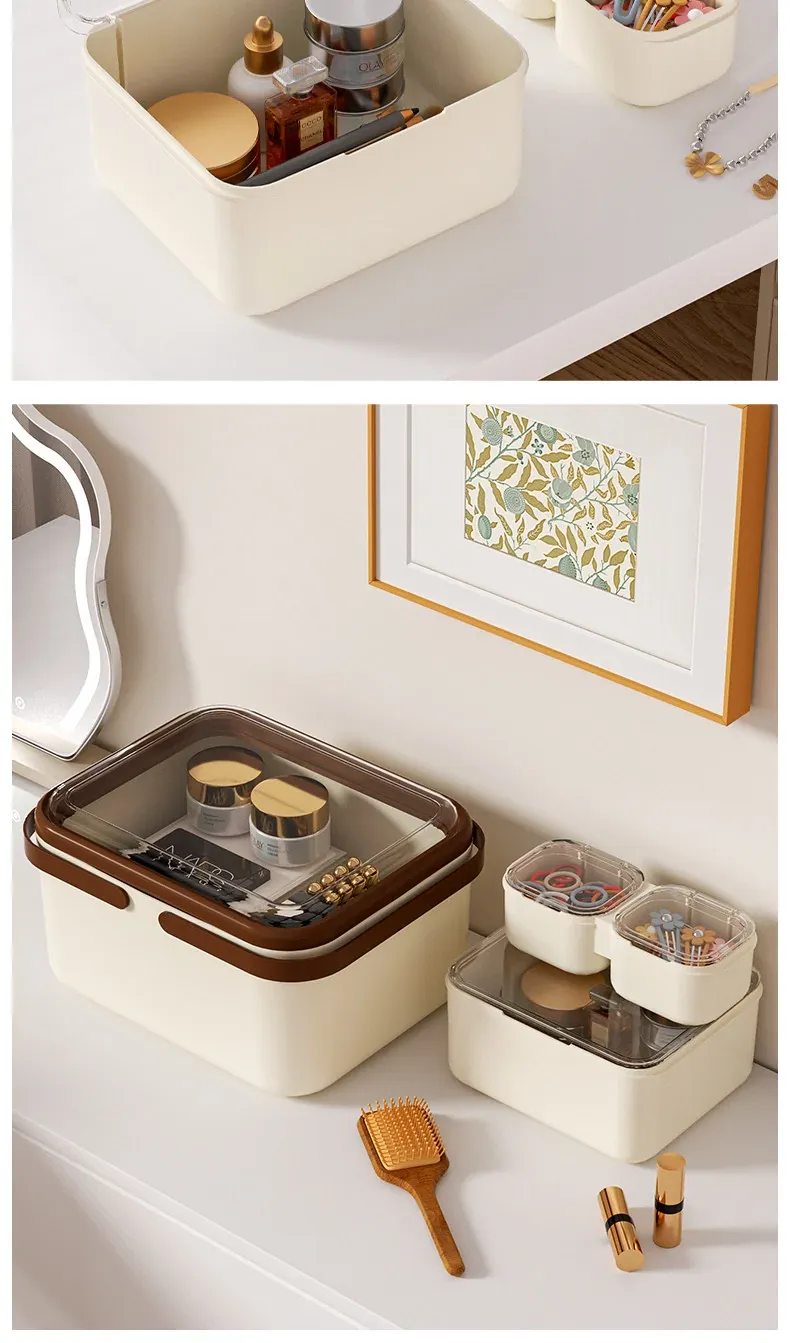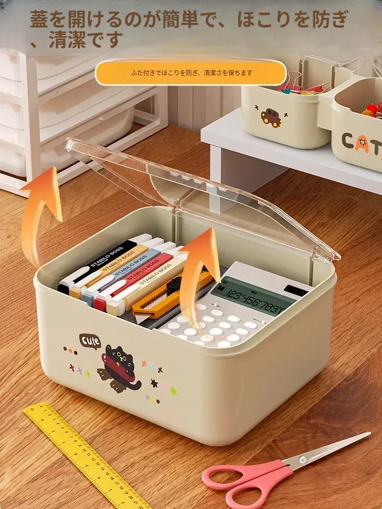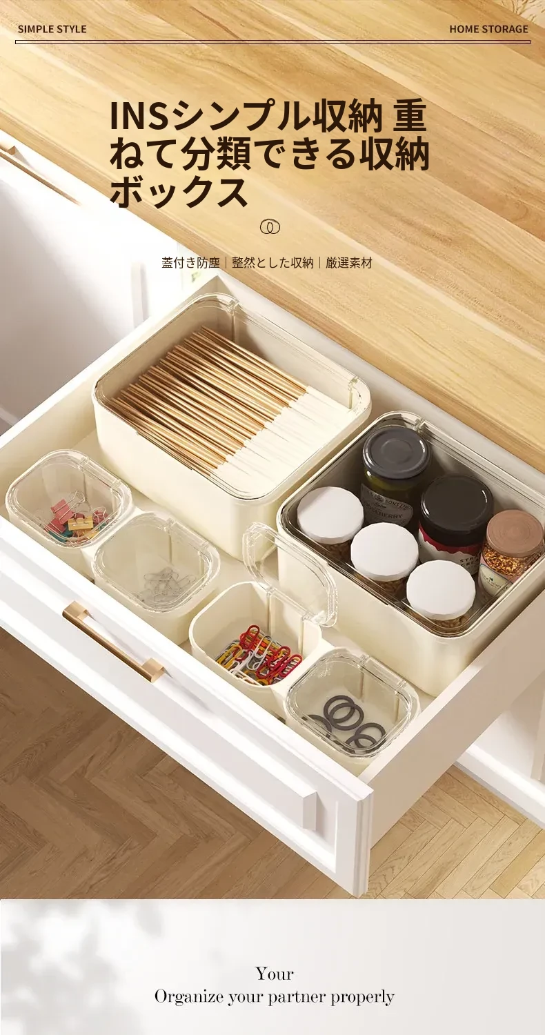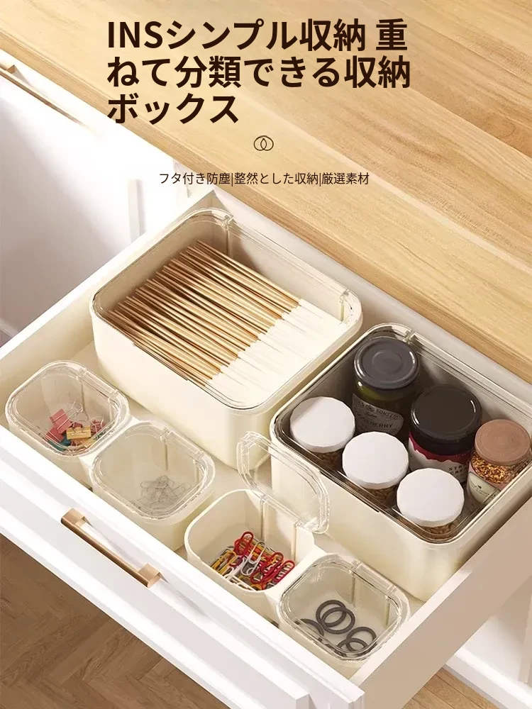 引き出し用収納ボックス 蓋付き 文房具や小物を整理する仕切り付き収納ボックス デスクや作業スペースに最適 透明なプラスチック製 小型ボックスでスッキリ整理!