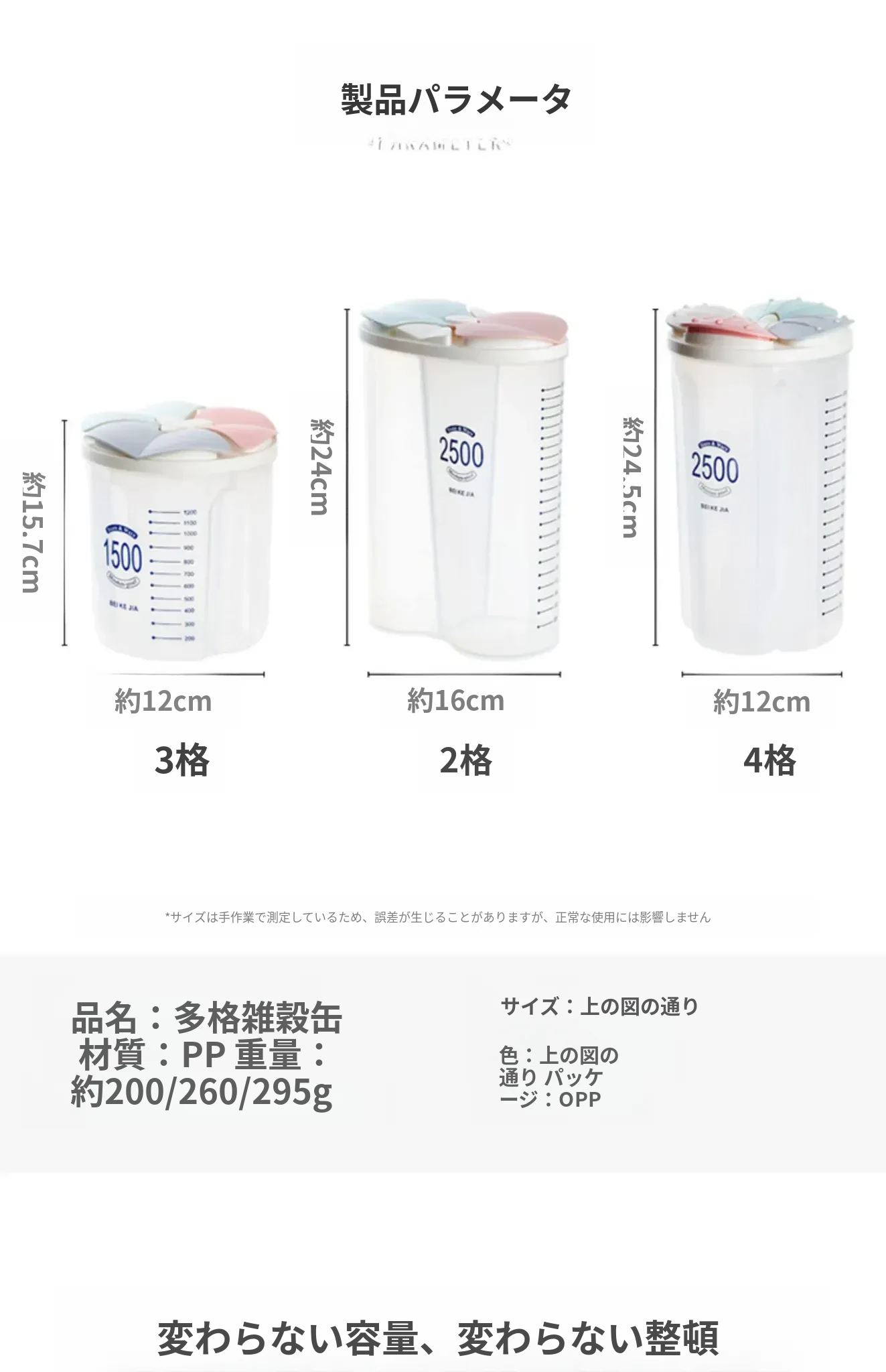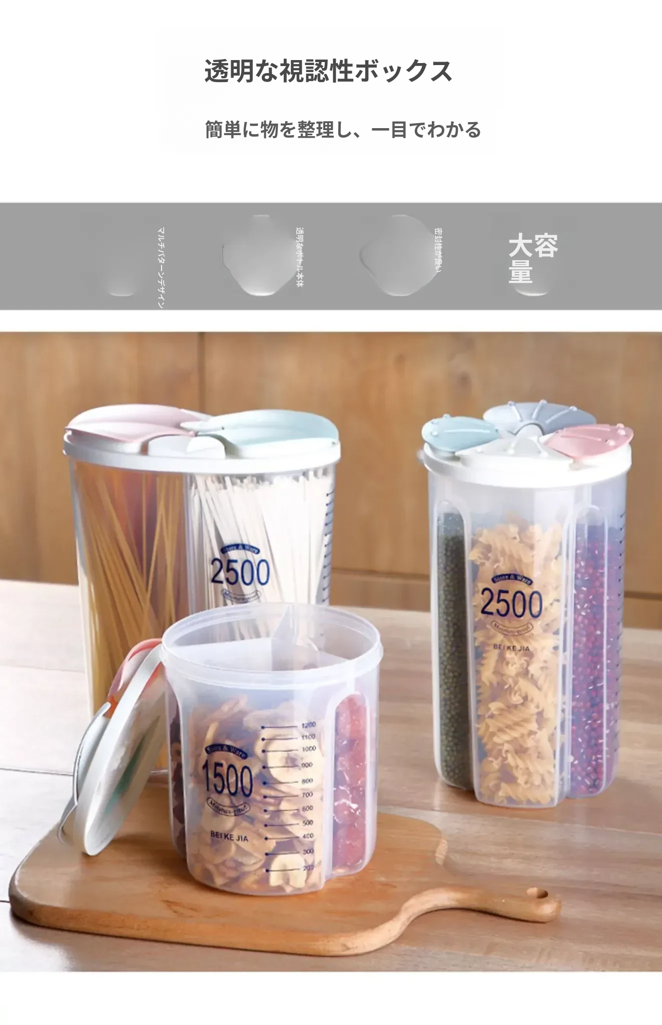 五穀雑穀 スナック保存容器 密閉容器 家庭用プラスチック 透明 キッチン用 分割収納 ボトル ドライフード整理に最適!