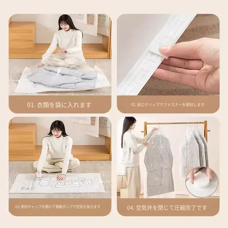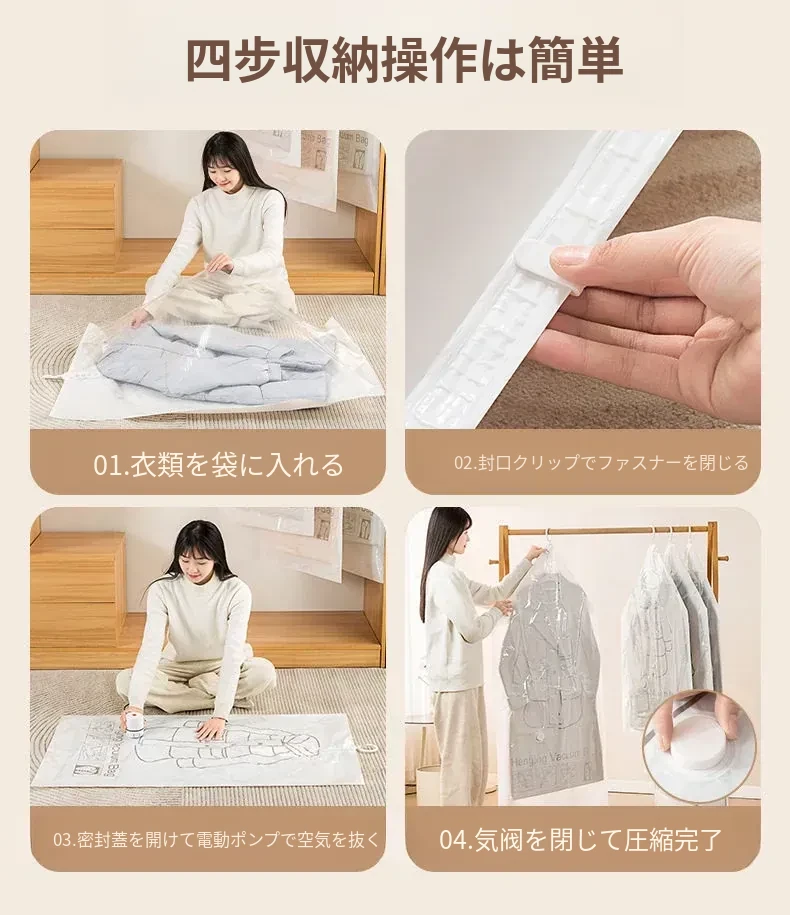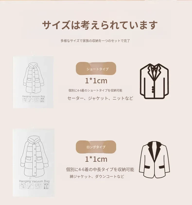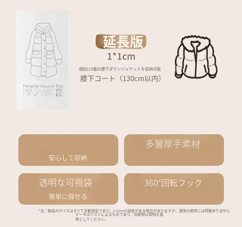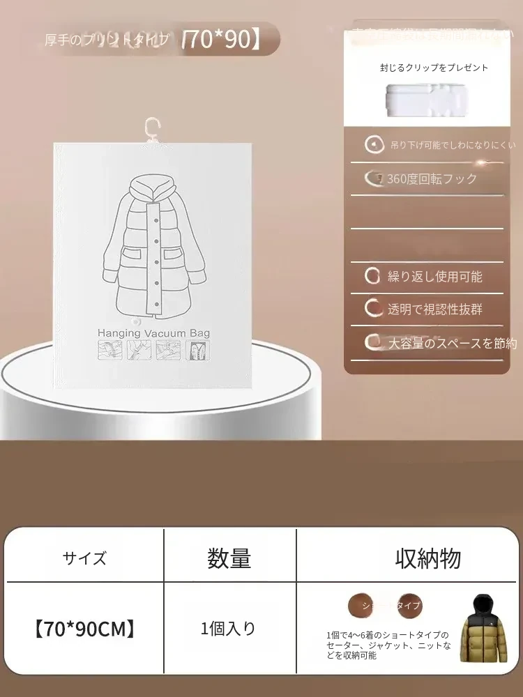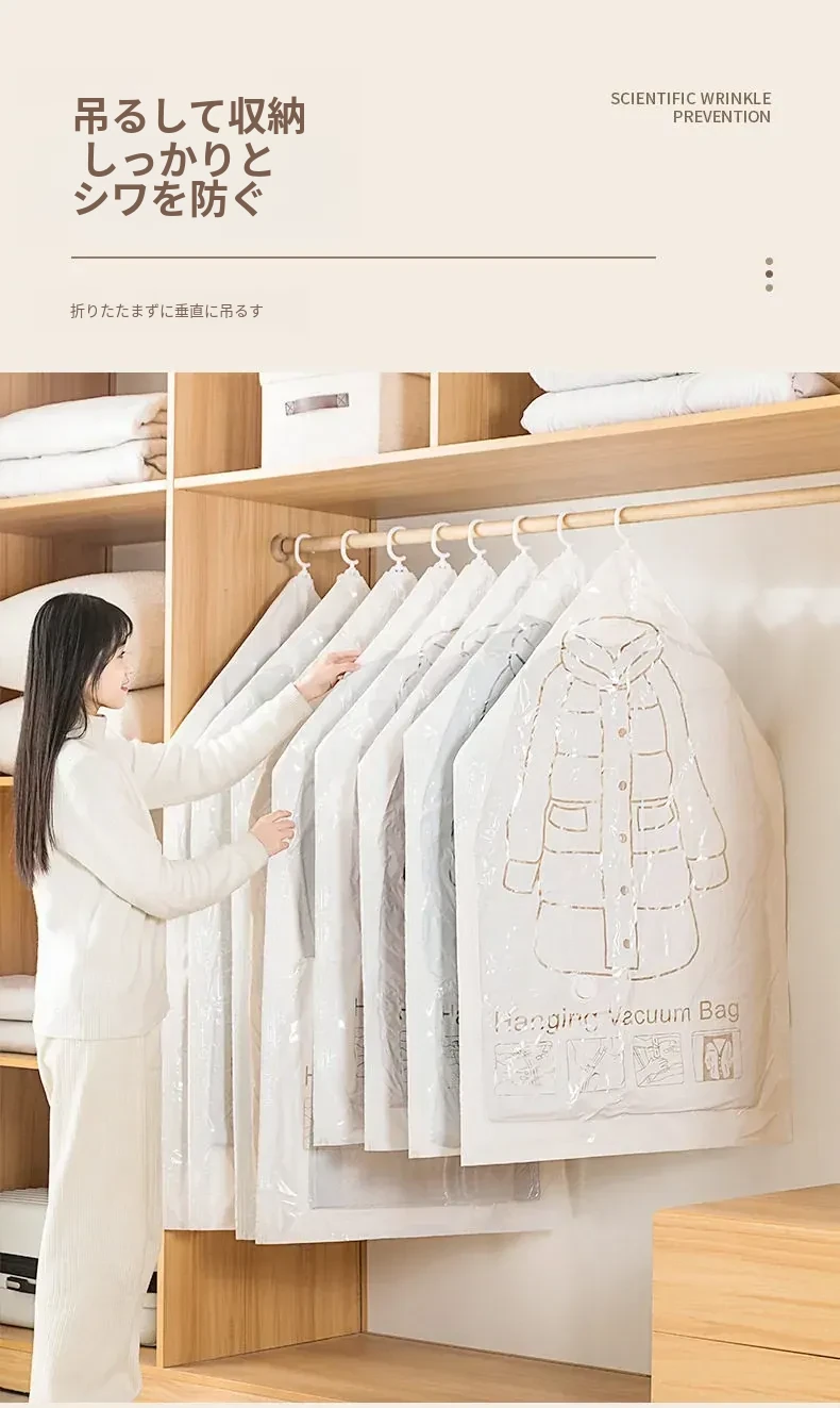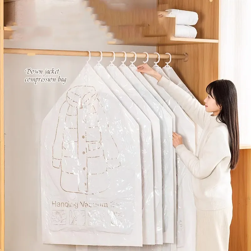 ダウンジャケット用真空圧縮収納袋 - 衣類整理の必需品!湿気から守る掛け式デザインで、クローゼットをスッキリ整理。スペースを有効活用して、衣類をスマートに収納!