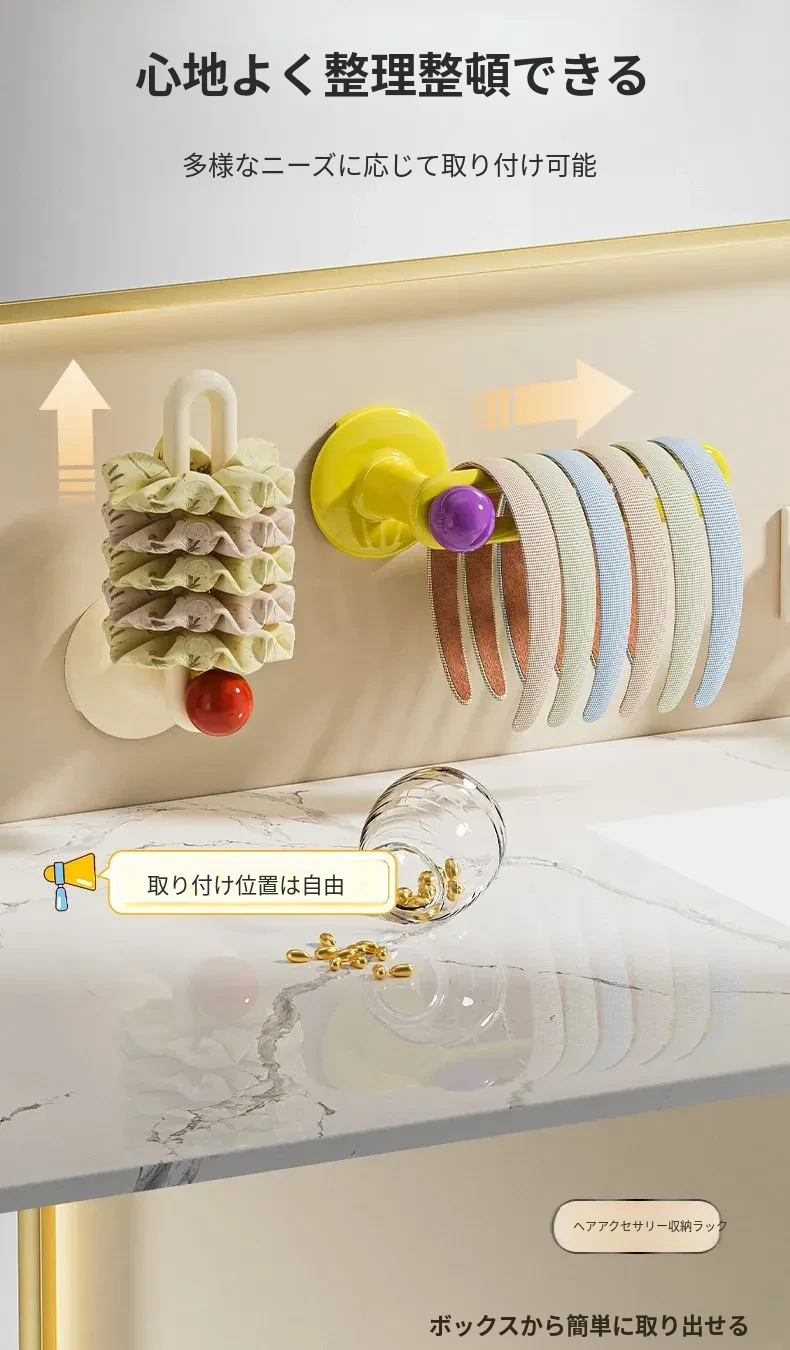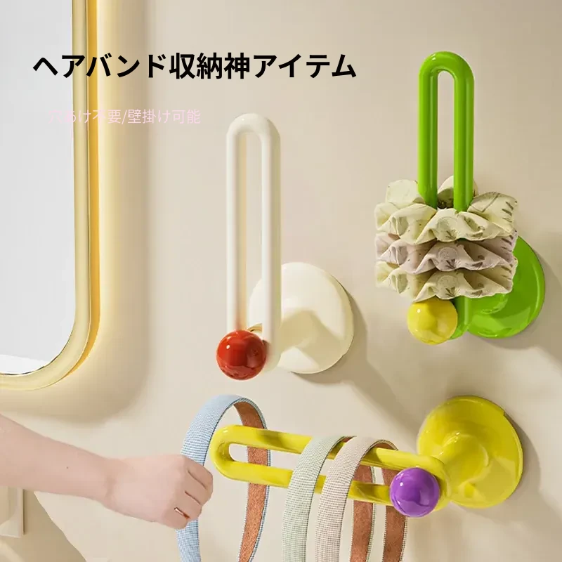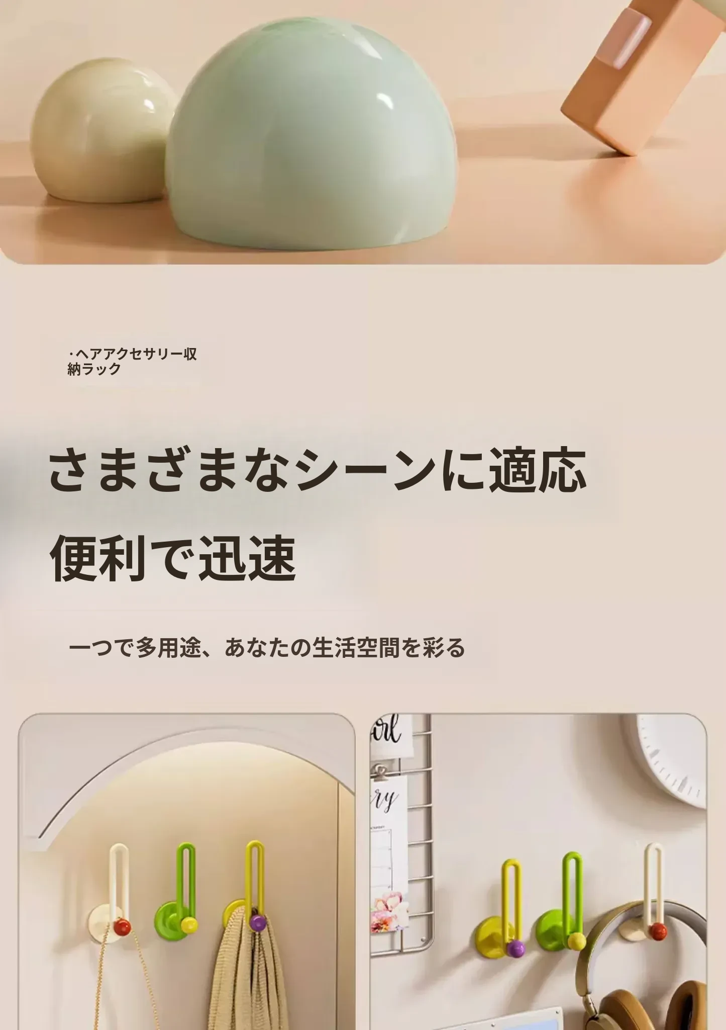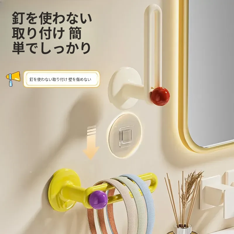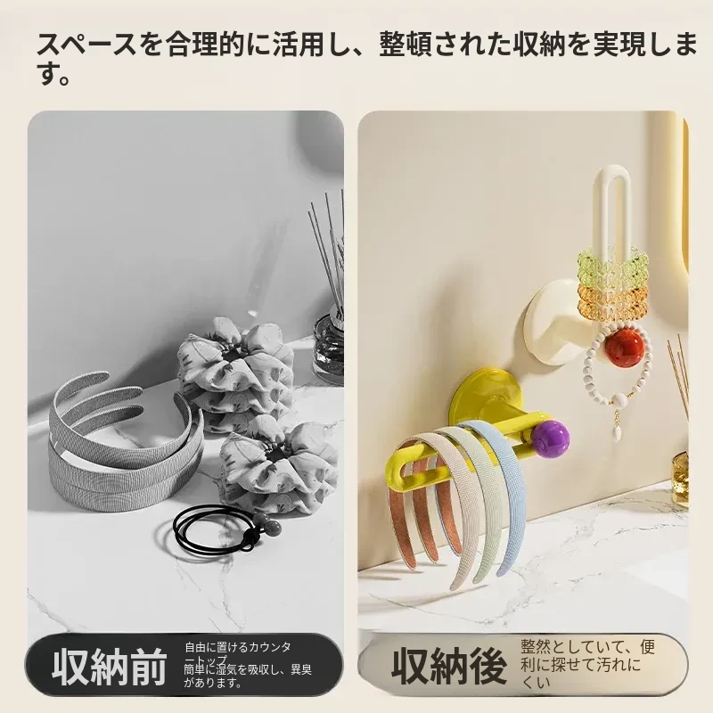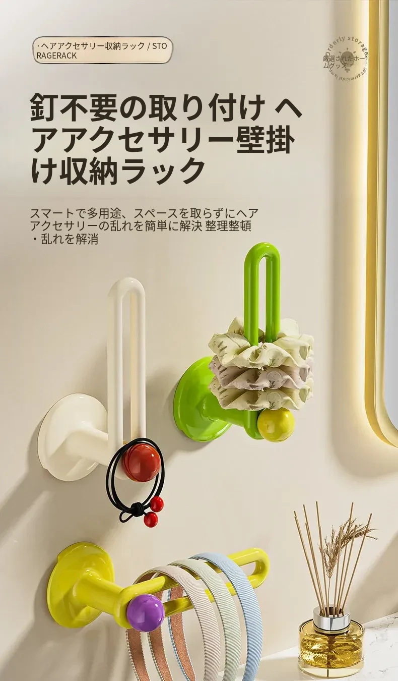 新型壁掛けヘアアクセサリー収納ラック - ヘアゴムやヘアバンドをスッキリ整理!おしゃれで実用的なデザイン、トイレや洗面所に最適。髪飾りやクリップも一緒に収納できる便利なフック付き!