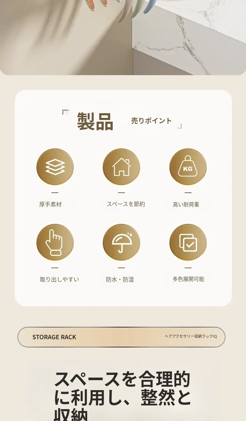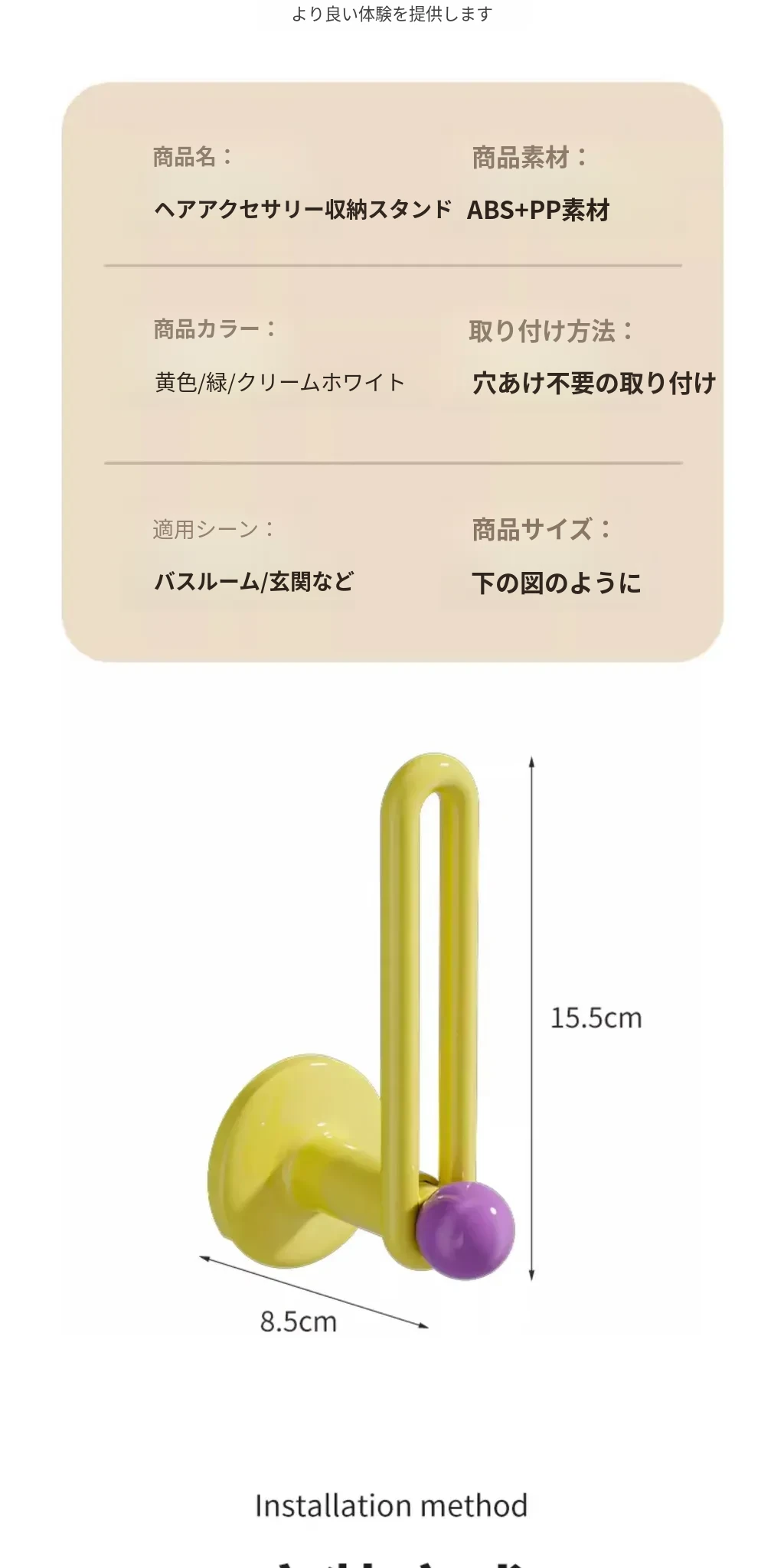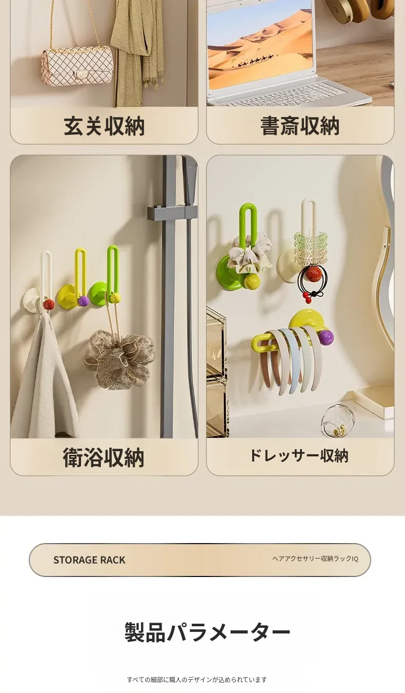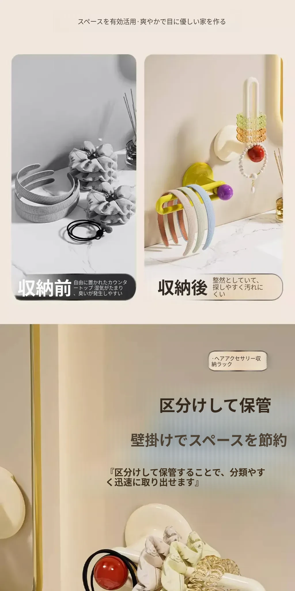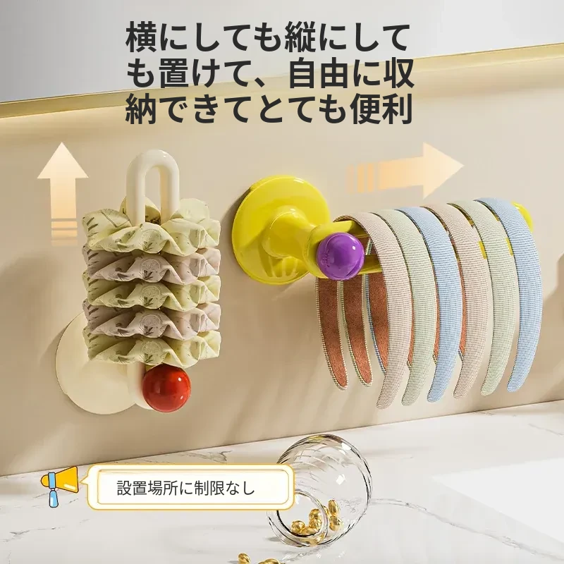 新型壁掛けヘアアクセサリー収納ラック - ヘアゴムやヘアバンドをスッキリ整理!おしゃれで実用的なデザイン、トイレや洗面所に最適。髪飾りやクリップも一緒に収納できる便利なフック付き!