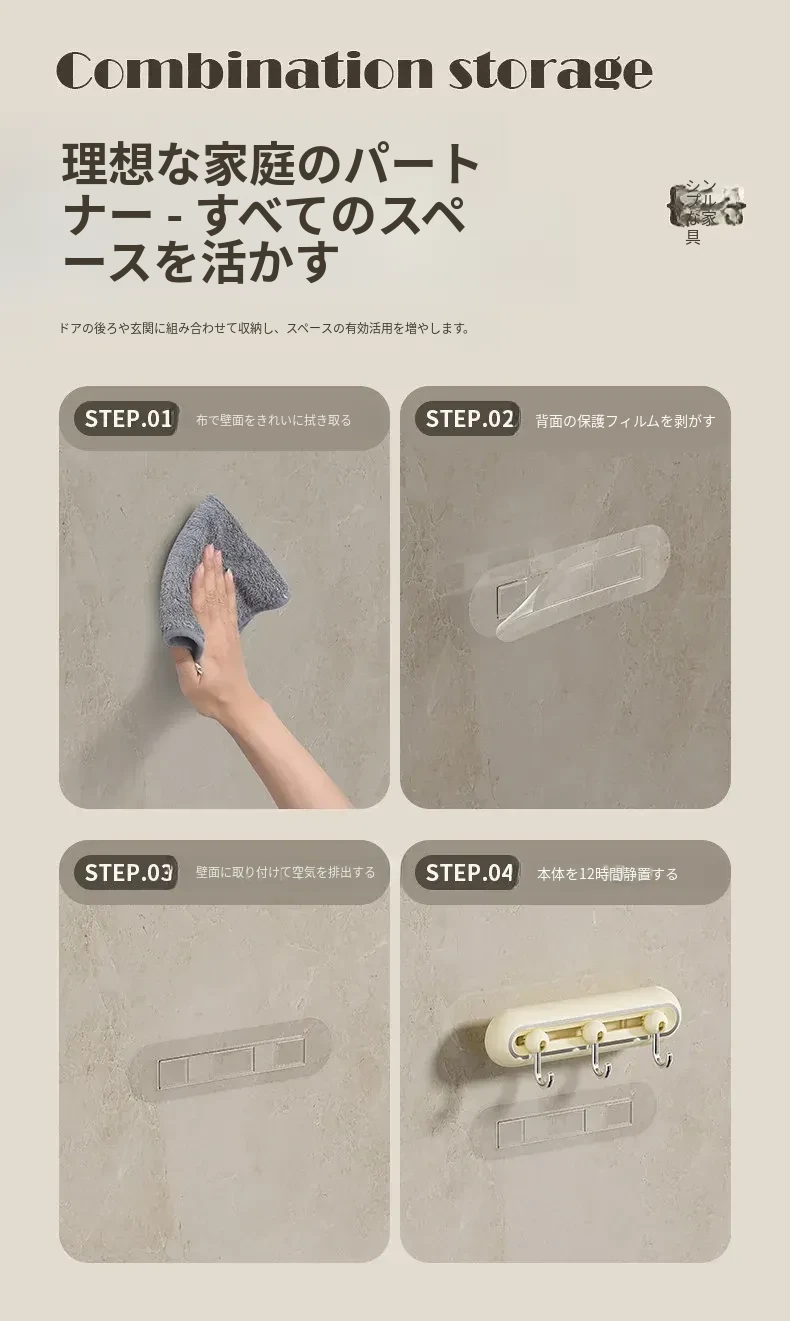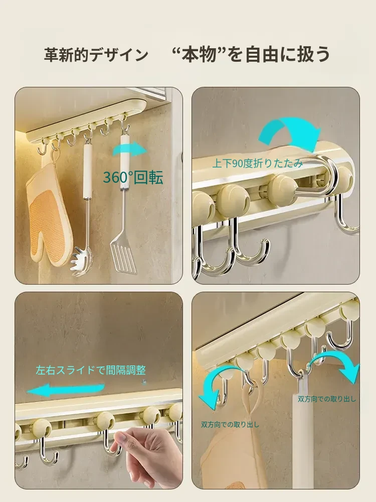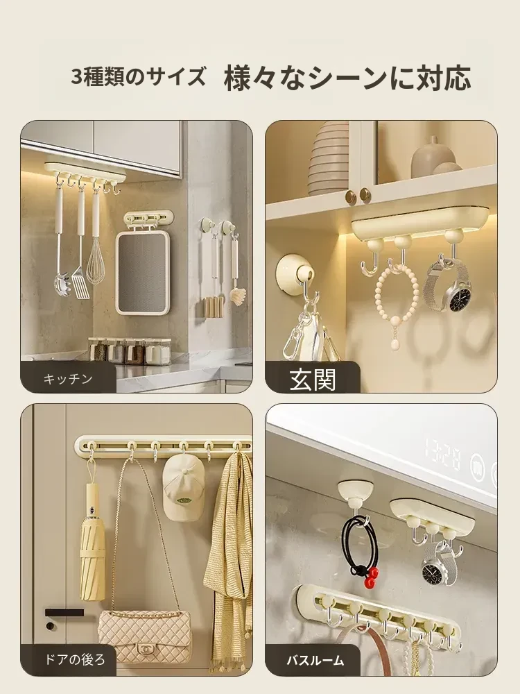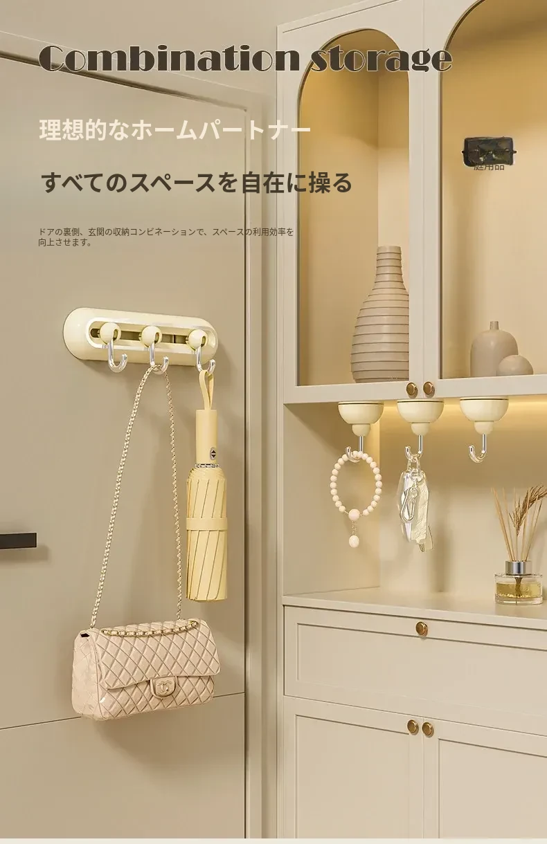壁掛けフック!玄関にぴったりの穴あけ不要なキー&帽子収納の神アイテム。無痕で取り付け簡単、360度回転するスライドレールで便利さ倍増!おしゃれな暮らしを実現しましょう!