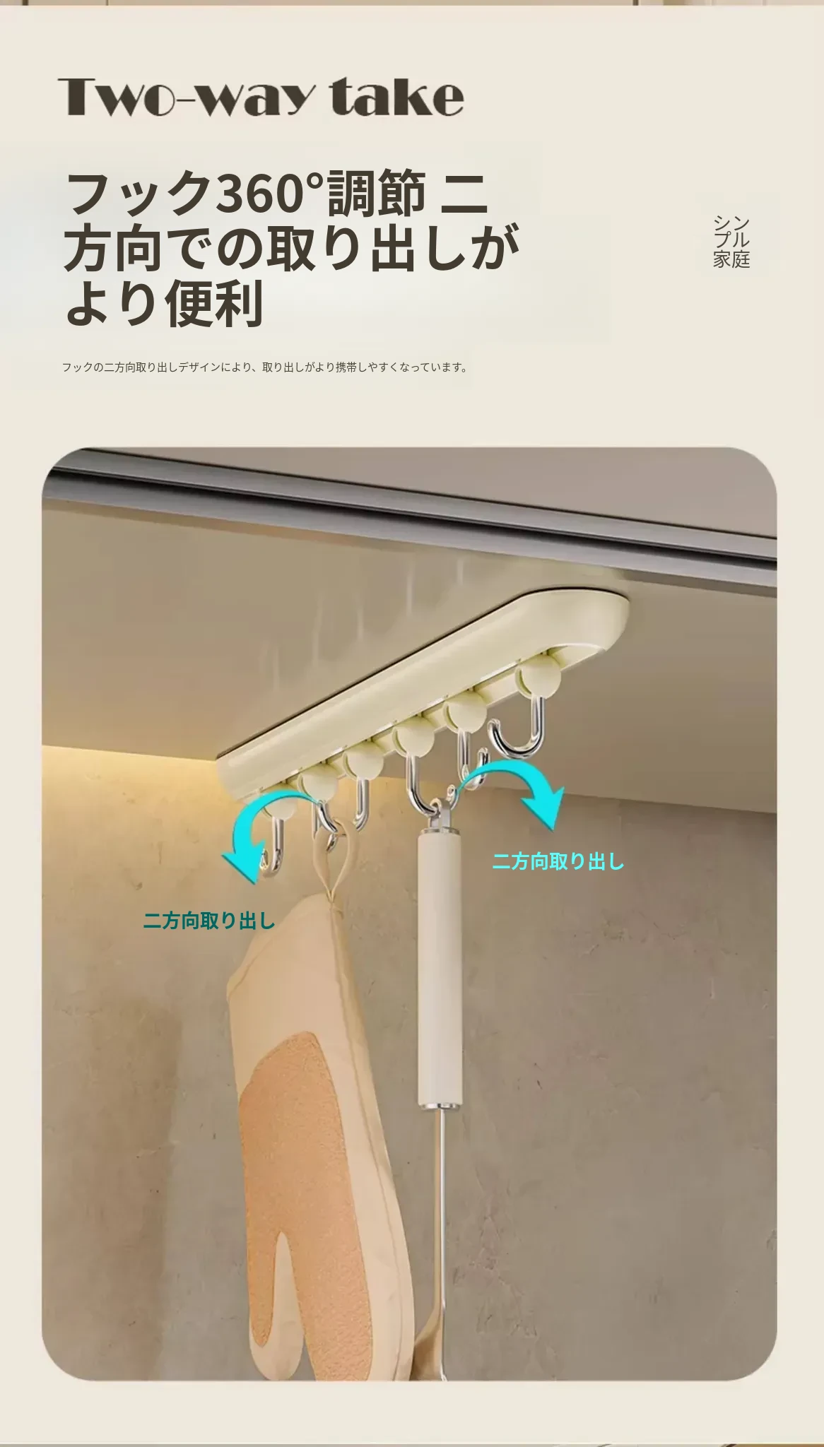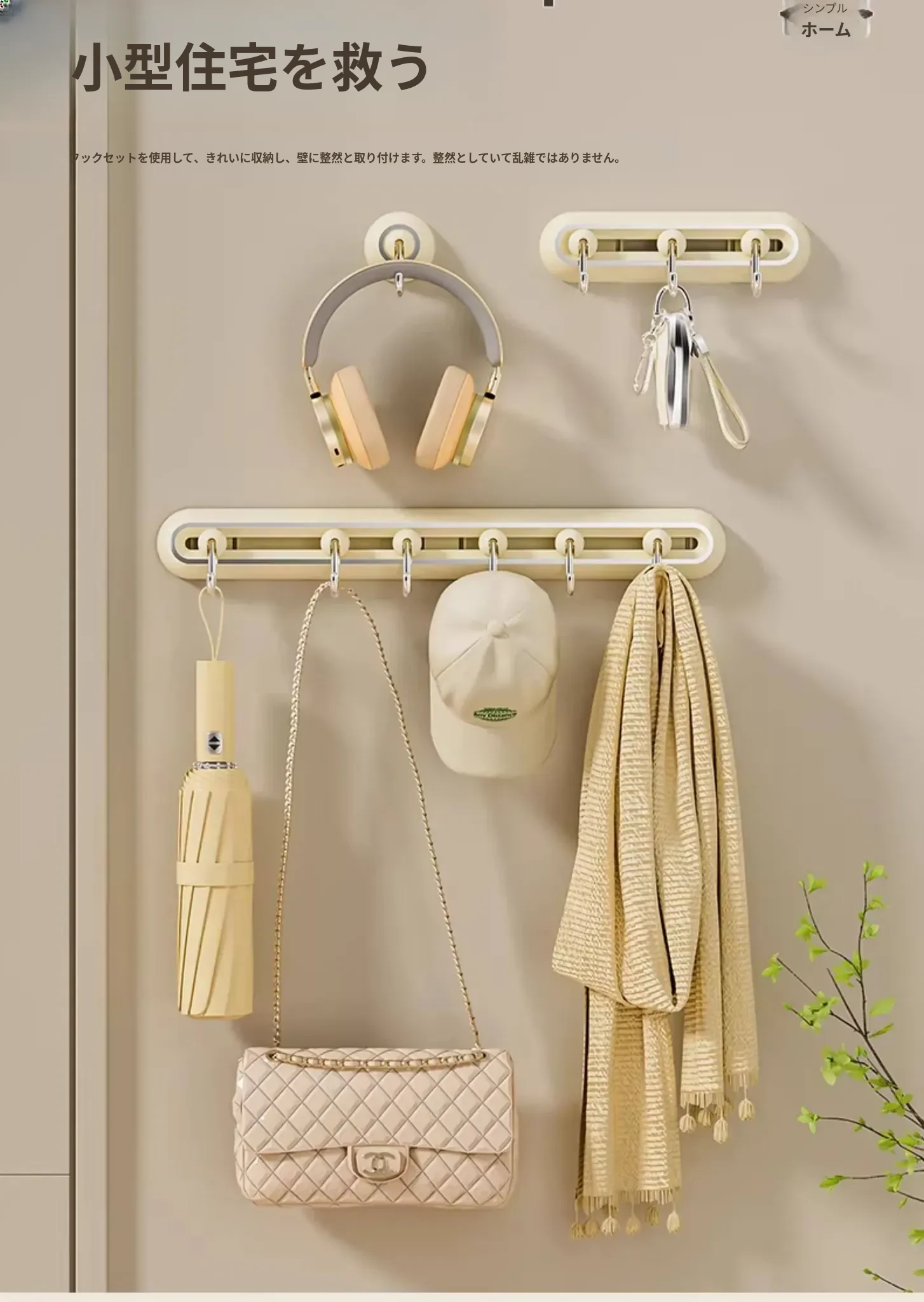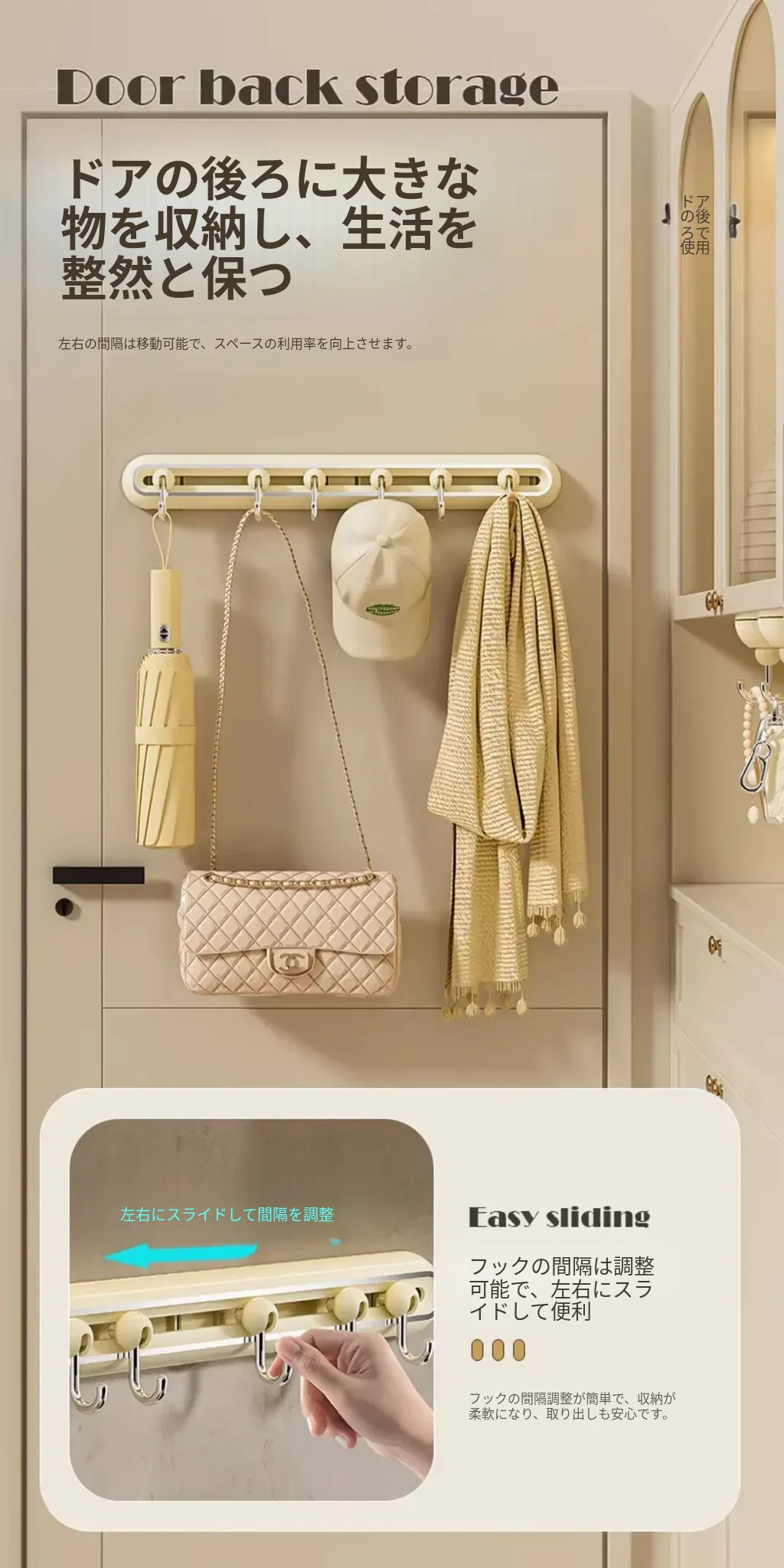 壁掛けフック!玄関にぴったりの穴あけ不要なキー&帽子収納の神アイテム。無痕で取り付け簡単、360度回転するスライドレールで便利さ倍増!おしゃれな暮らしを実現しましょう!