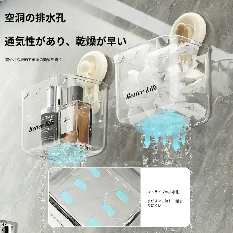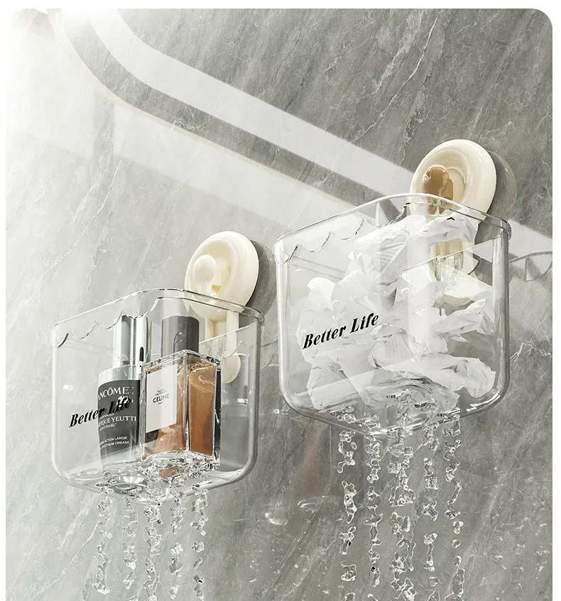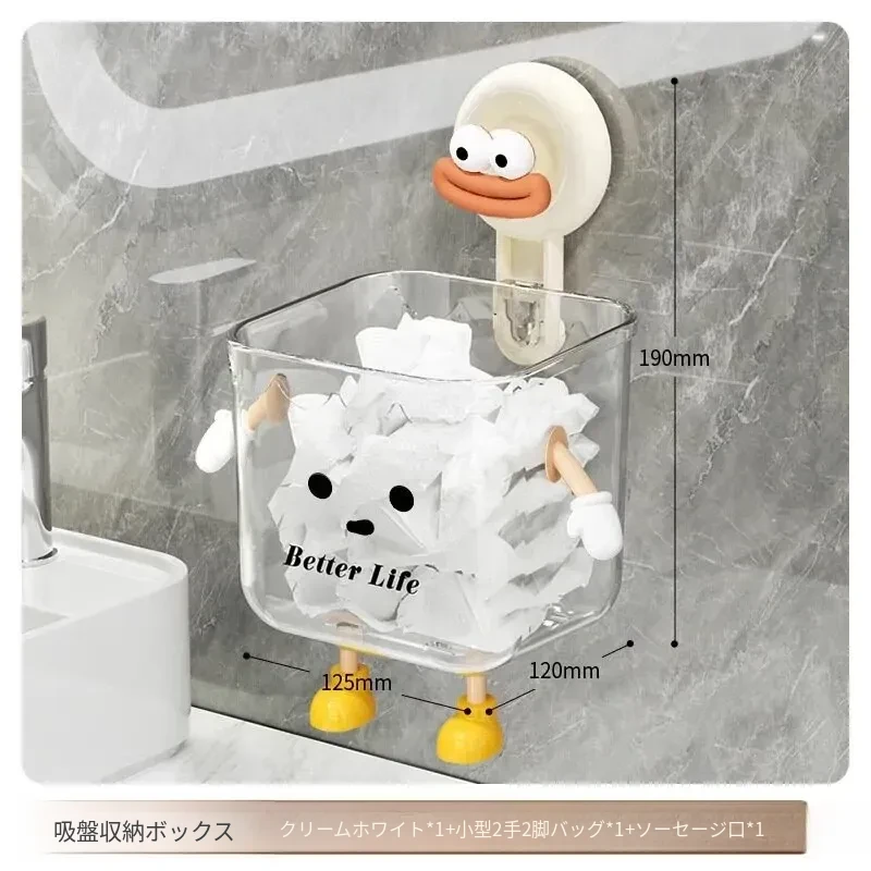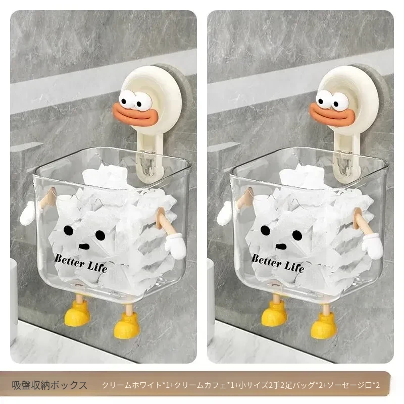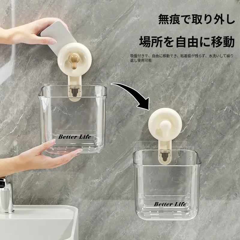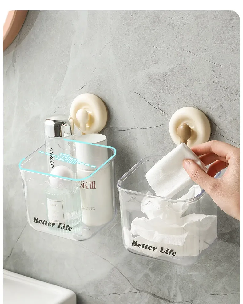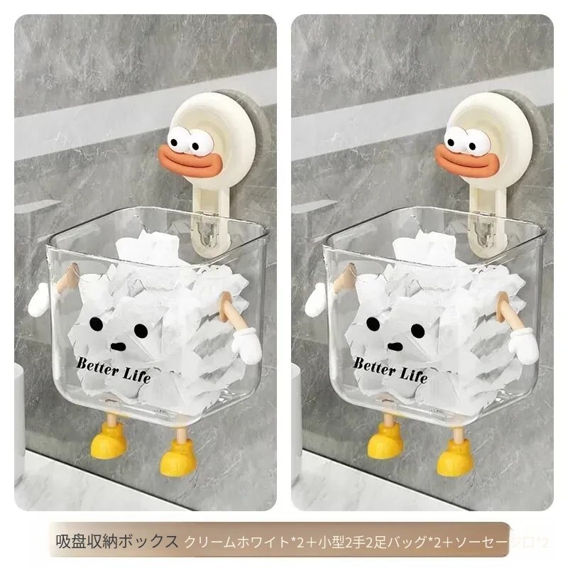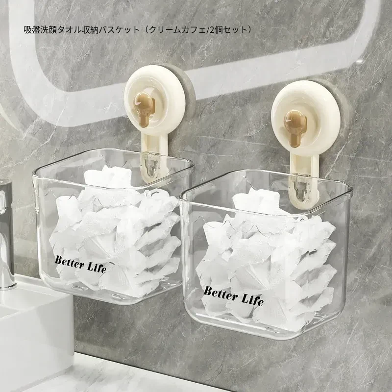 吸盤式廃棄物回収用洗顔タオル収納ボックス - 壁掛けトイレ/洗面台/バスルーム用、便利で衛生的なタオルラック!おしゃれなデザインで空間を有効活用!