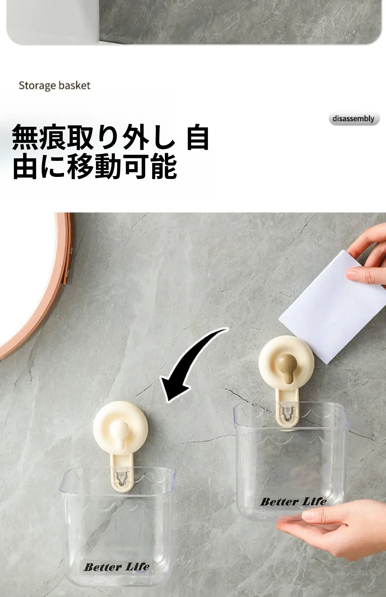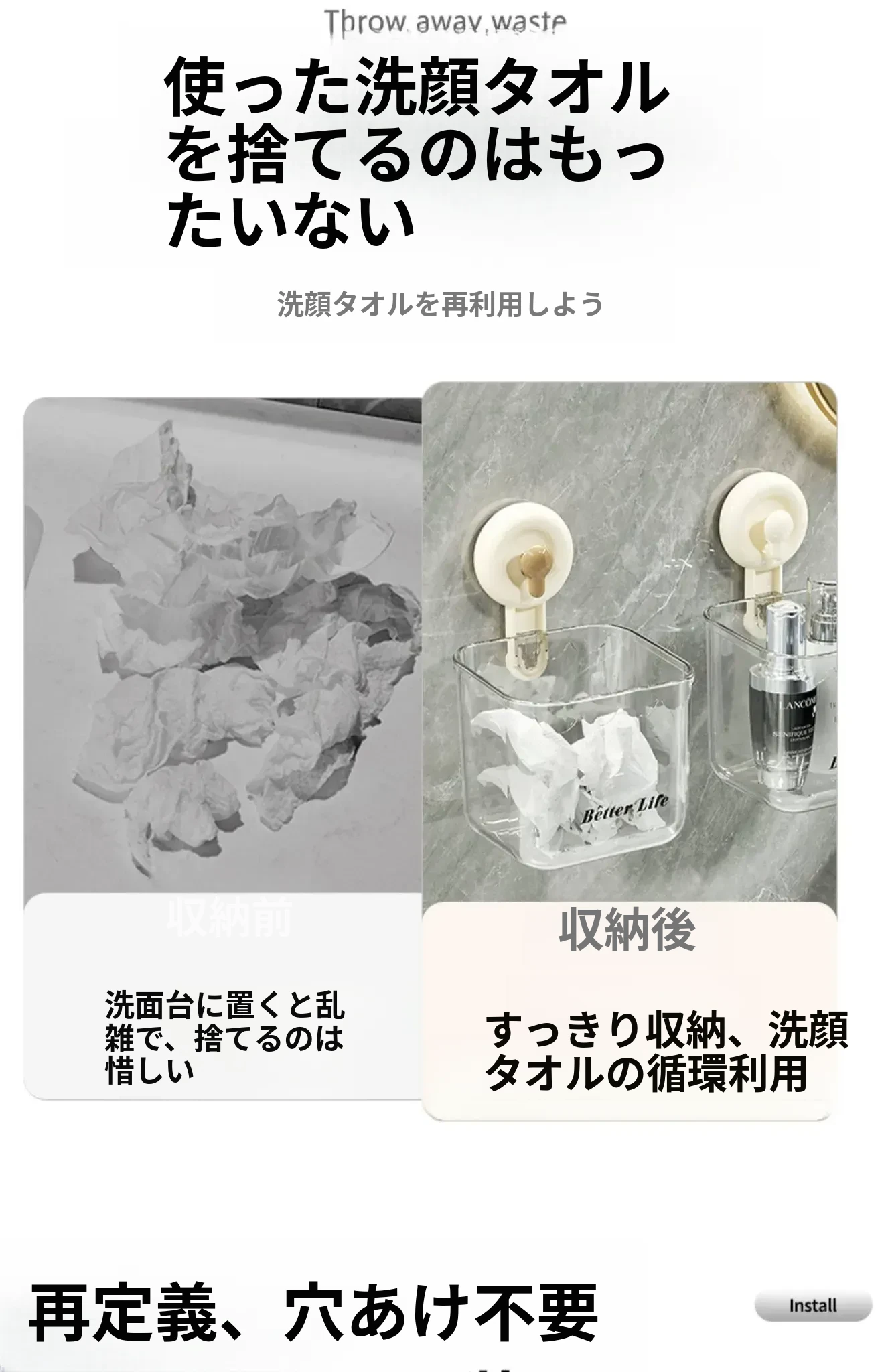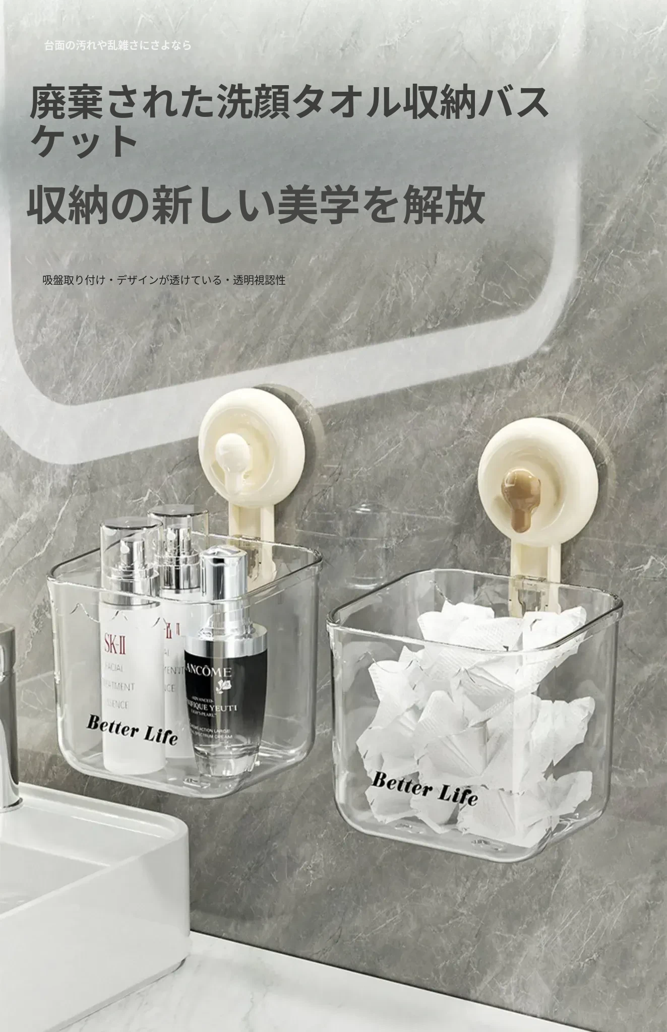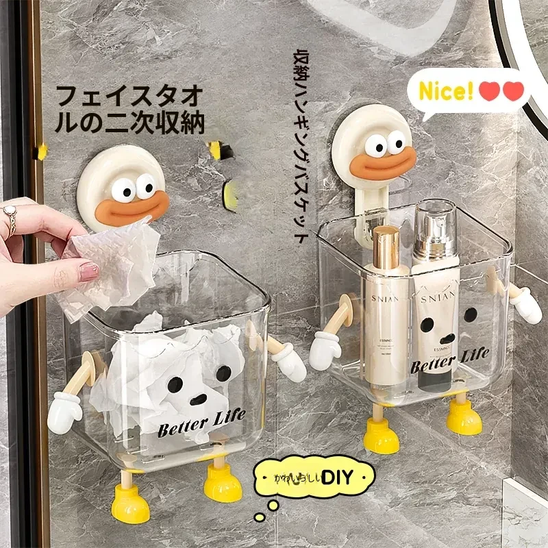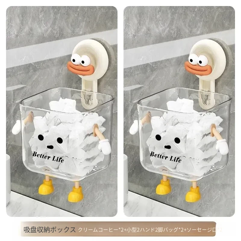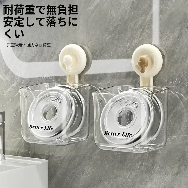 吸盤式廃棄物回収用洗顔タオル収納ボックス - 壁掛けトイレ/洗面台/バスルーム用、便利で衛生的なタオルラック!おしゃれなデザインで空間を有効活用!