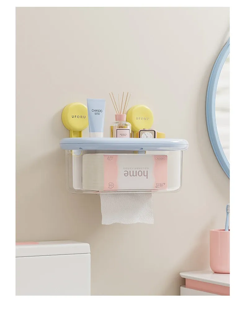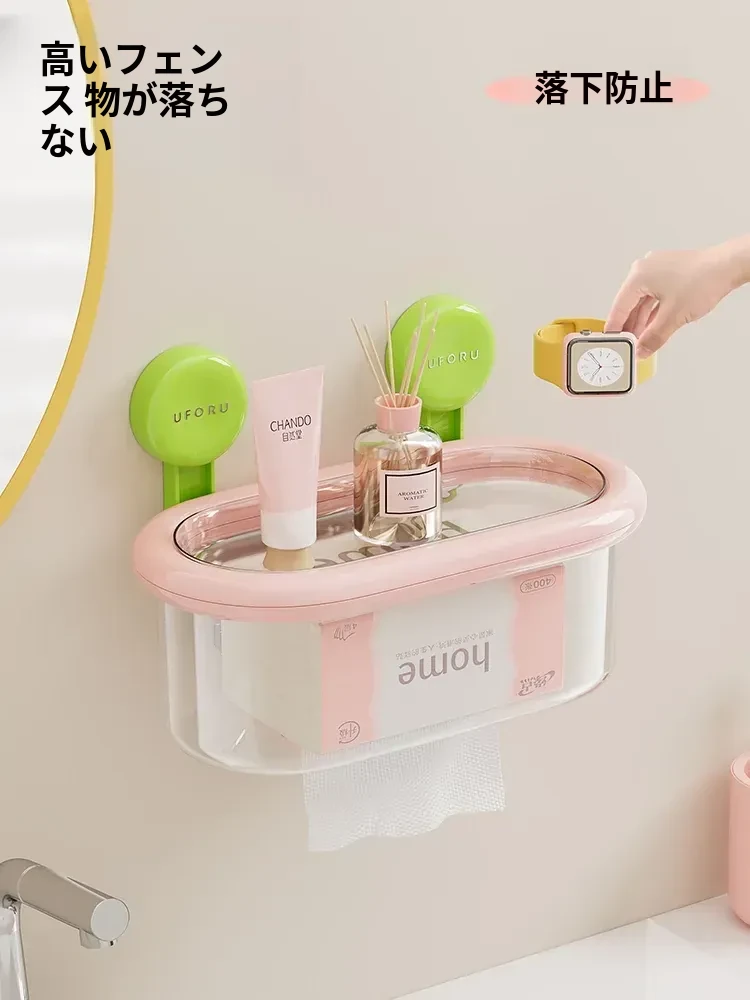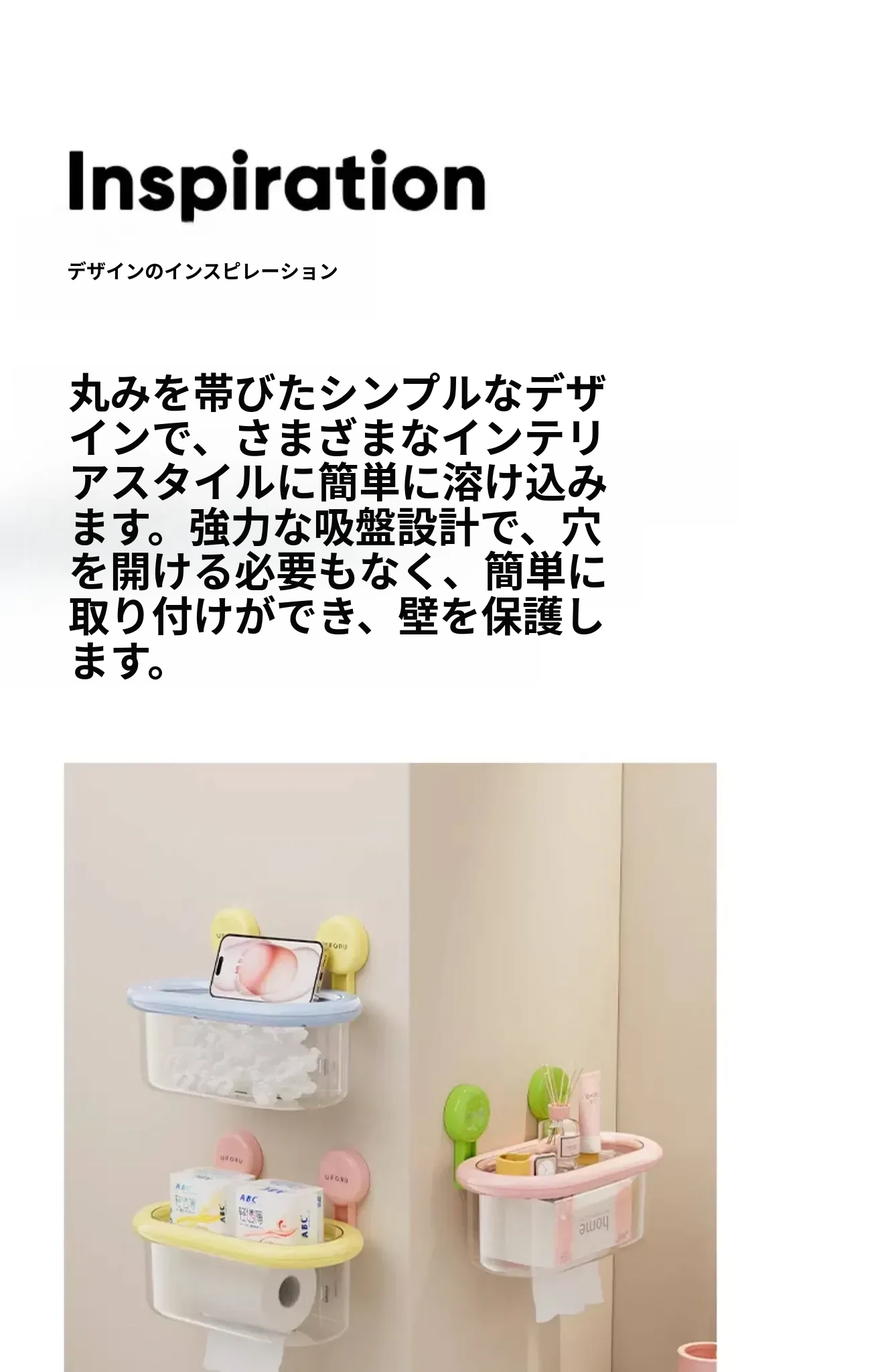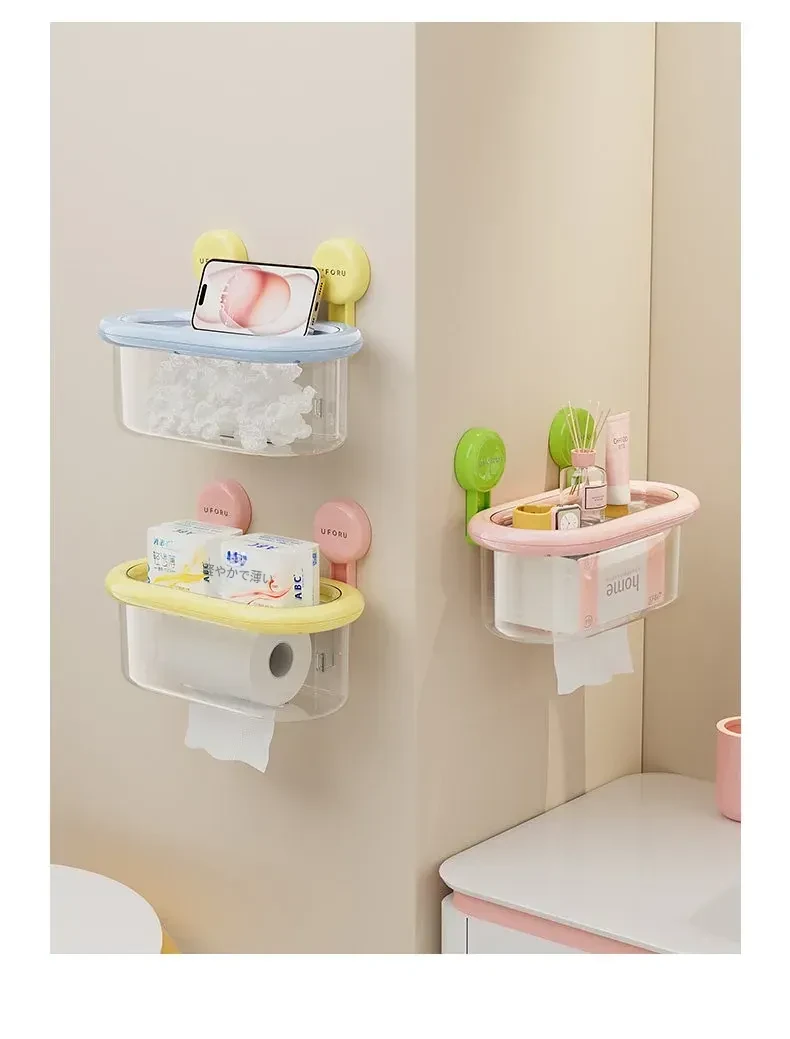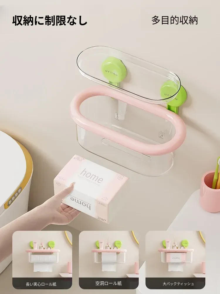 吸盤式トイレットペーパーケース - 壁掛けで防水、ノー穴開け!トイレをスタイリッシュに保つ多バインダーボックス、快適さと便利さを両立!