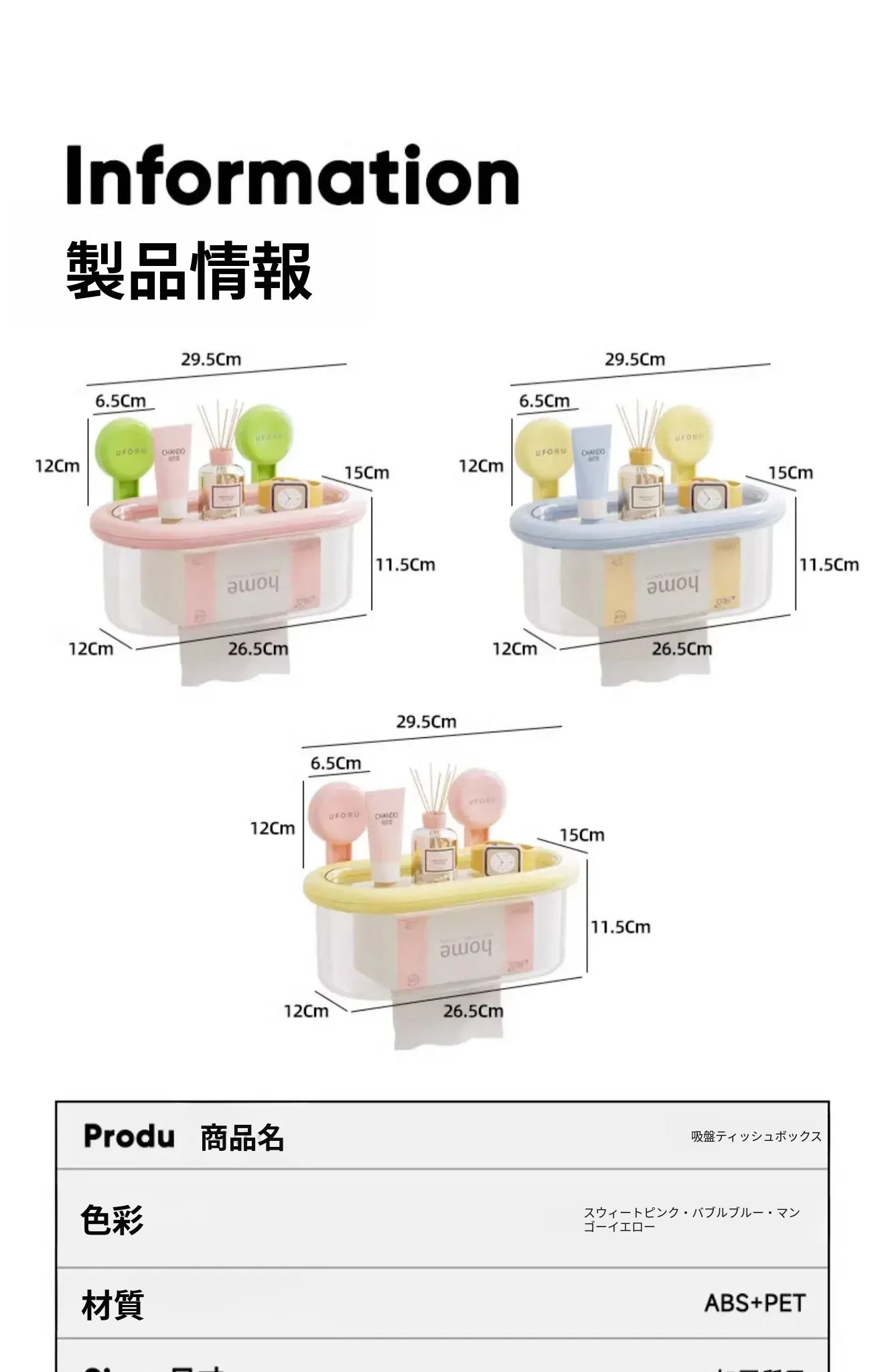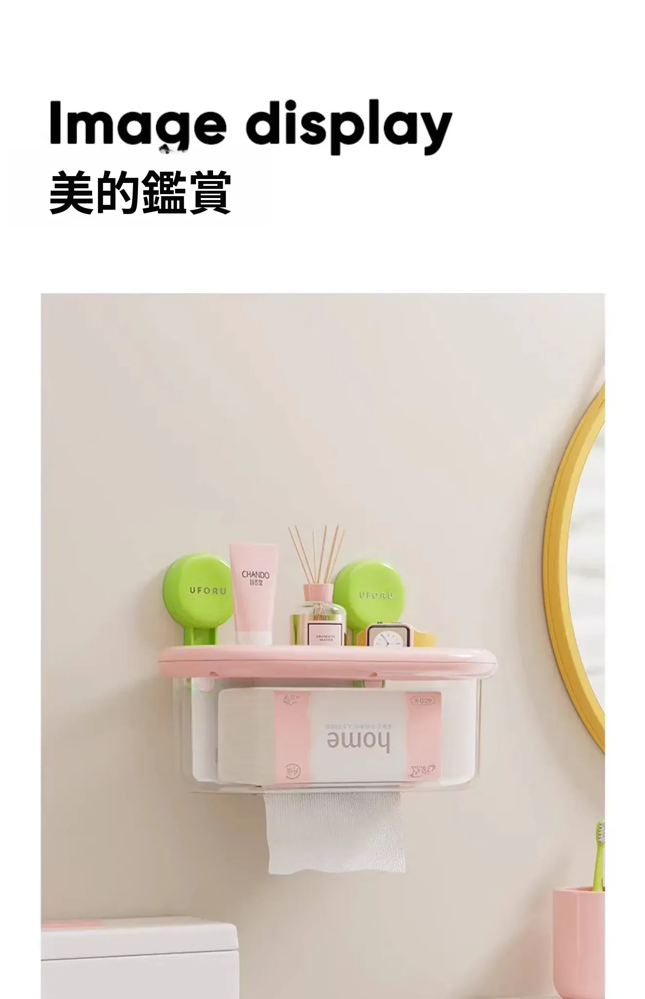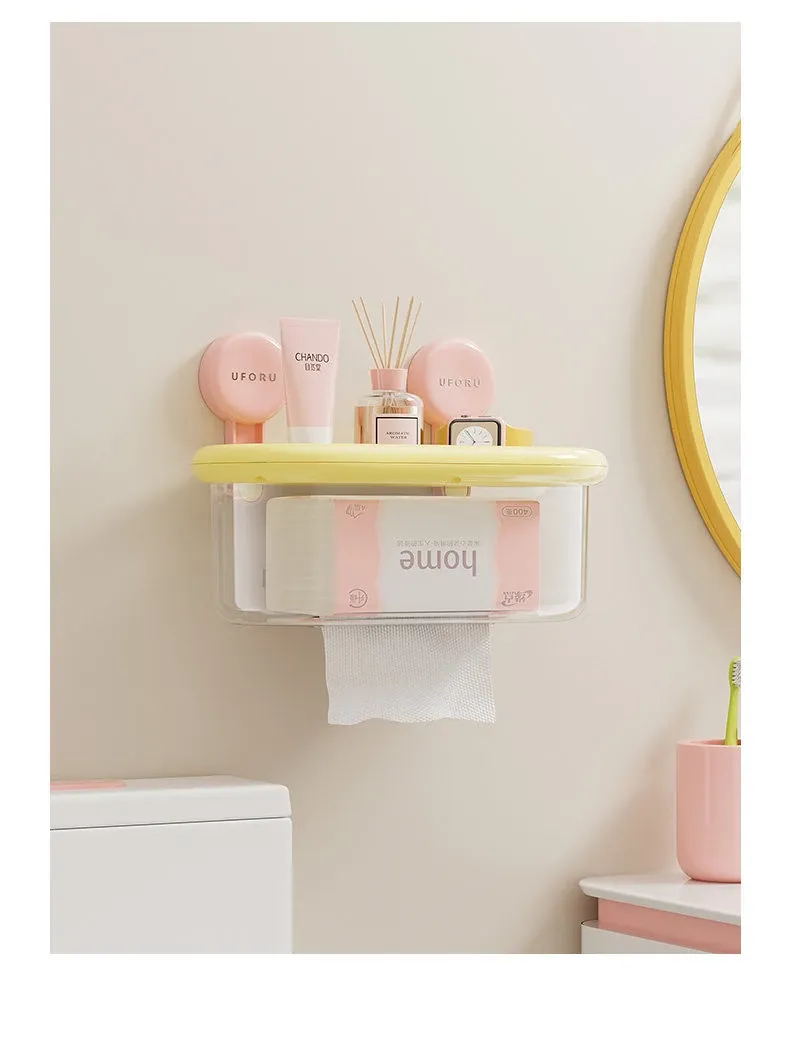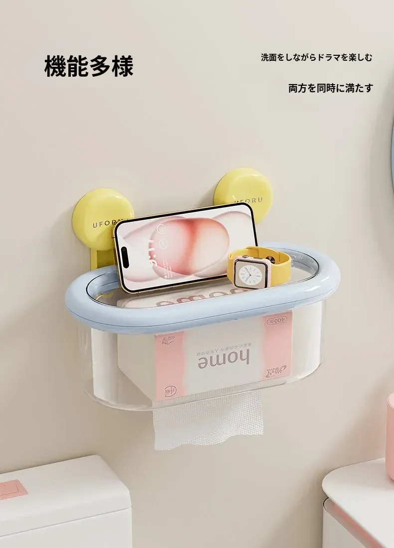 吸盤式トイレットペーパーケース - 壁掛けで防水、ノー穴開け!トイレをスタイリッシュに保つ多バインダーボックス、快適さと便利さを両立!