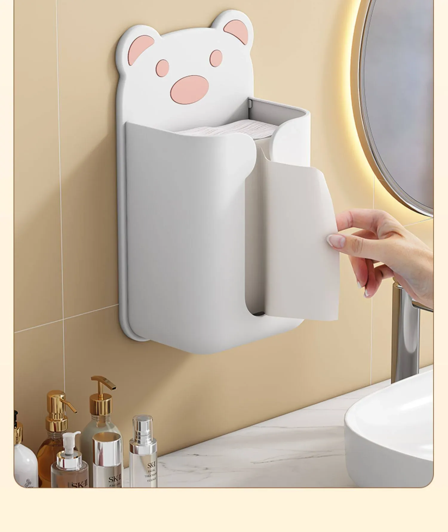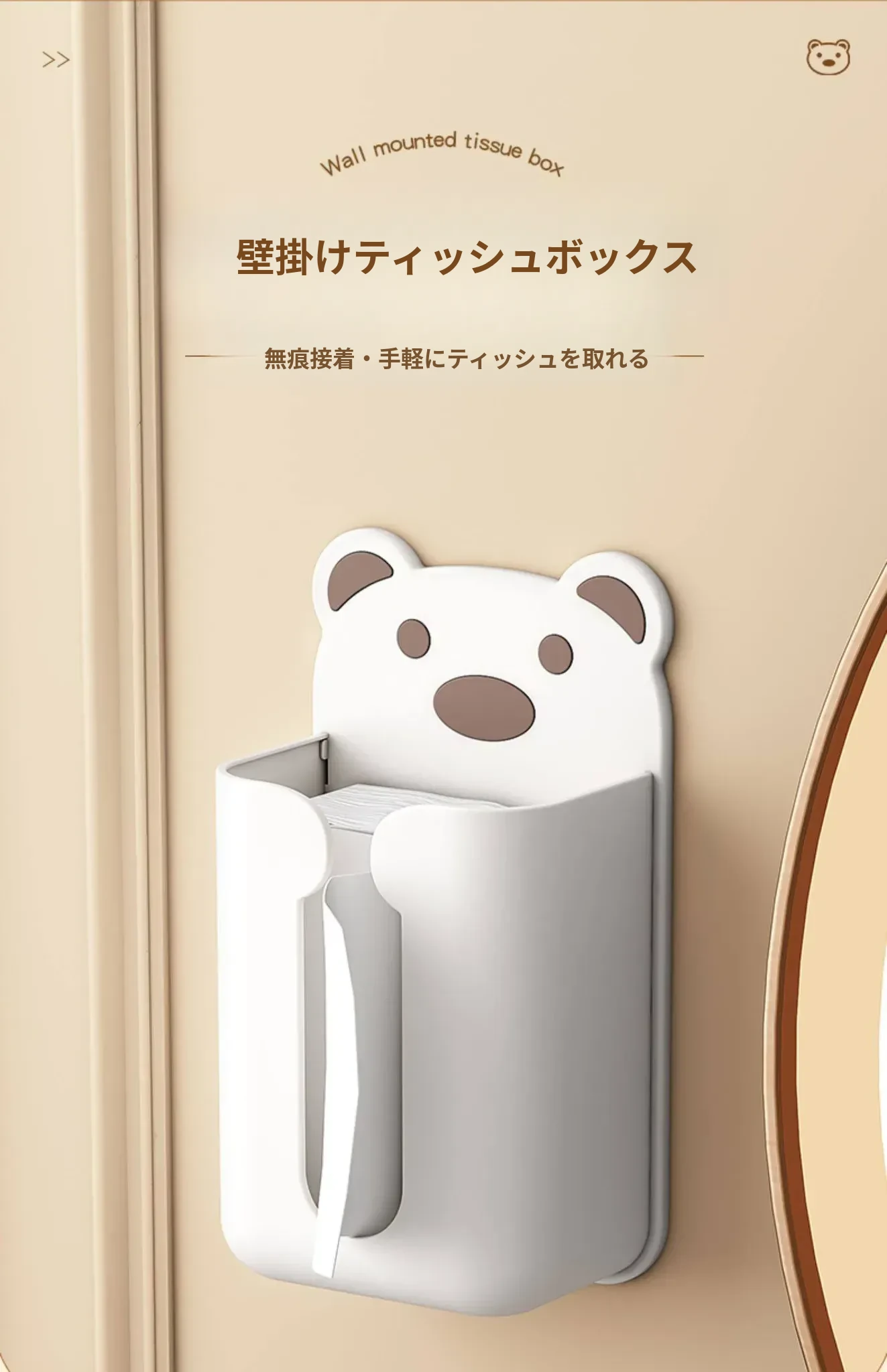 壁掛け式ティッシュボックス - キッチンや家庭に最適!トイレや洗面所でも使える便利な収納ボックス。穴あけ不要で簡単取り付け!スマートな収納でスッキリ整理整頓。
