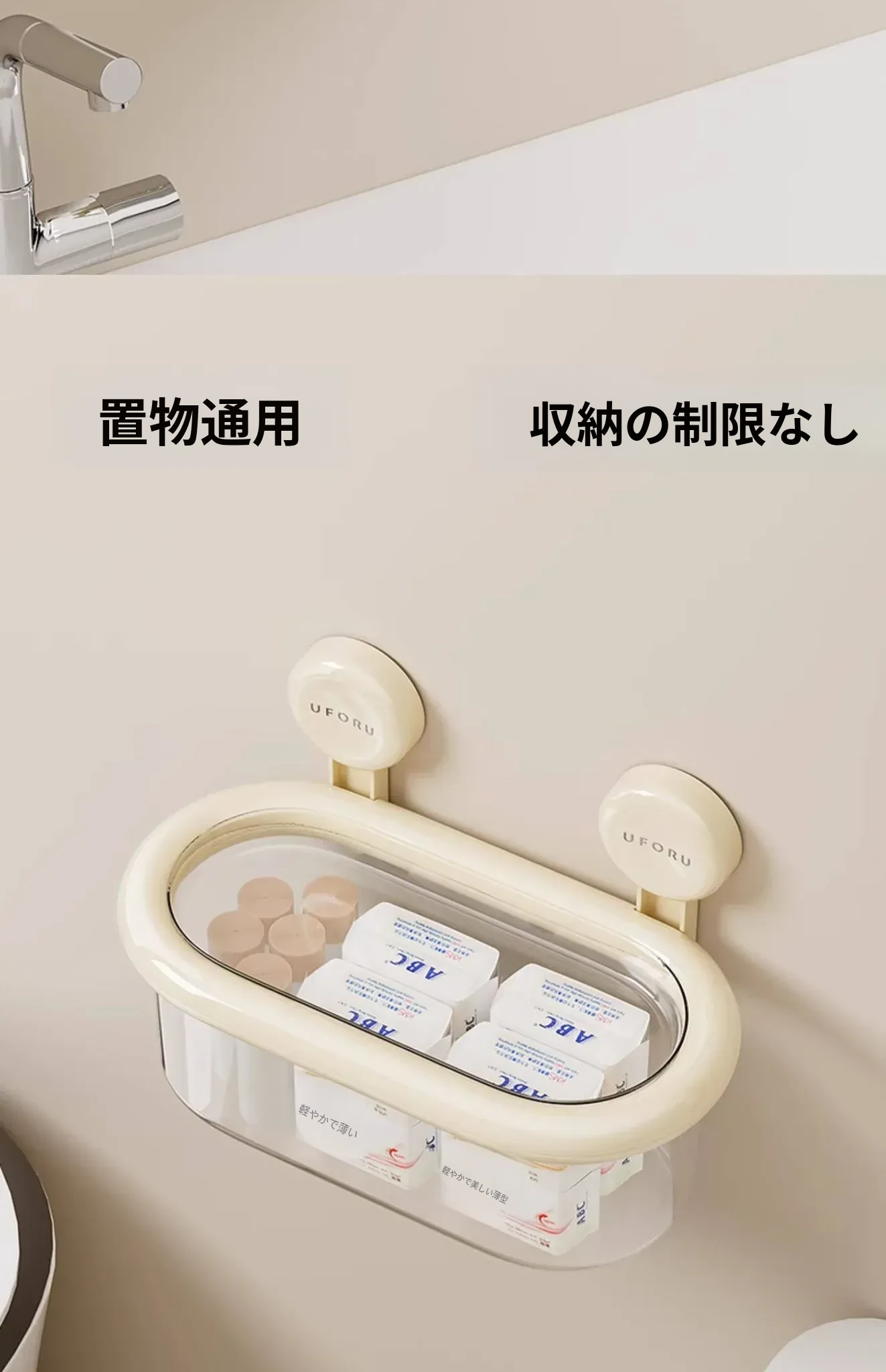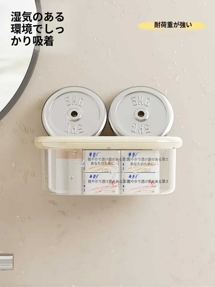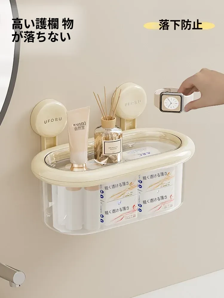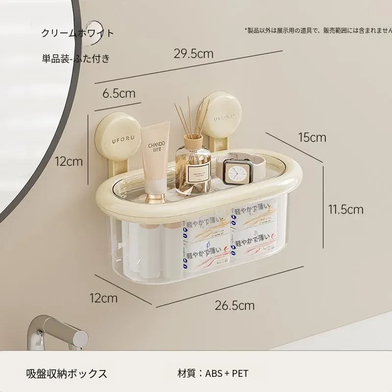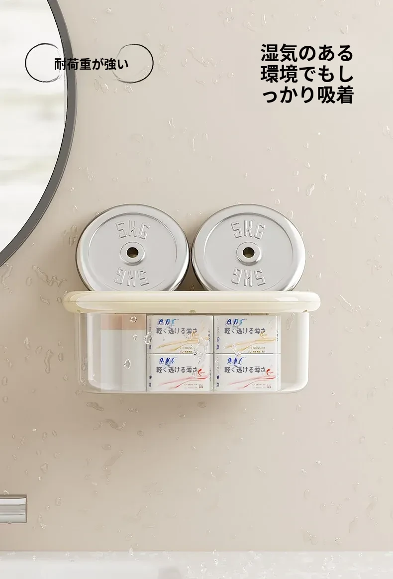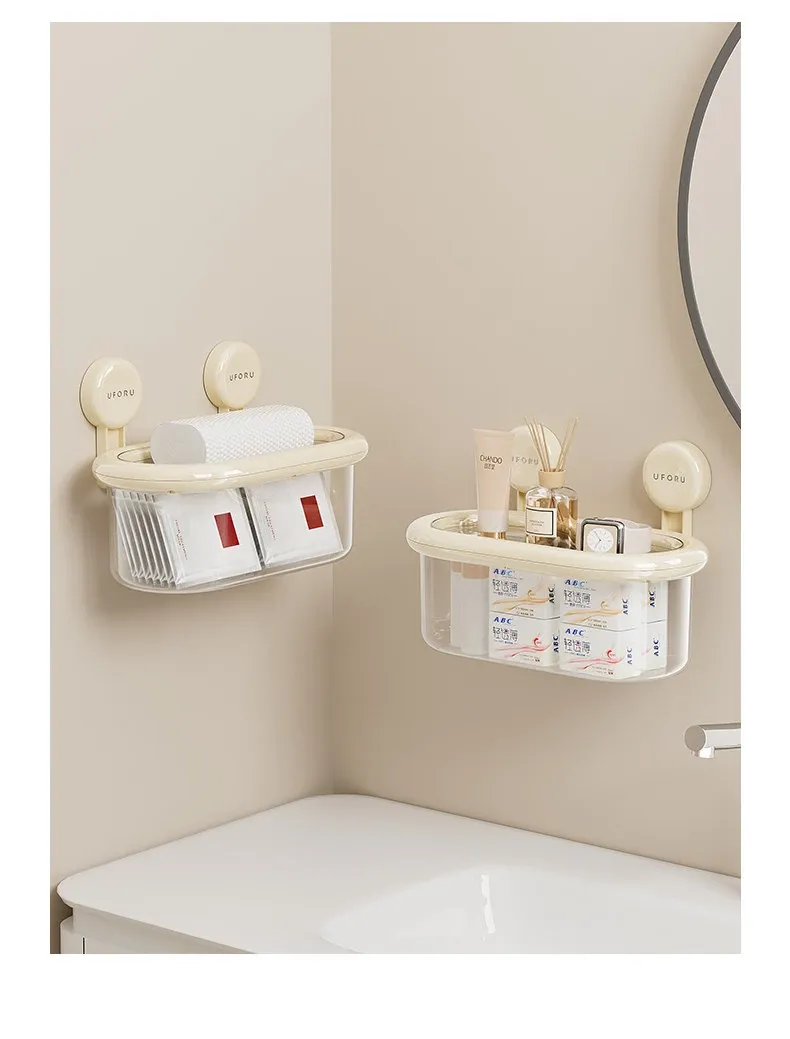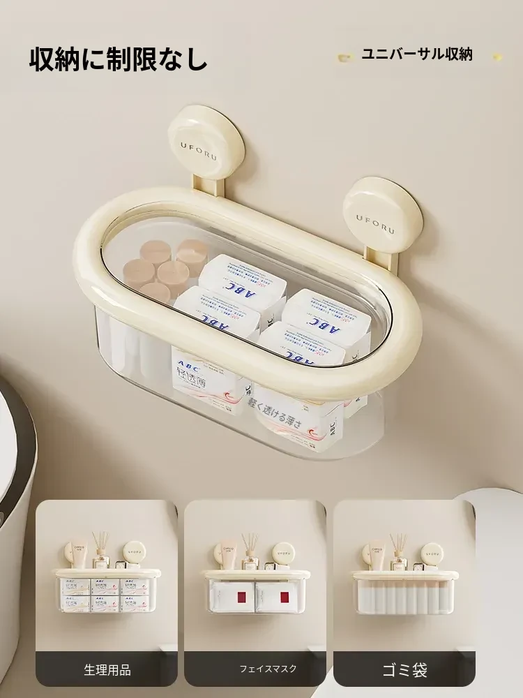 吸盤式収納ボックス - 壁掛け&卓上両用、穴あけ不要!防水カバー付きの大容量トイレ収納ラックで、すっきり整理整頓。おしゃれで便利なアイテムを手に入れて、毎日の生活をもっと快適に!