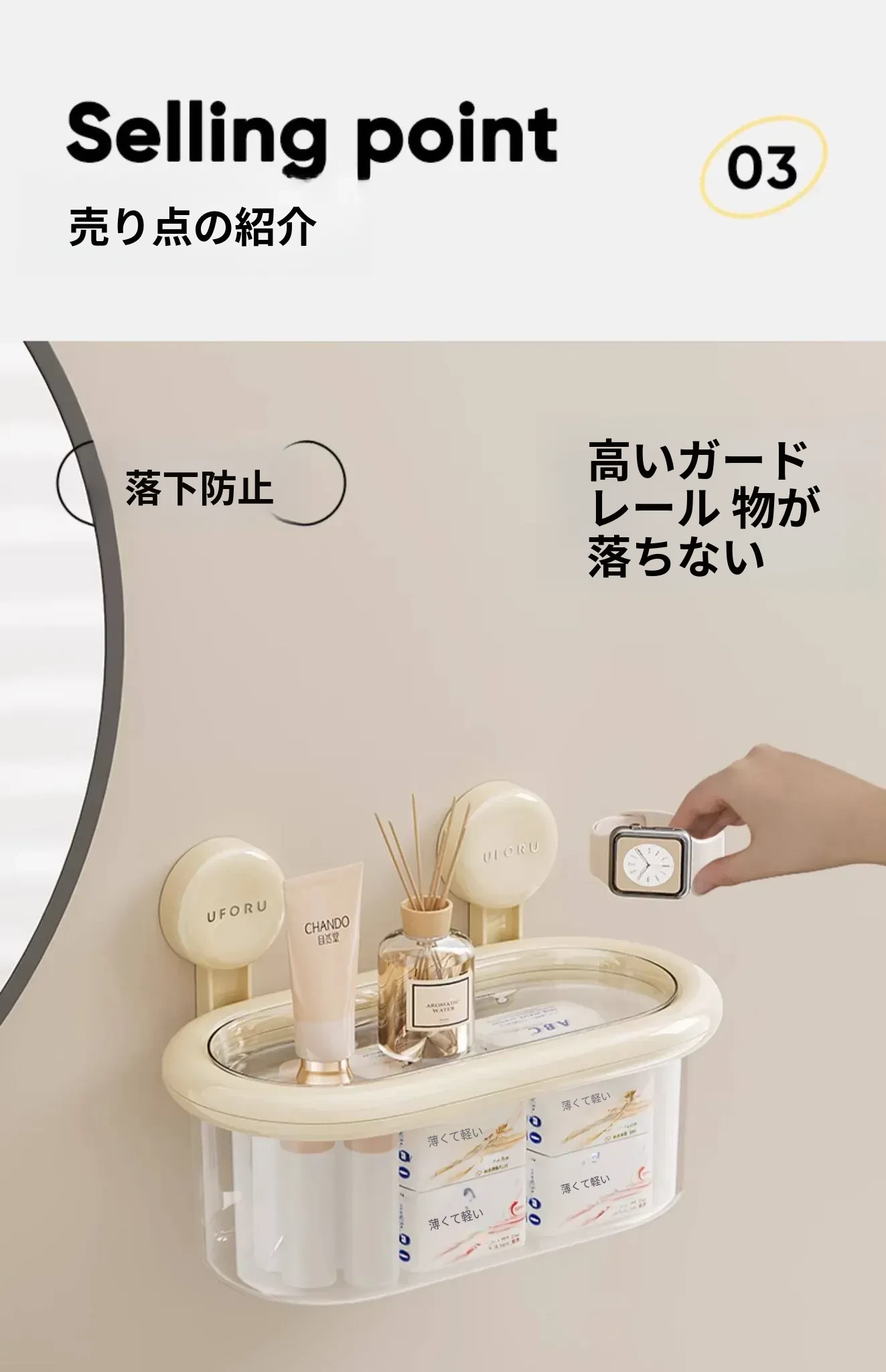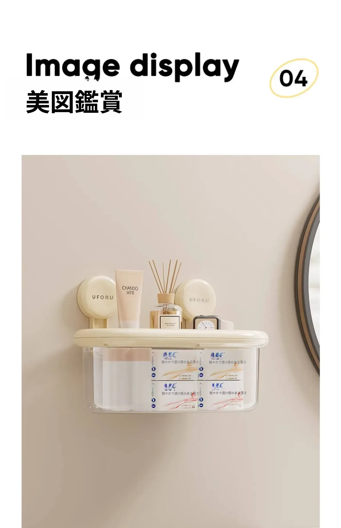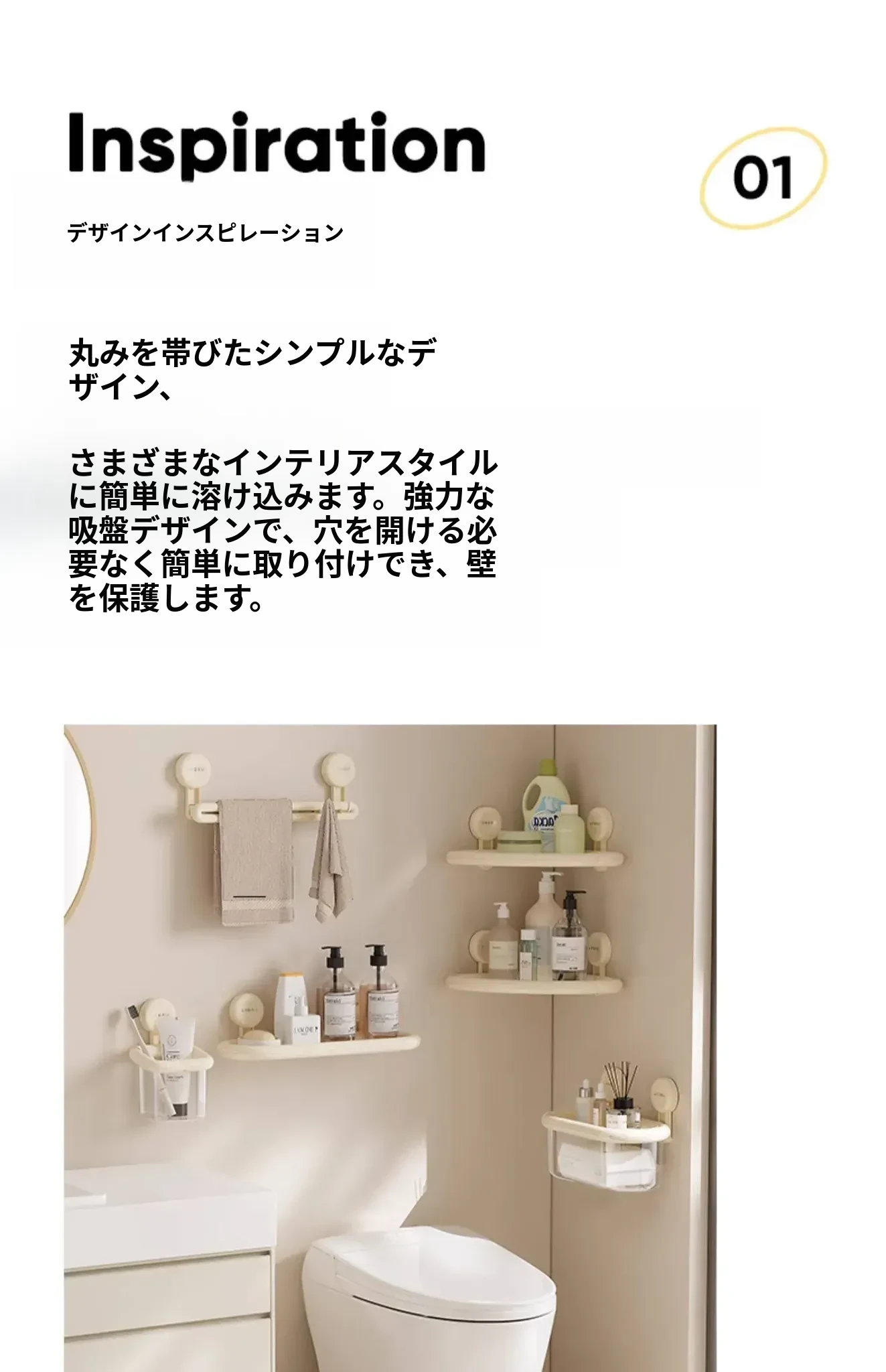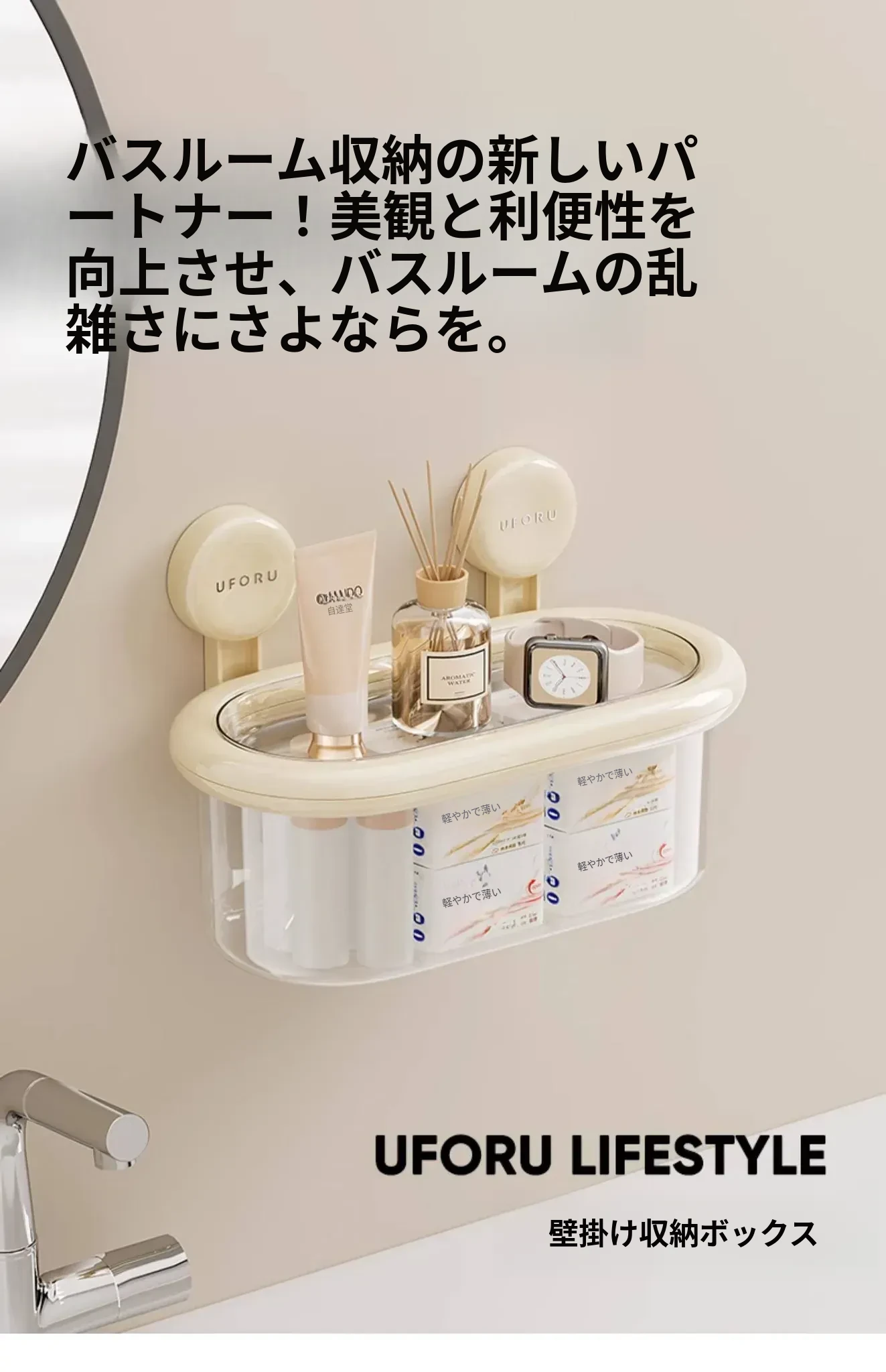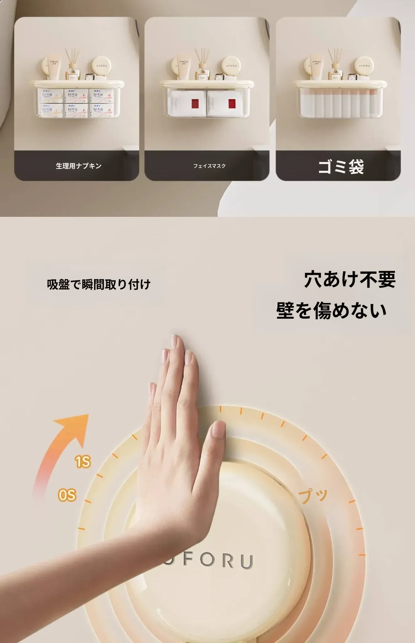 吸盤式収納ボックス - 壁掛け&卓上両用、穴あけ不要!防水カバー付きの大容量トイレ収納ラックで、すっきり整理整頓。おしゃれで便利なアイテムを手に入れて、毎日の生活をもっと快適に!